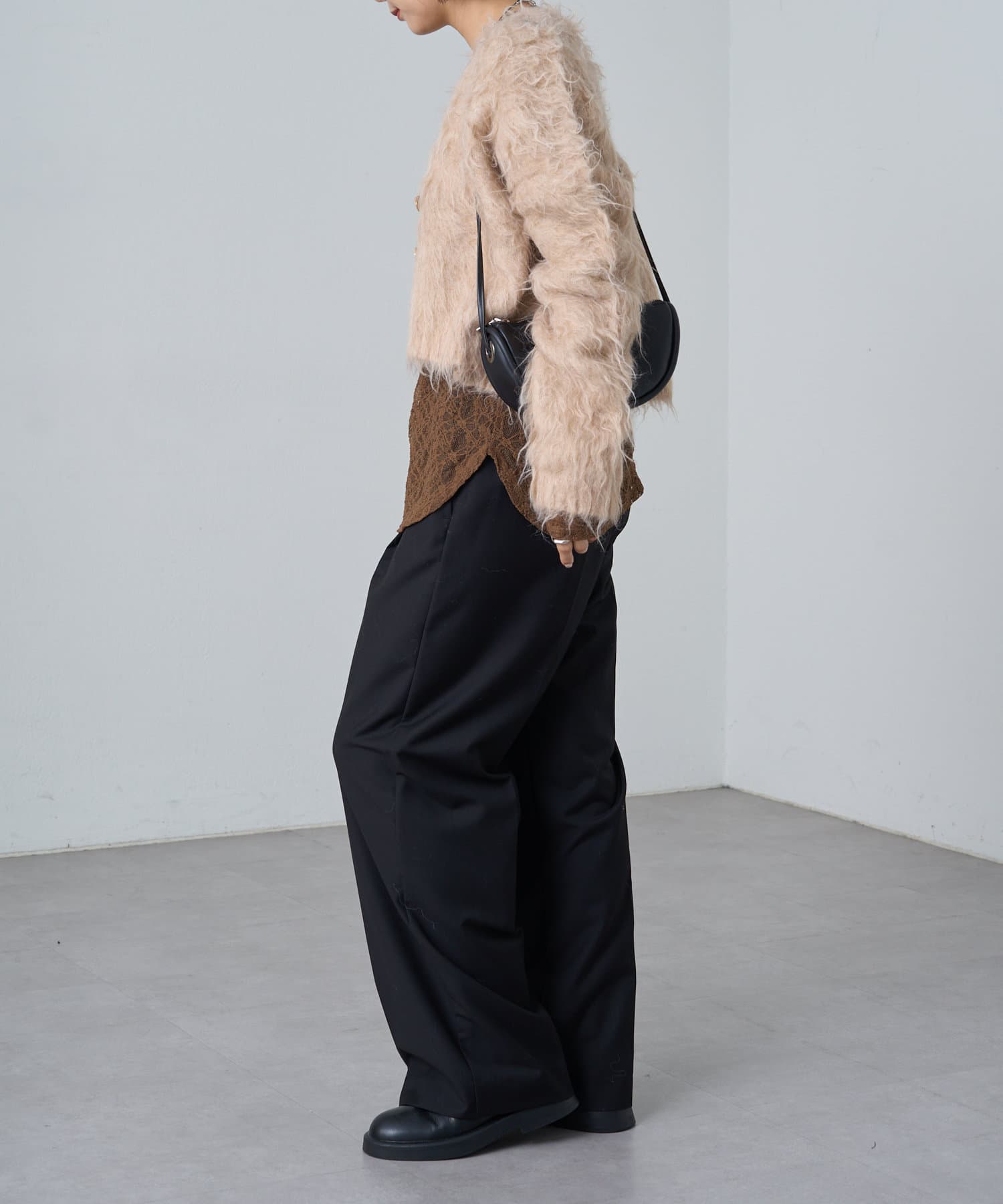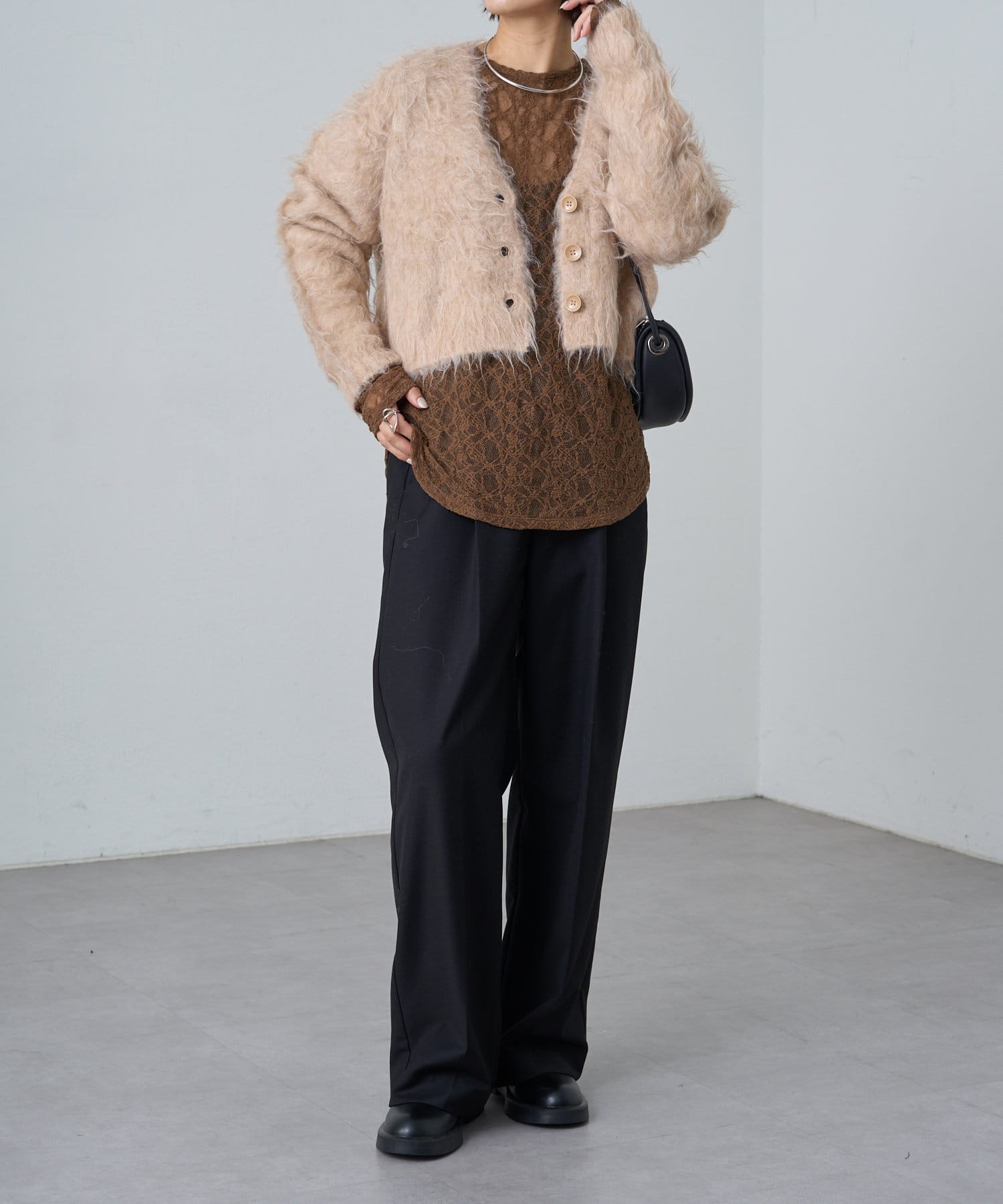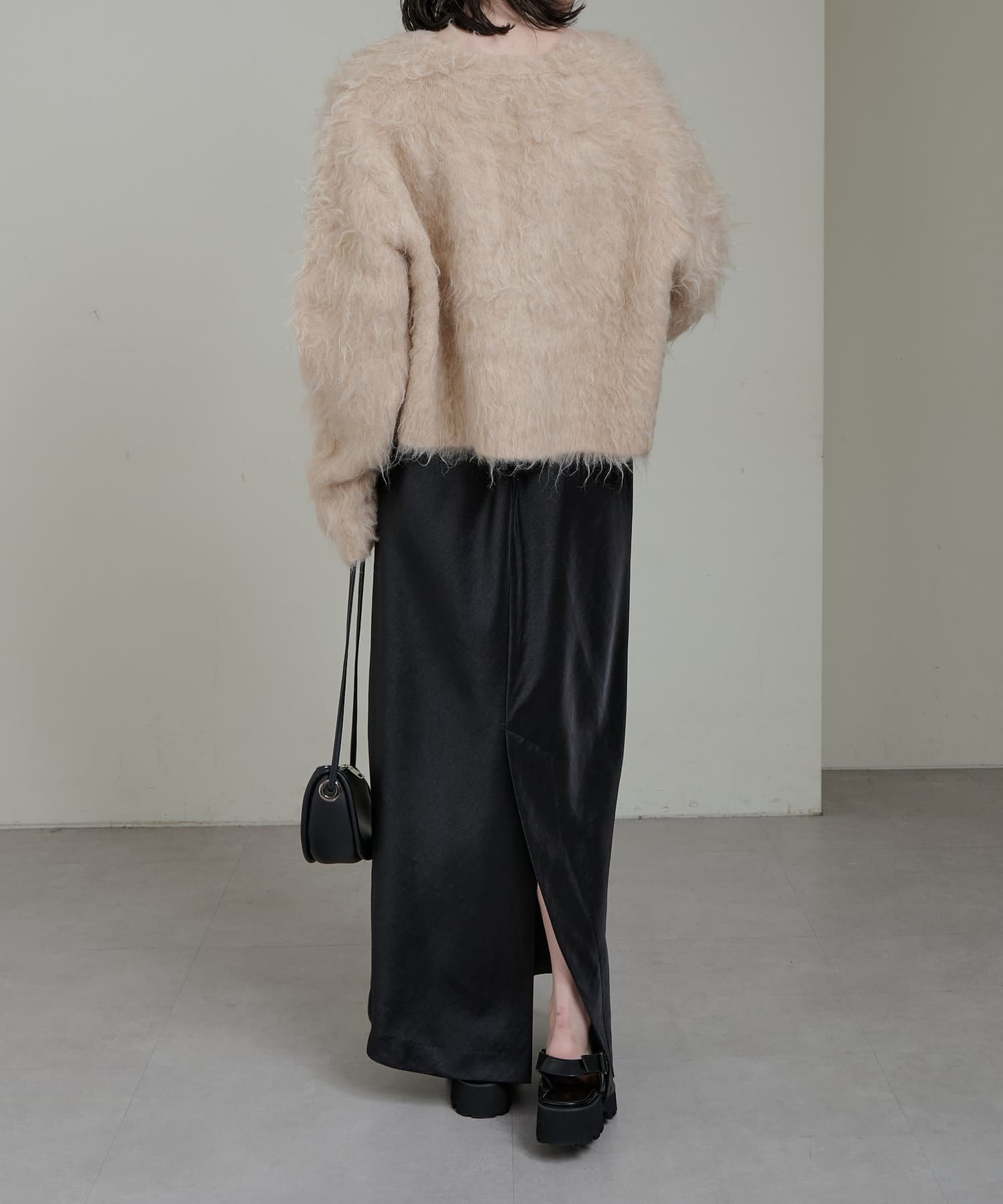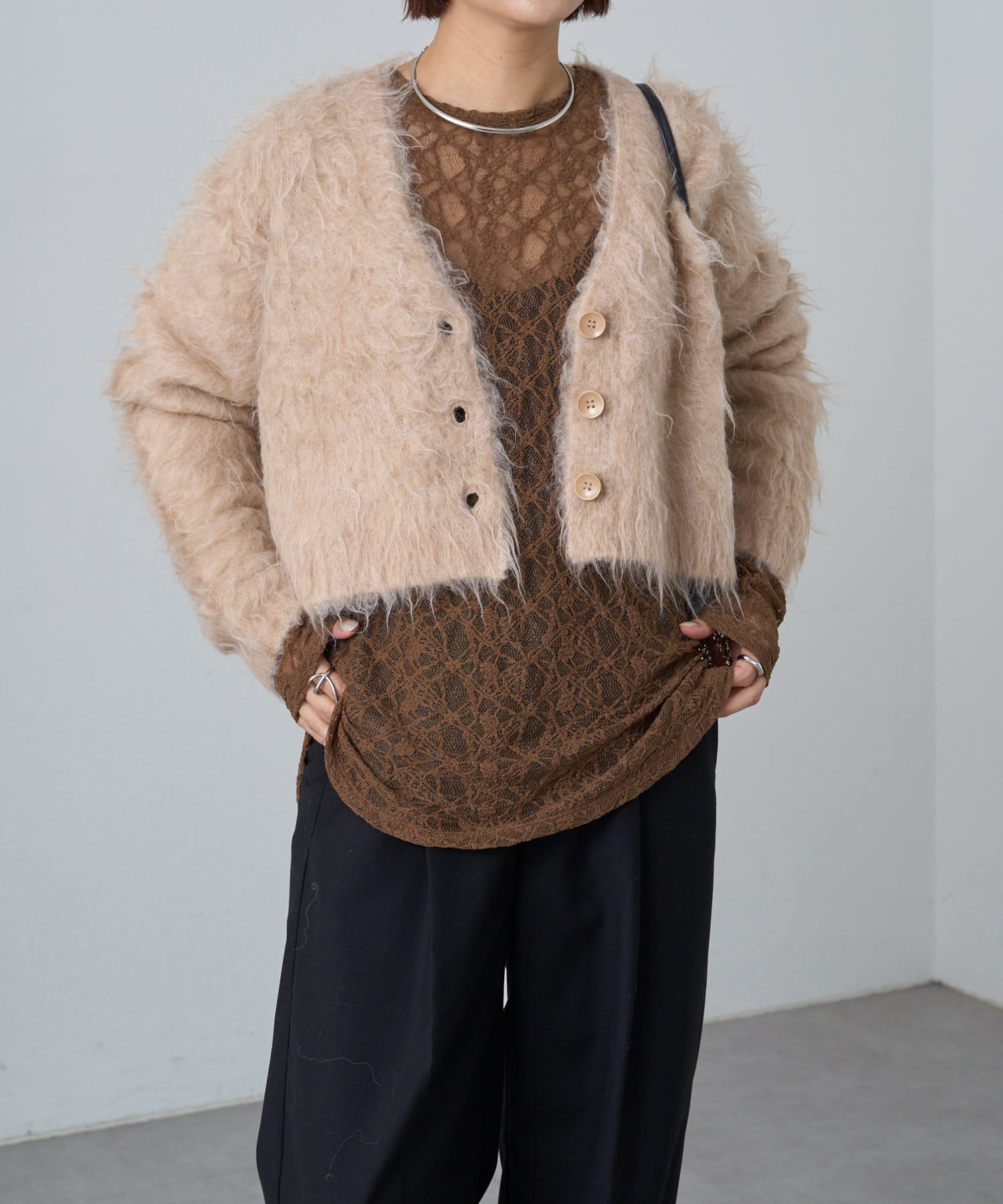 【スタイルアップ効果◎】アルパカモヘヤシャギーショートカーディガン