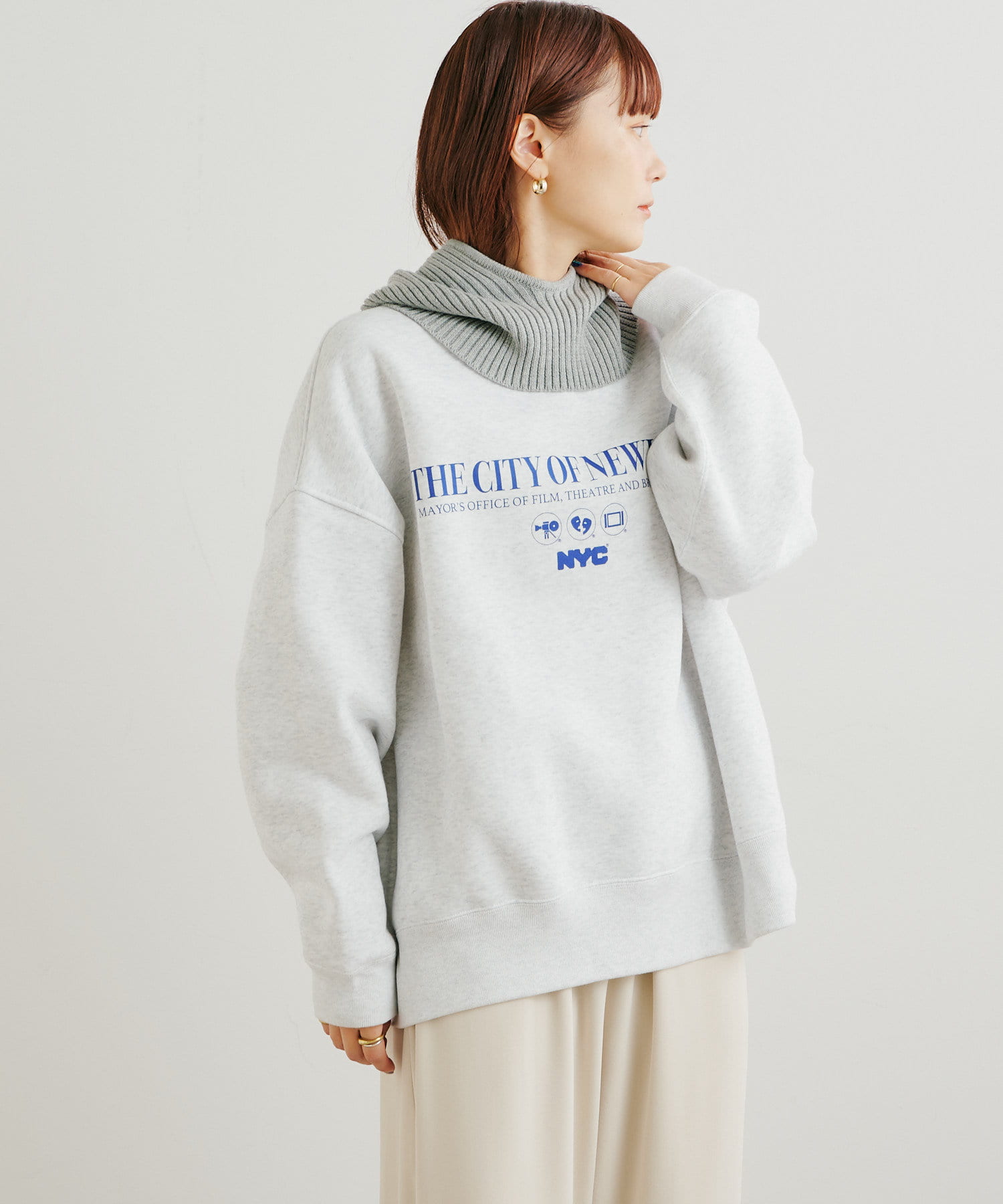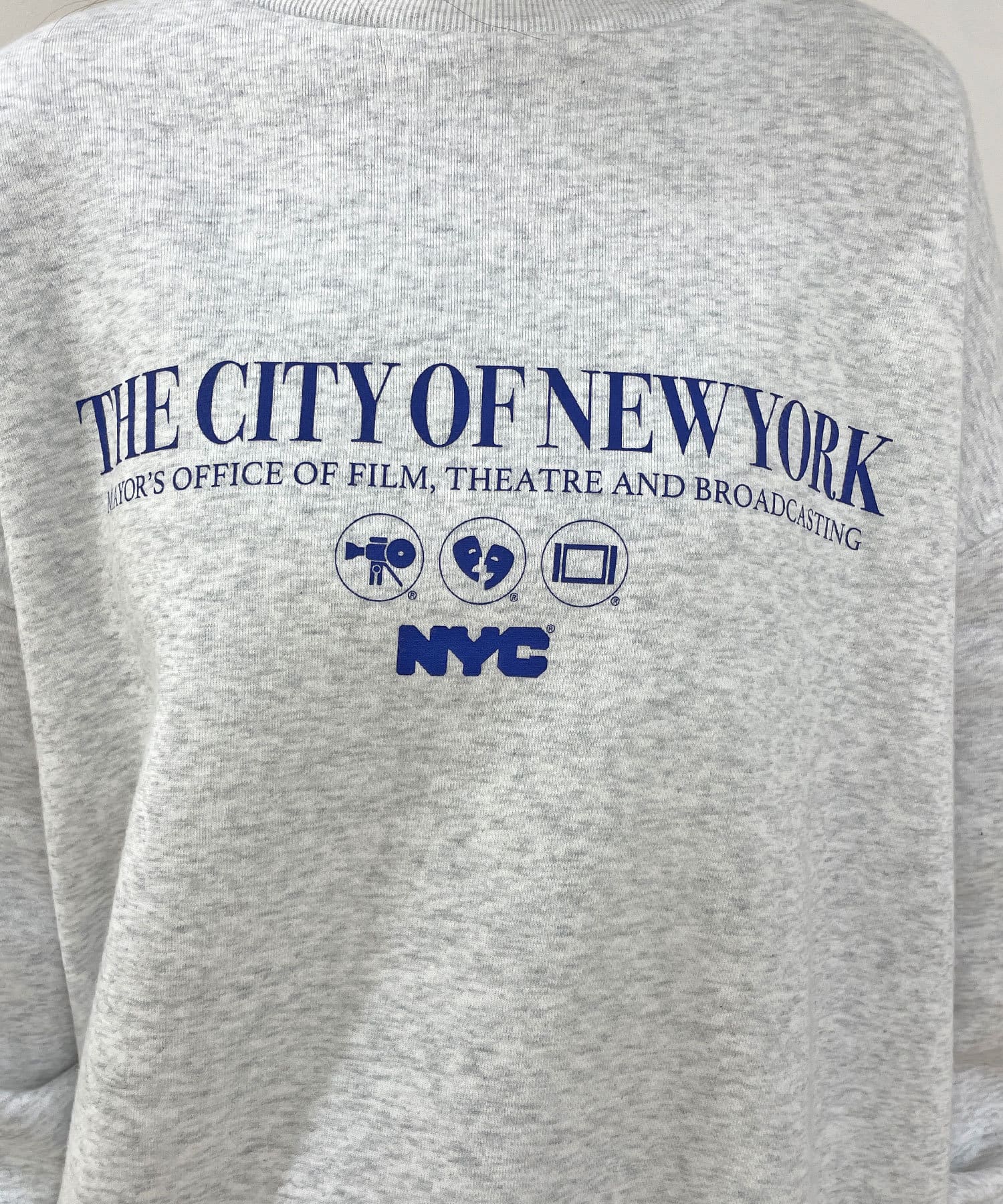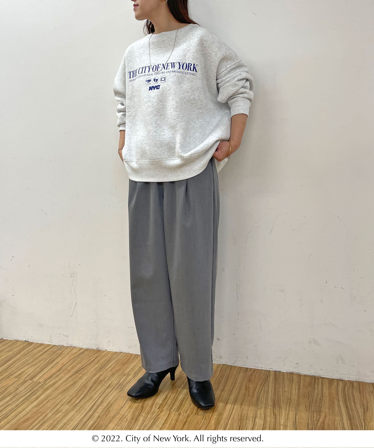 雰囲気のある「THE CITY OF NEW YORK」のプリントがコーディネートのポイントになるスウェット