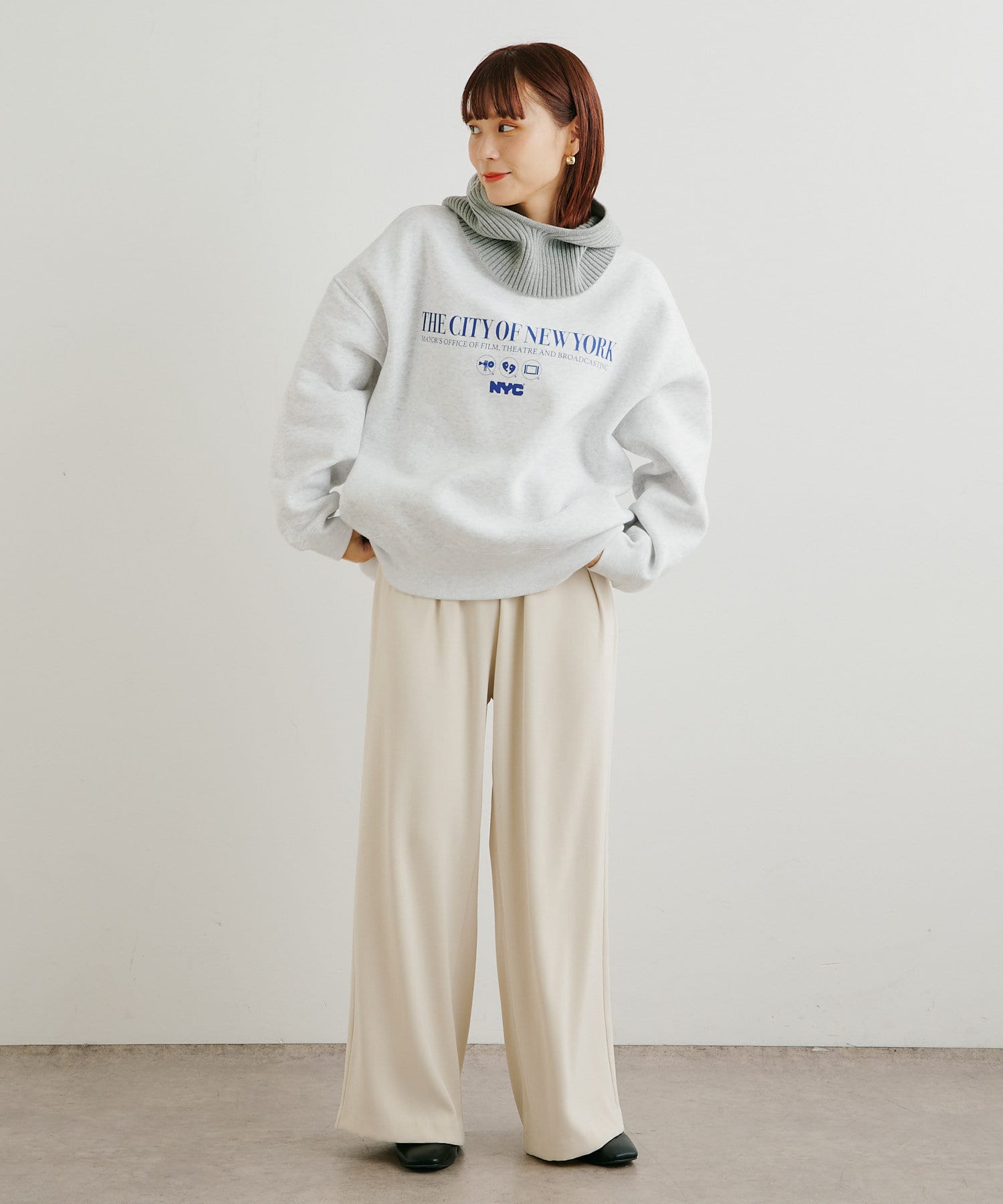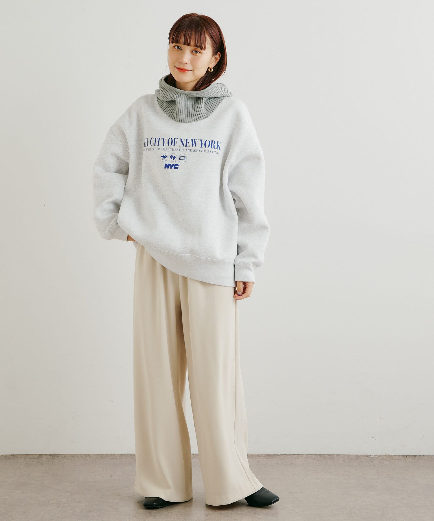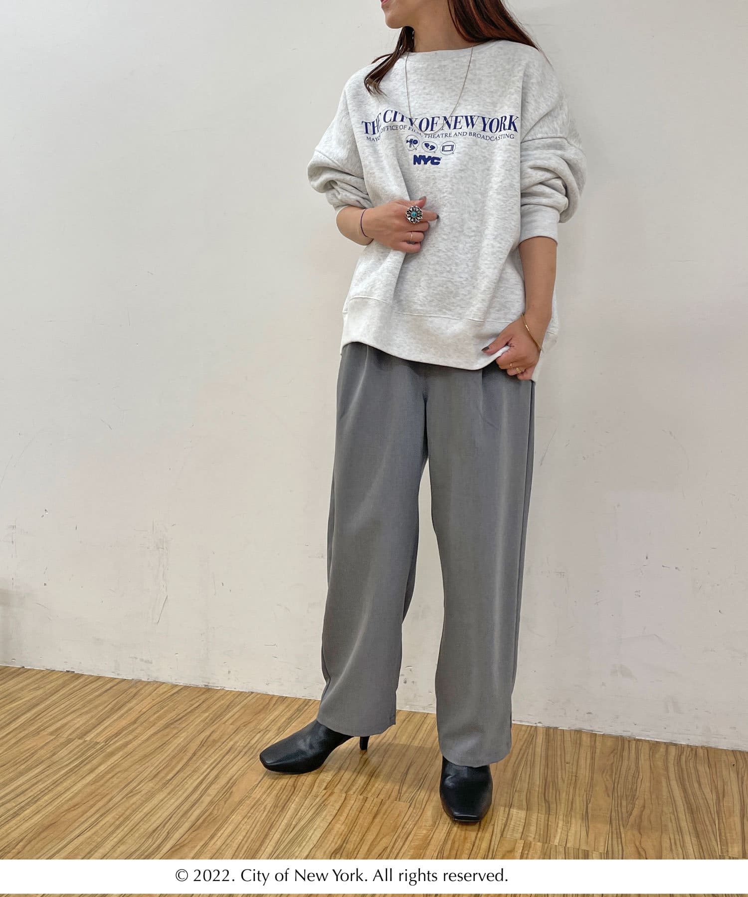 雰囲気のある「THE CITY OF NEW YORK」のプリントがコーディネートのポイントになるスウェット