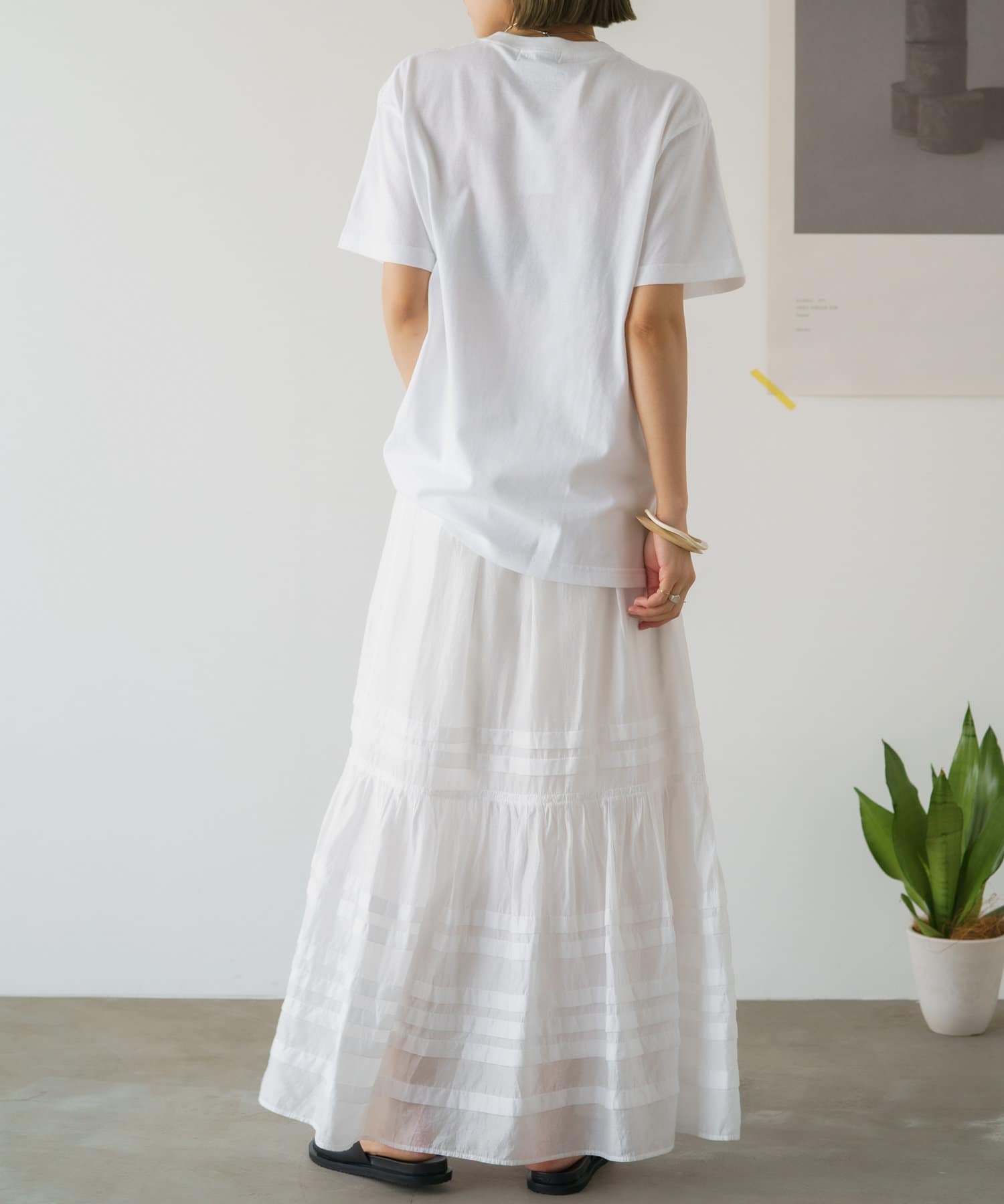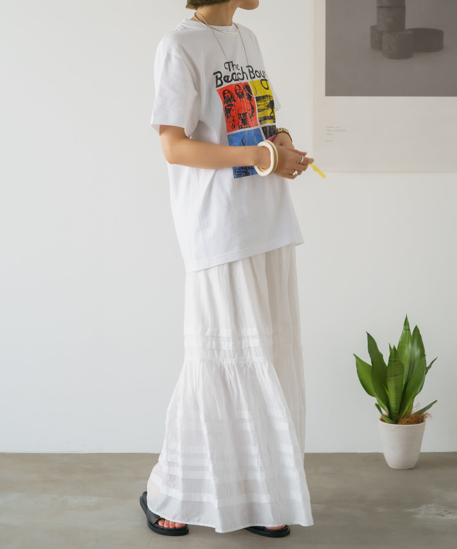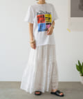 白地にカラープリントが目を引くTシャツ