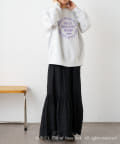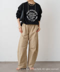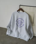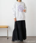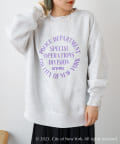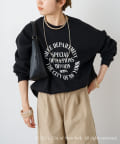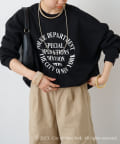 サークルロゴのプリントがコーディネートのポイントになるスウェット