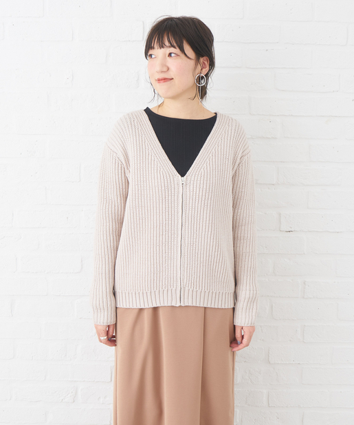 【ざっくり編み】ロービングリブ前ジップカーディガン