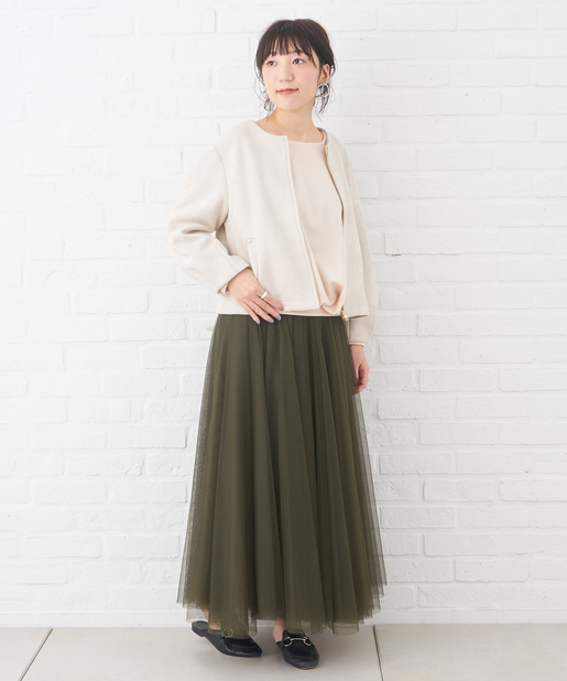 ・チュールレーススカートで下に動きが出るものを合わせるのも可愛いです。