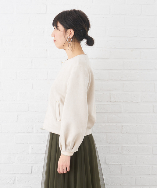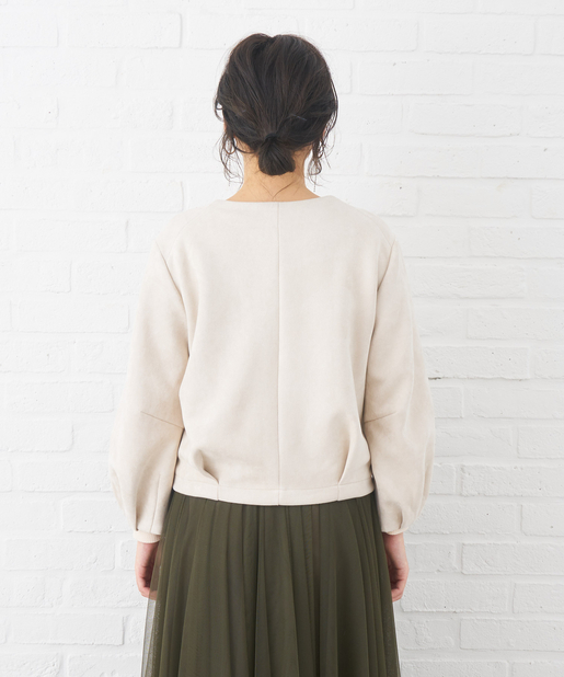 【女性らしさをプラス】ボンディングスエード袖口タックブルゾン