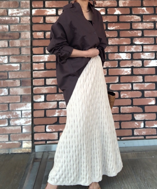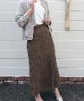 • Chez toi(シェトワ) ☆【リーフ柄編みがポイント】ニットロングスカート