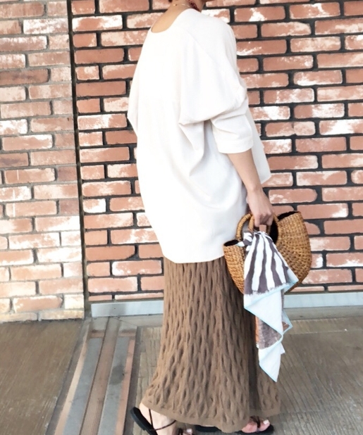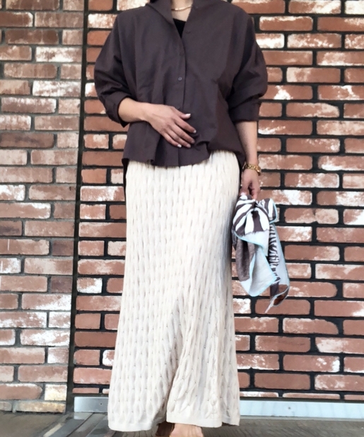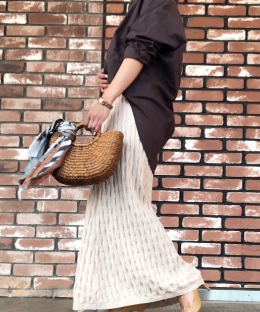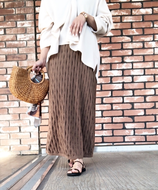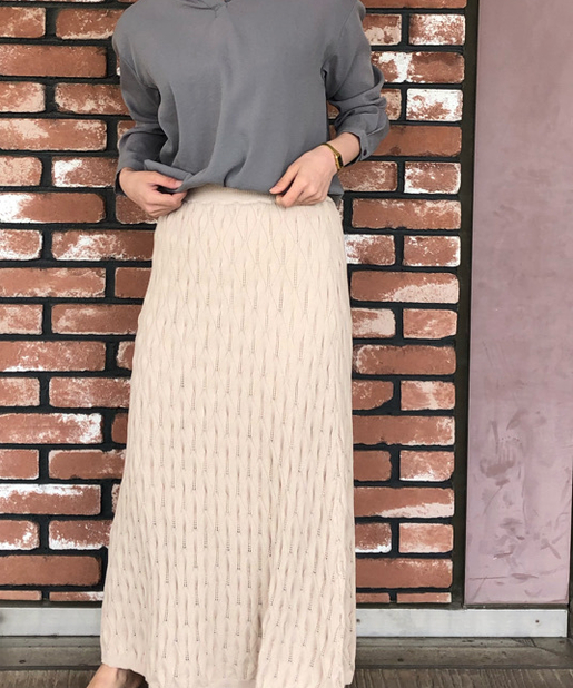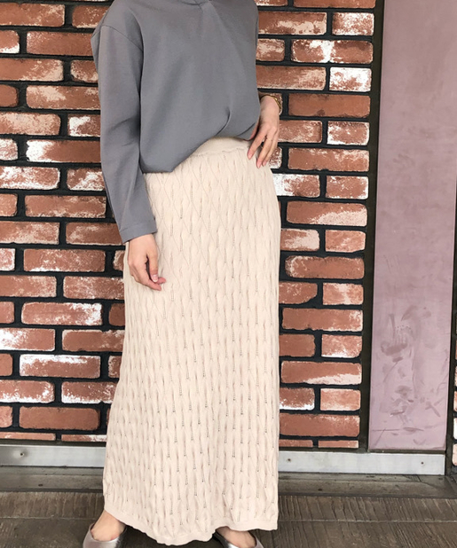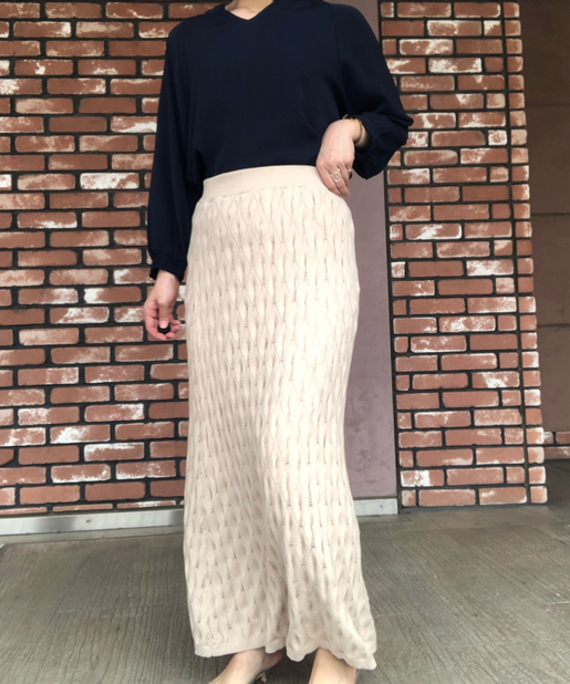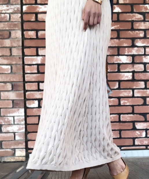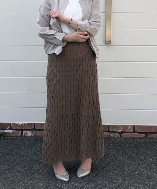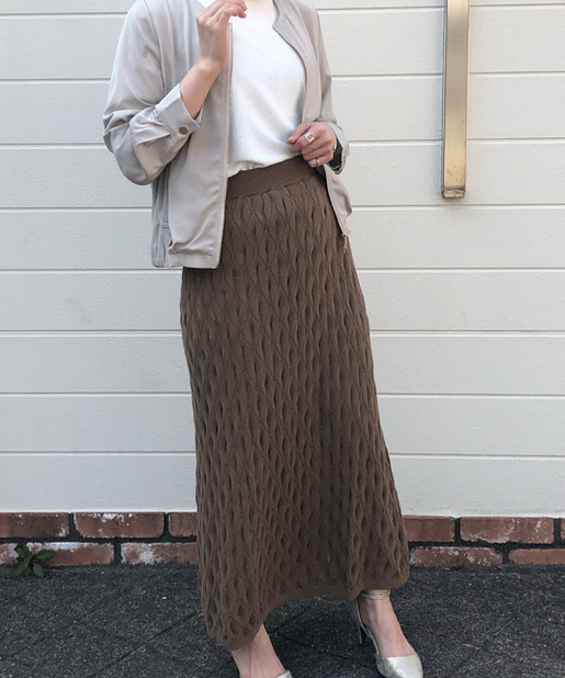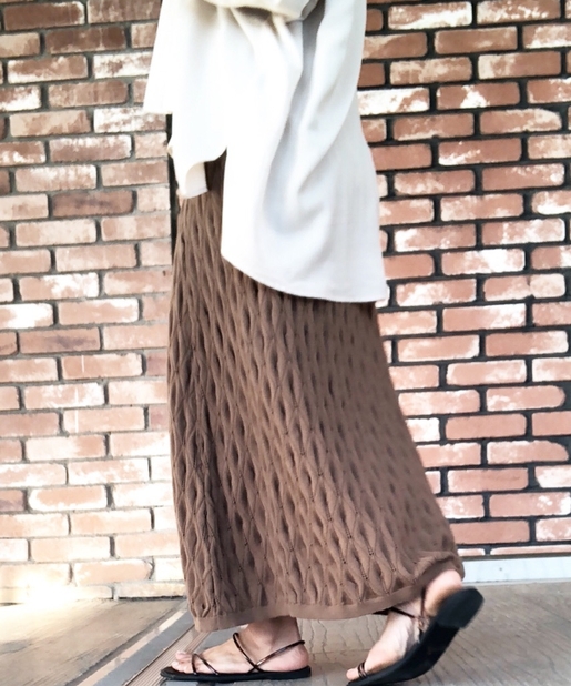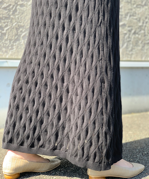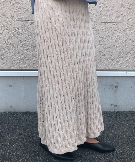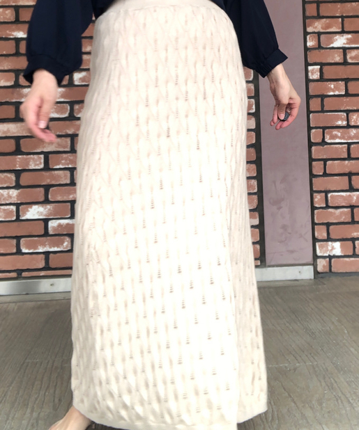 ☆【リーフ柄編みがポイント】ニットロングスカート