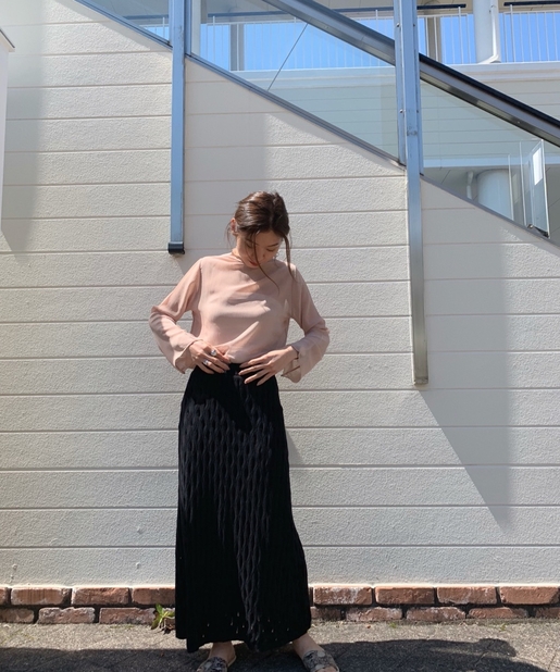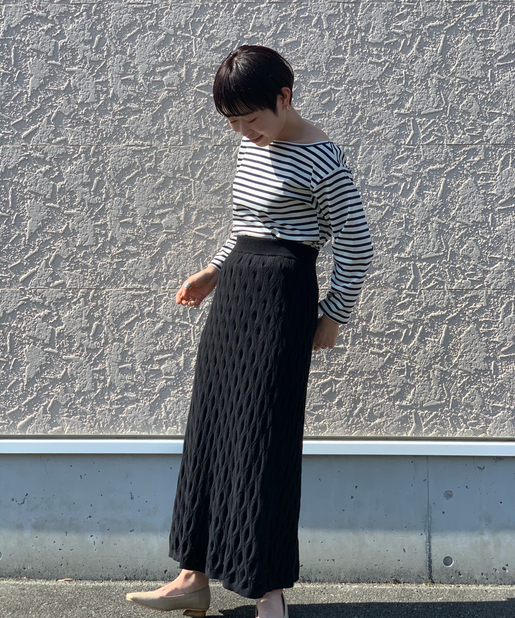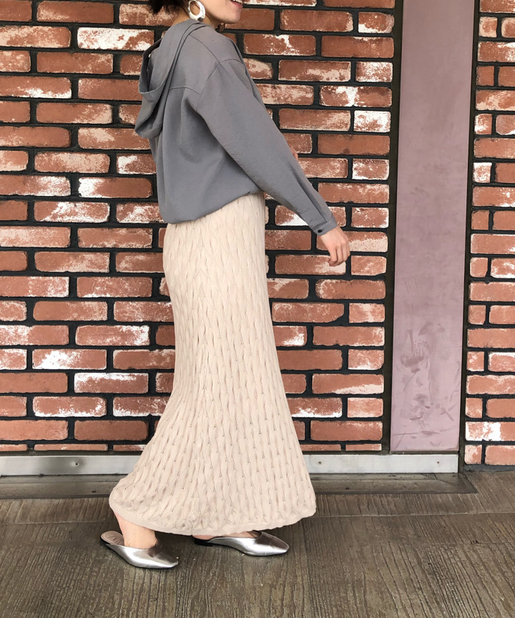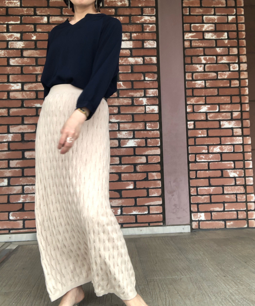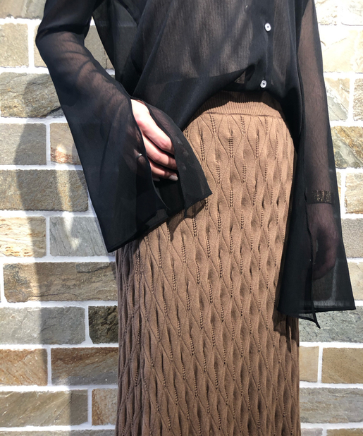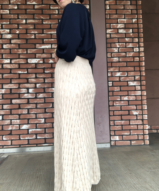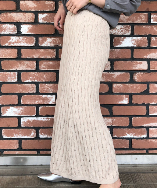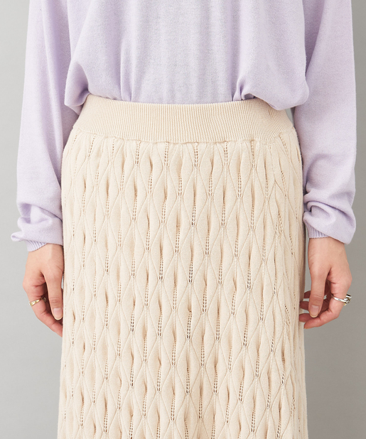 Chez toi(シェトワ) ☆【リーフ柄編みがポイント】ニットロングスカート