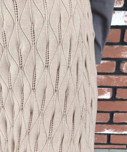 ・リーフ柄編みのデザインも珍しく一枚持っておきたいアイテムです。