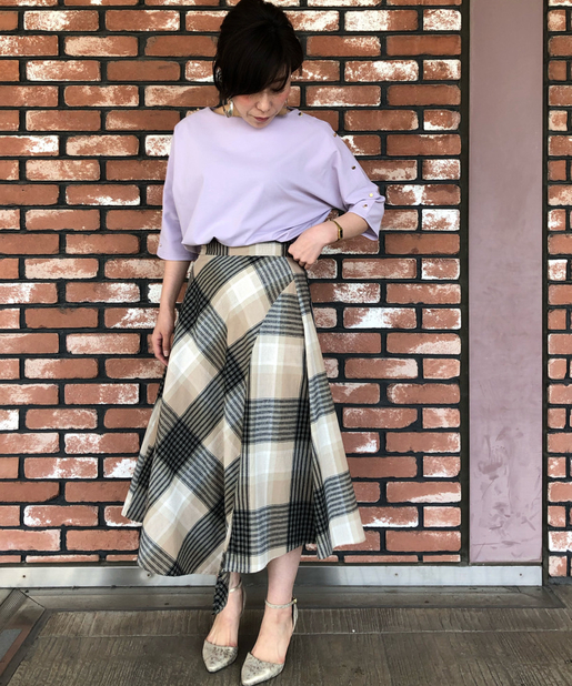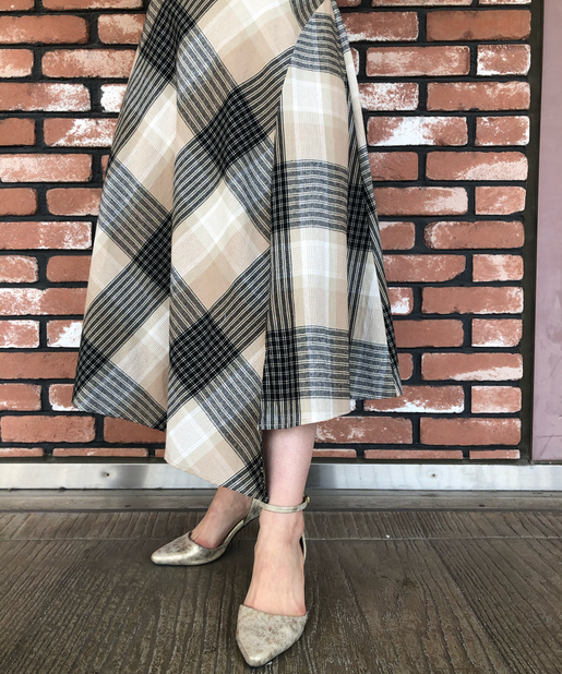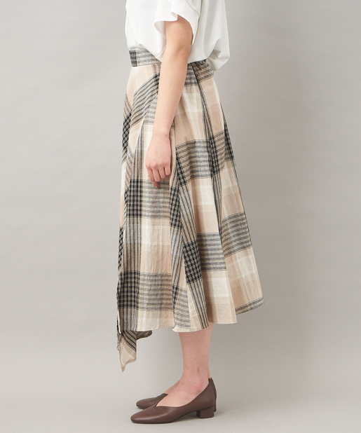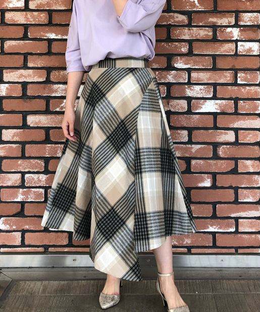 【ふんわり軽やかな印象】大判チェックアシメ切替スカート