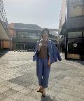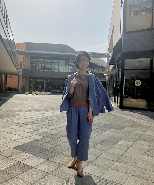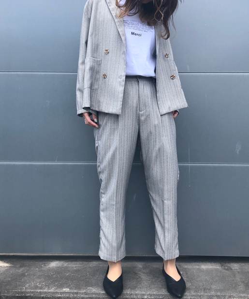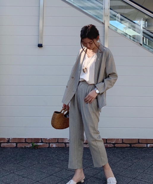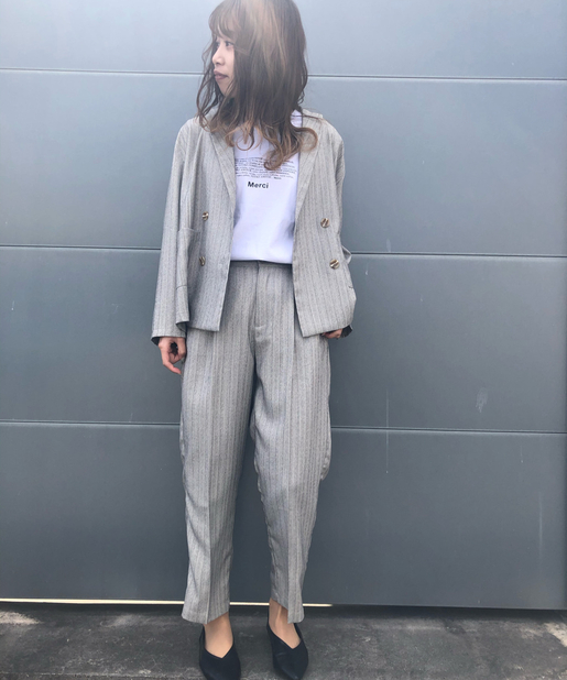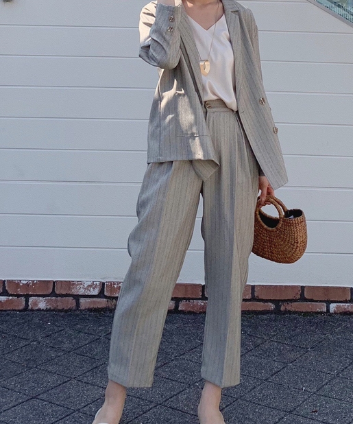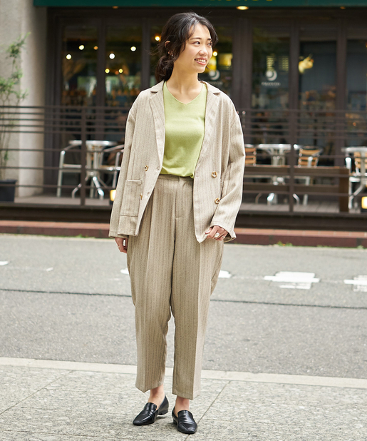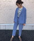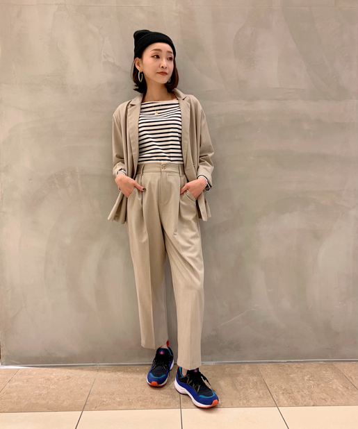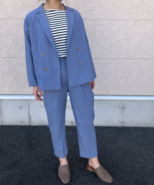 ・同素材のジャケットをオンでシーズンライクなセットアップが完成します。