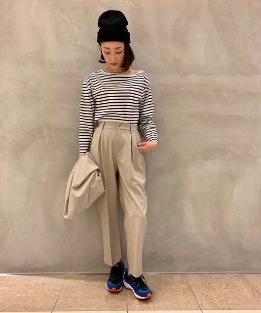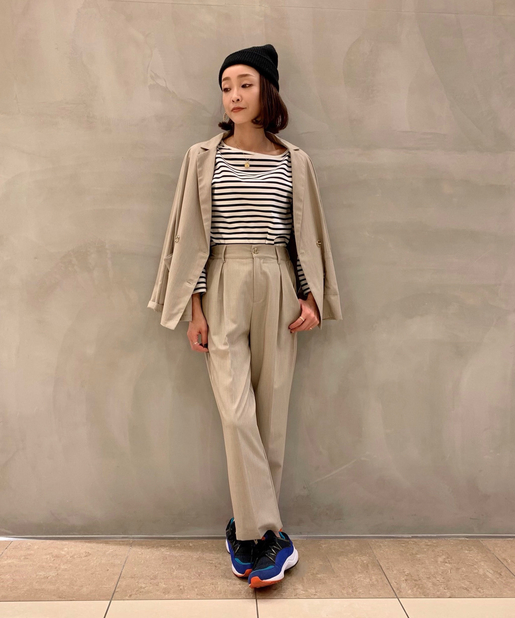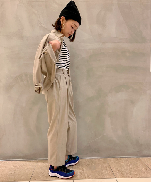 ・休日にアクティブに移動する場合はスニーカーでカジュアルミックスも素敵です。