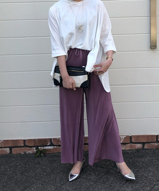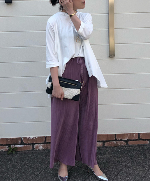 ・キレイメなら足元はパンプス、カジュアルならバブーシュ合わせも良さそうです。