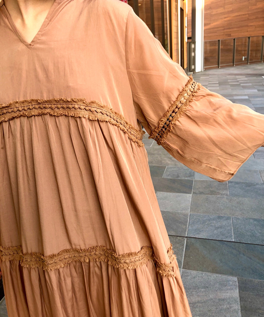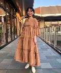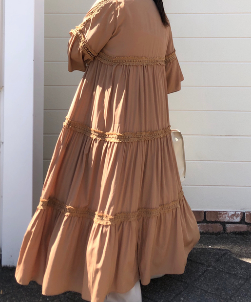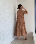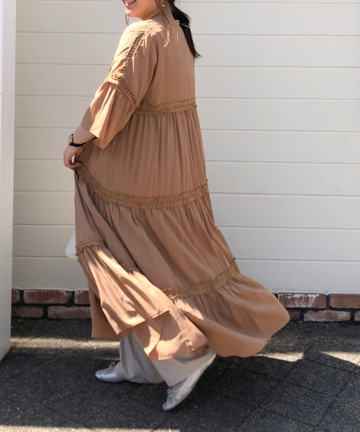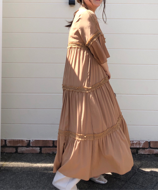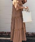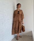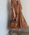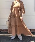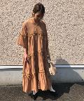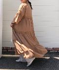 ☆【一枚で主役】サテンティアードボリュームロングワンピース