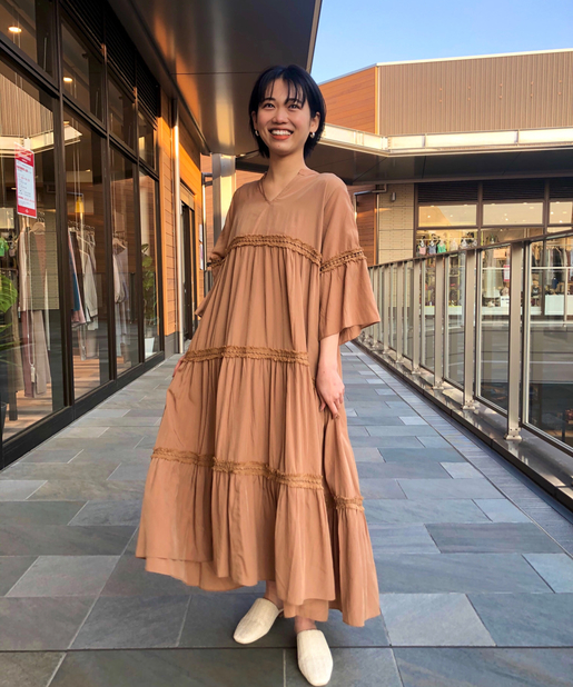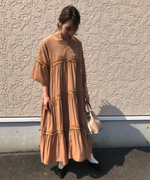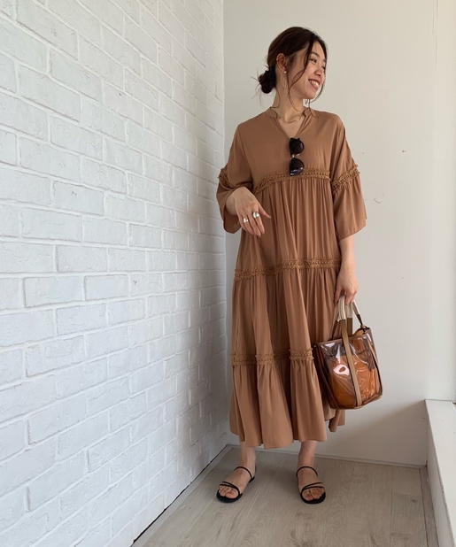 ・ロングワンピースで丈感があるのでシンプルに一枚で着るのがおすすめです。