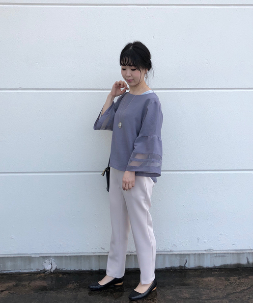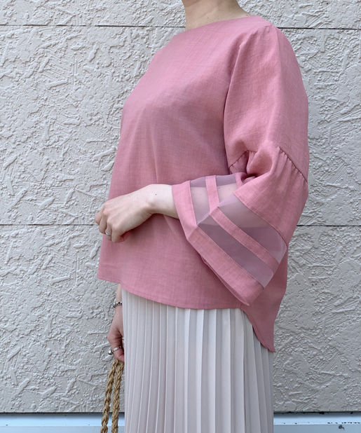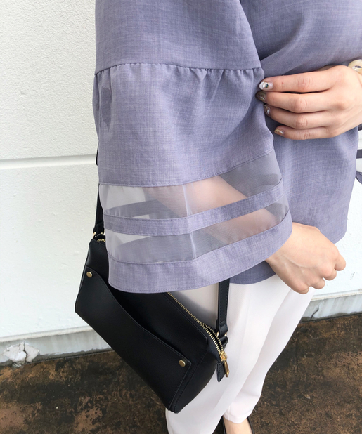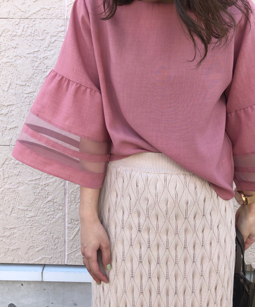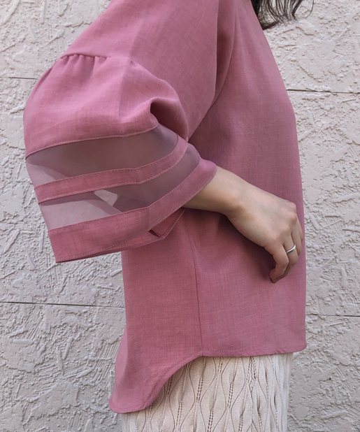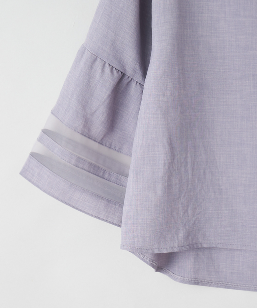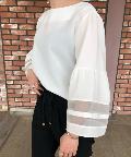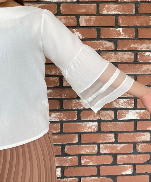 【袖がポイント・二の腕細見え】袖シアーフレアブラウス