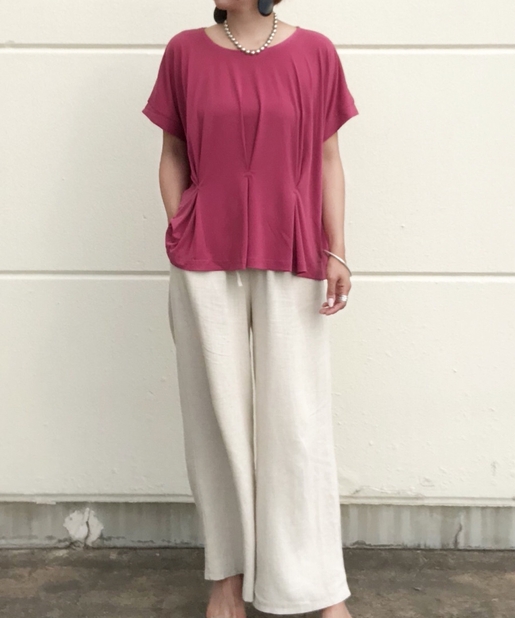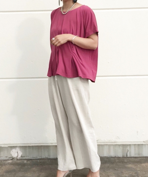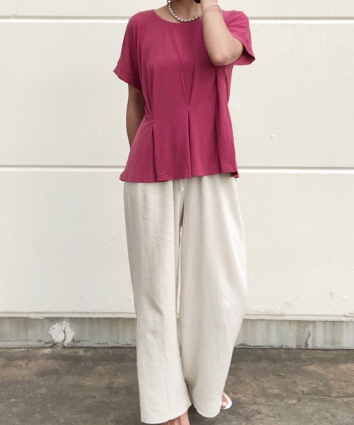 【タックで上品な印象】エスパンディーウエストボックスタックプルオーバー