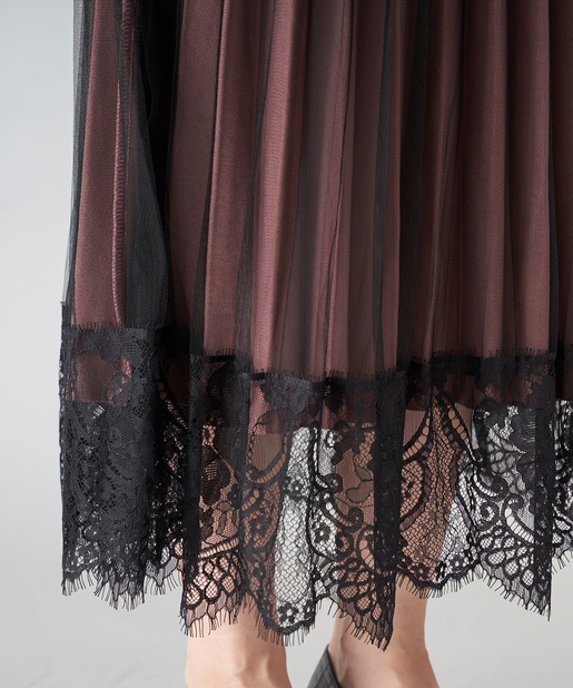 【リバーシブルで2度楽しめる♪】リバーシブル裾レースプリーツスカート