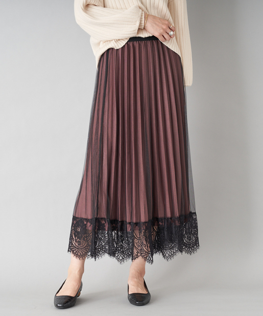 TOP > Chez toi > レディース > スカート > スカート > 【リバーシブルで2度楽しめる♪】リバーシブル裾レースプリーツスカート