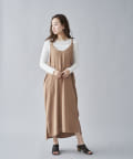 TOP > Chez toi > レディース > ワンピース > ワンピース > 【インナ―付きセットアイテム】2本ハトメキャミワンピース×長袖カットリブT