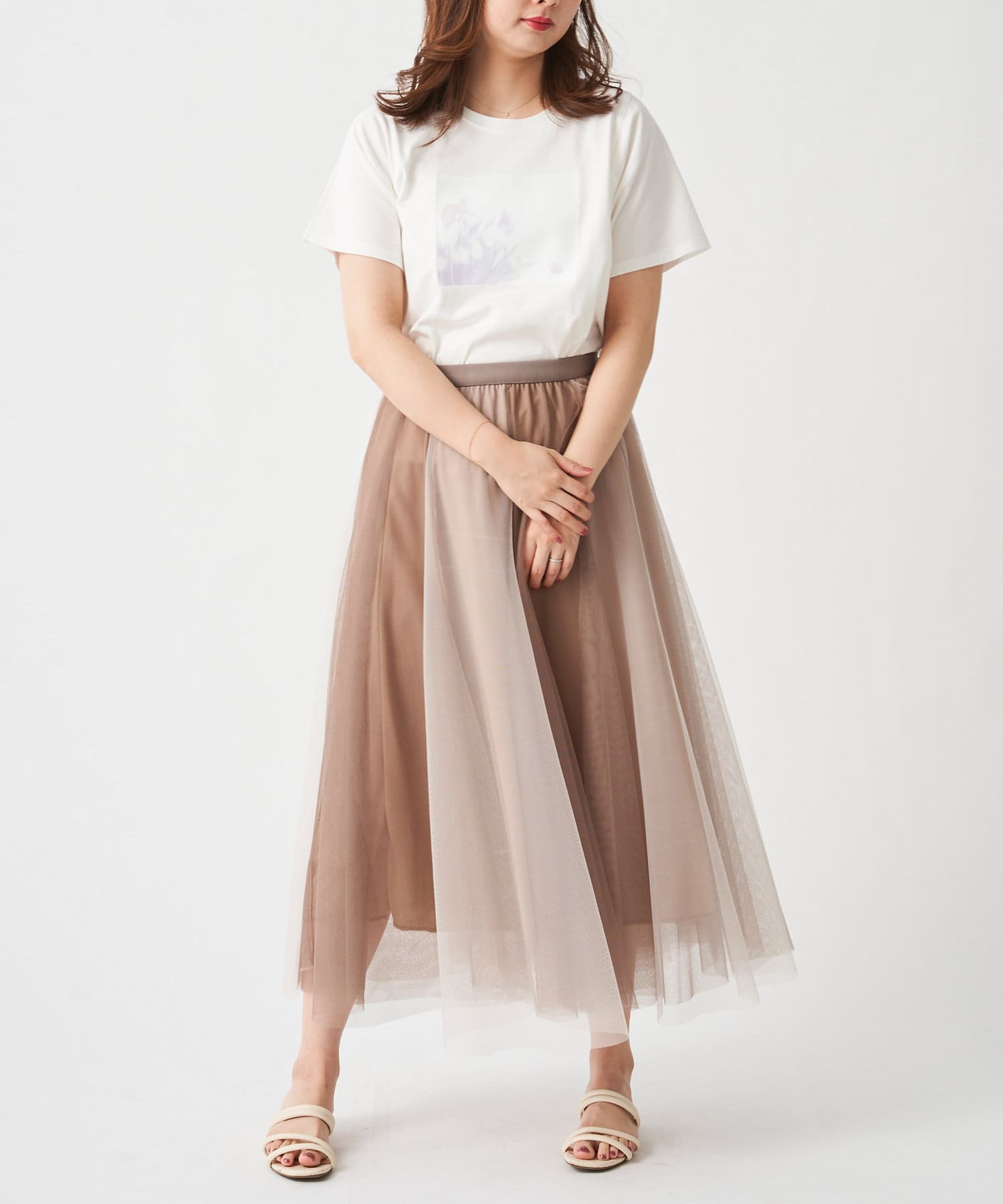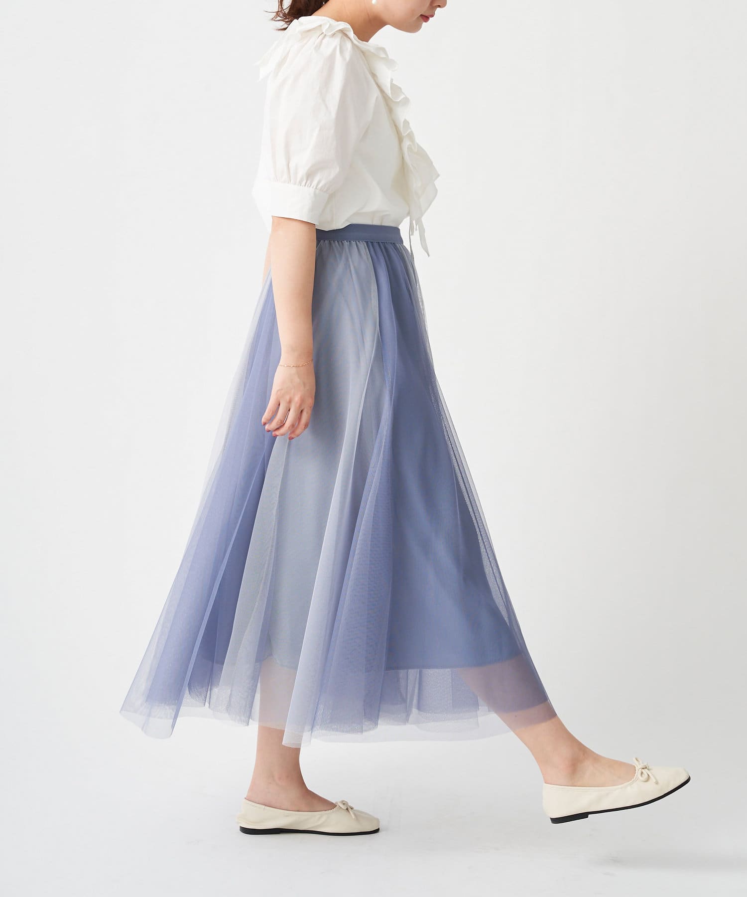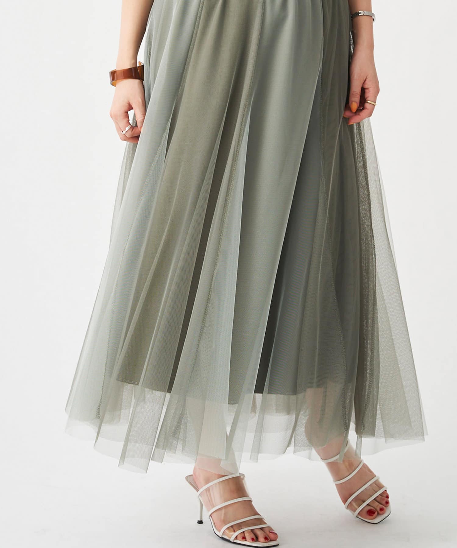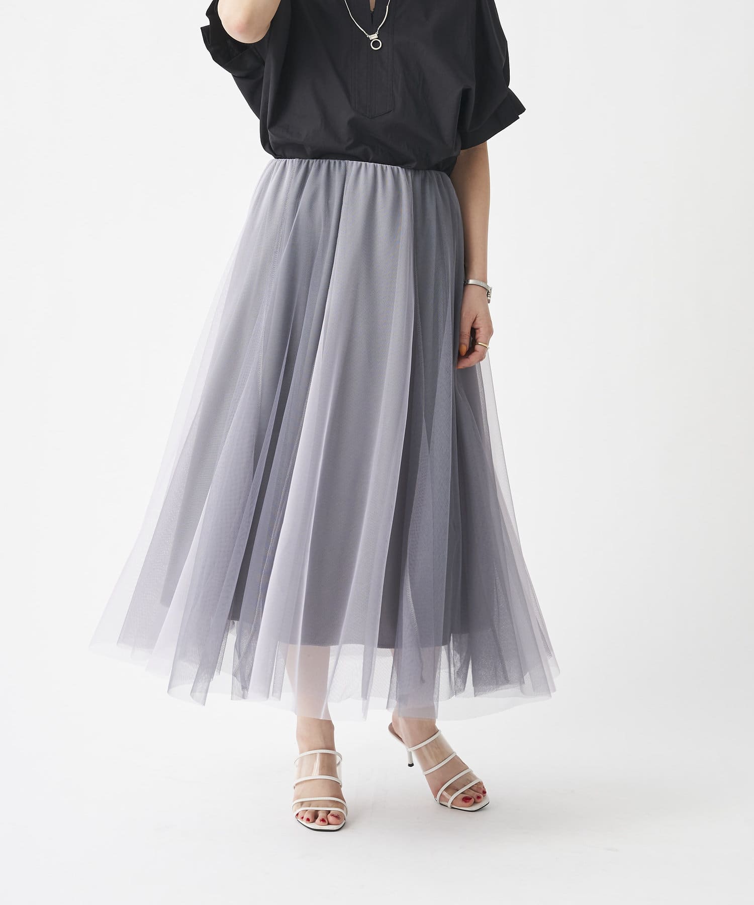 ・程よいボリューム感のあるチュールスカートで華やかな印象で履いて頂けます。