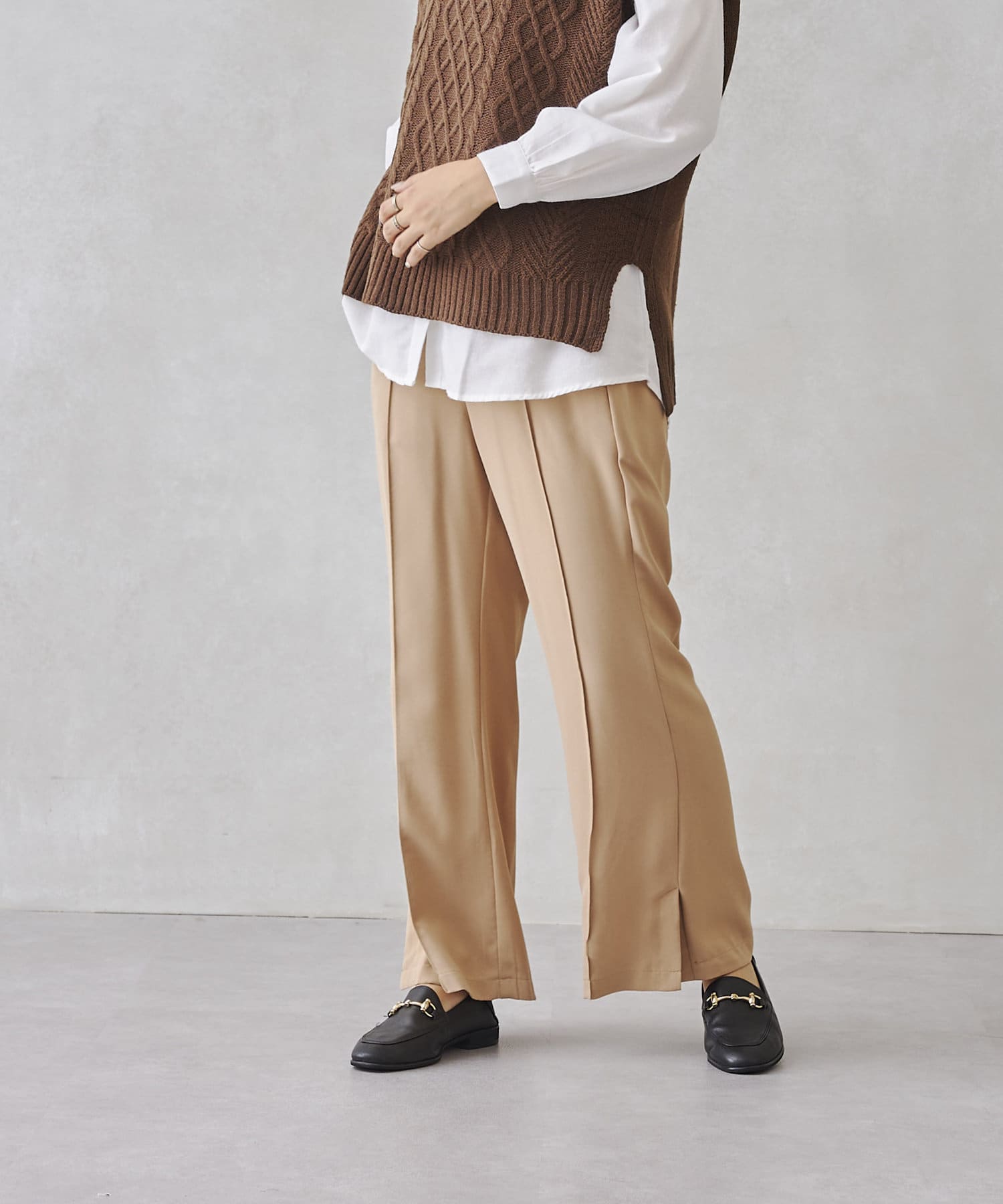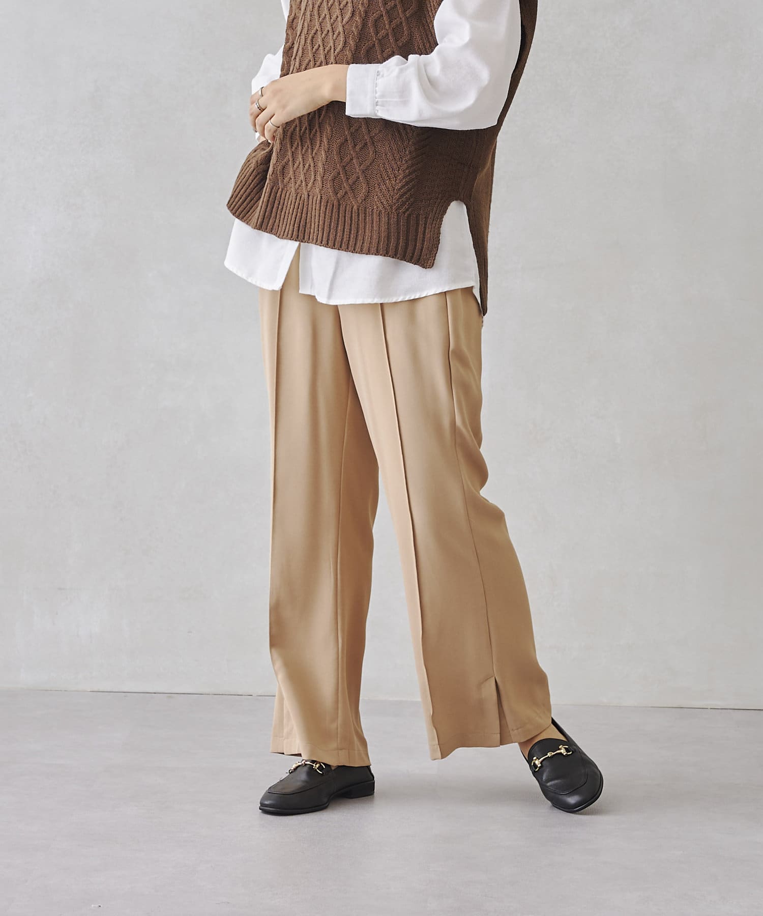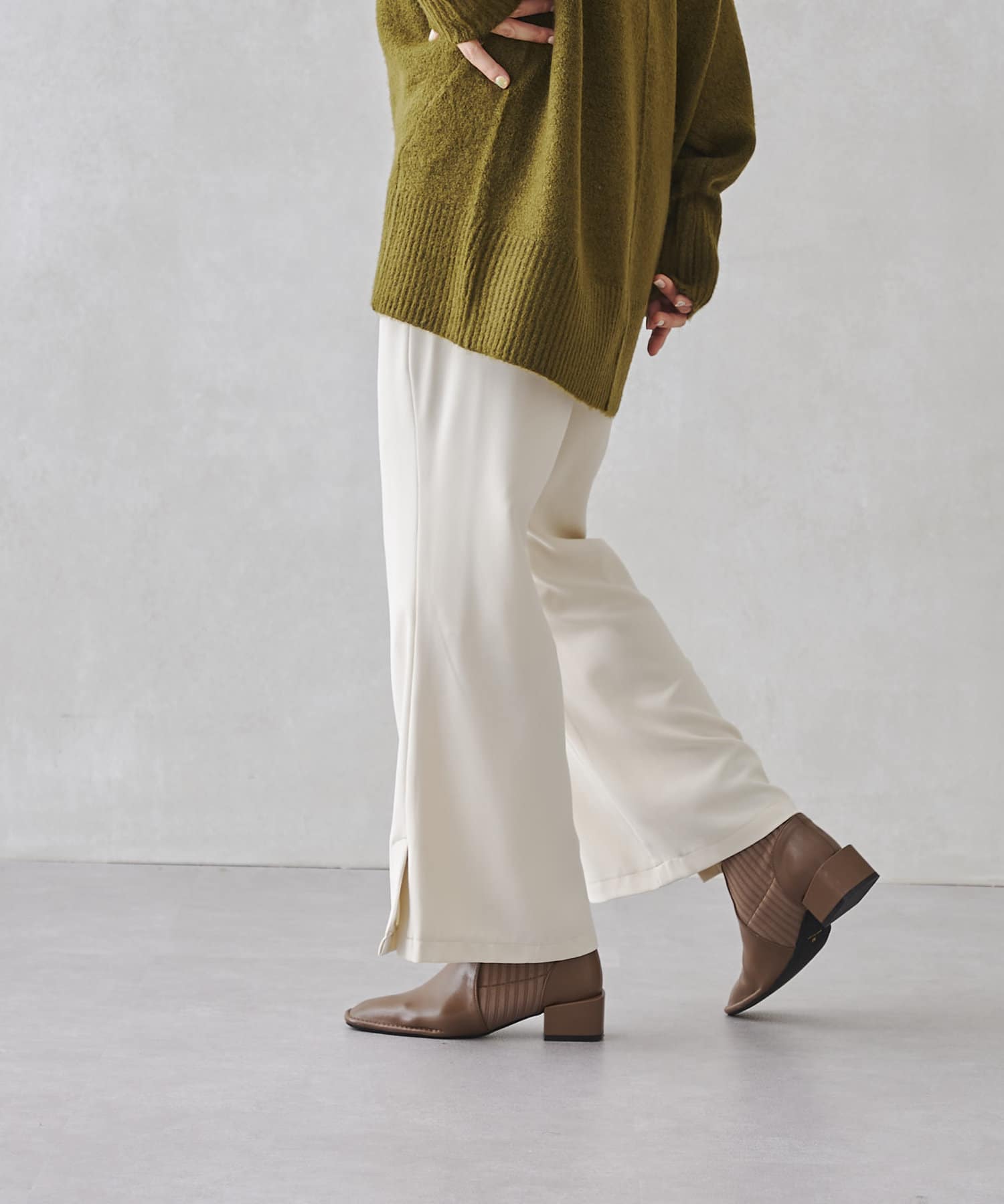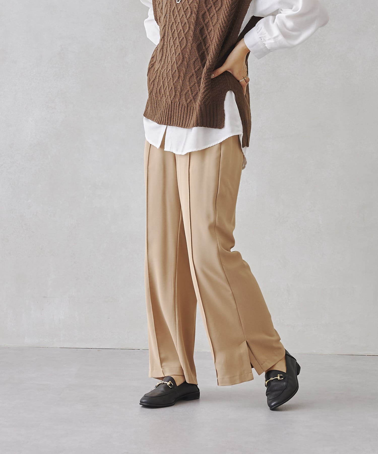 サイドスリットのきれいめ見えするセミワイドパンツ