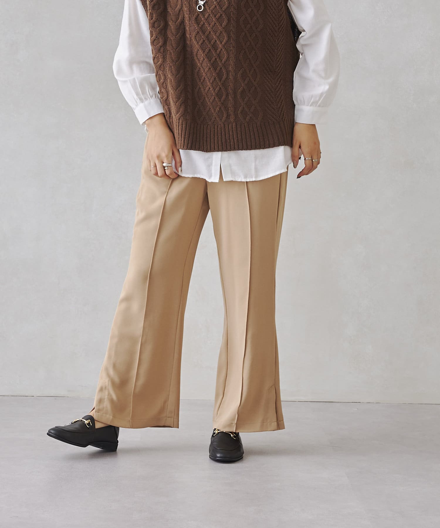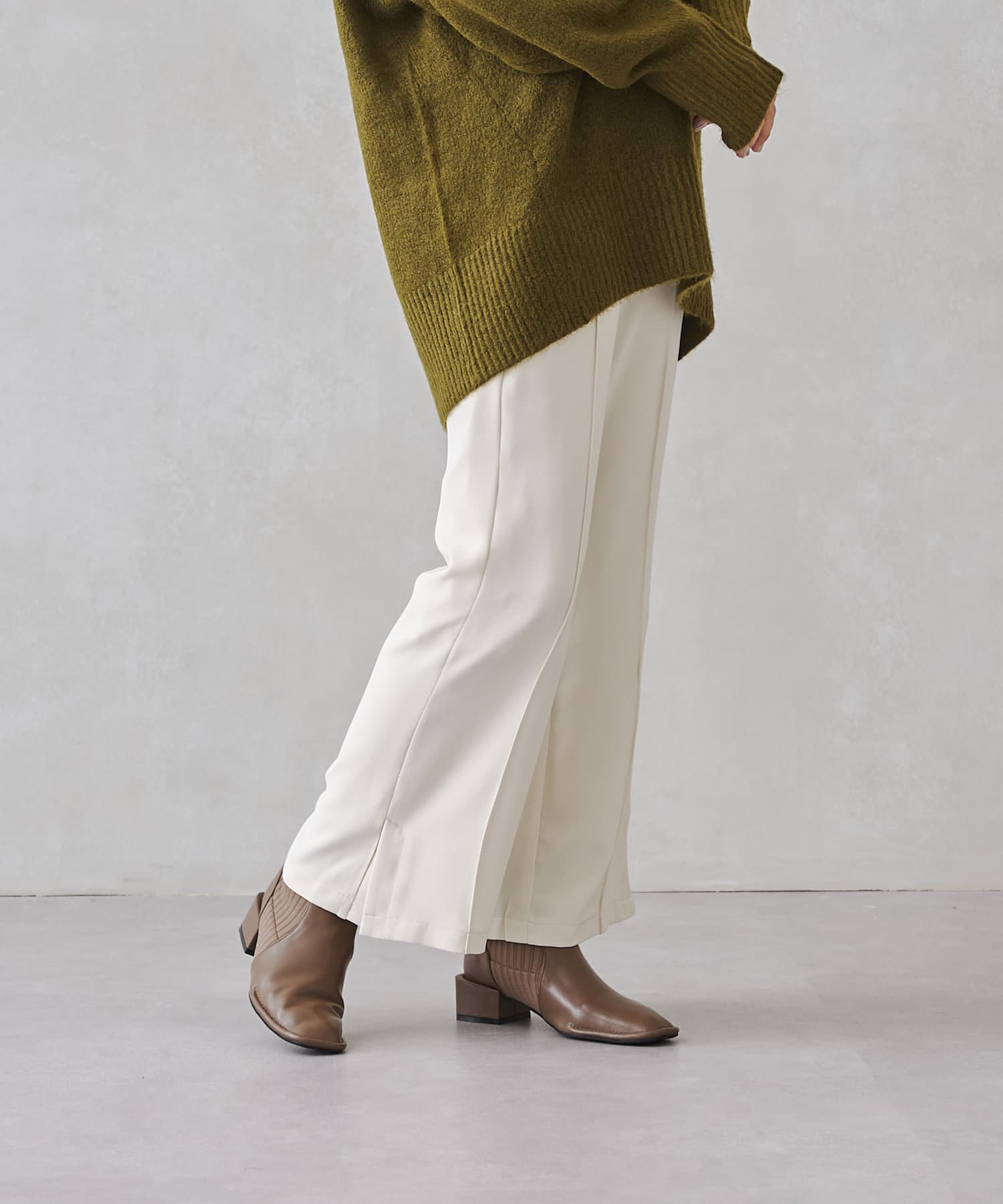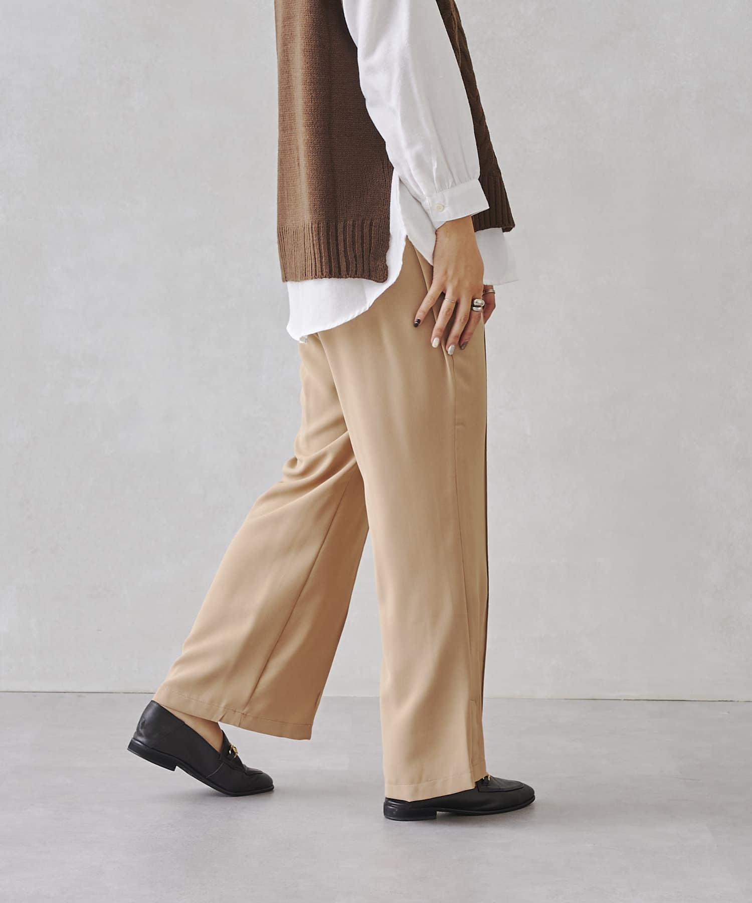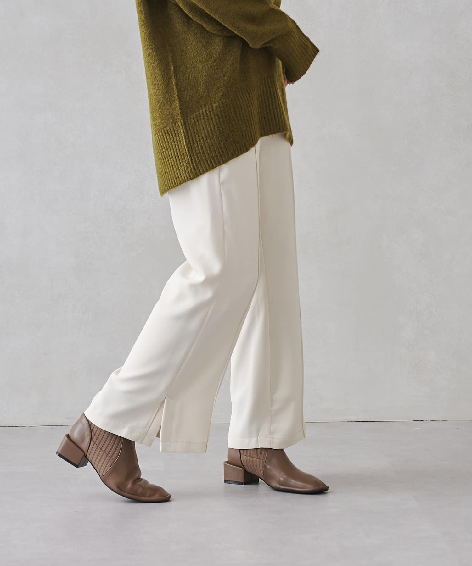 サイドスリットのきれいめ見えするセミワイドパンツ
