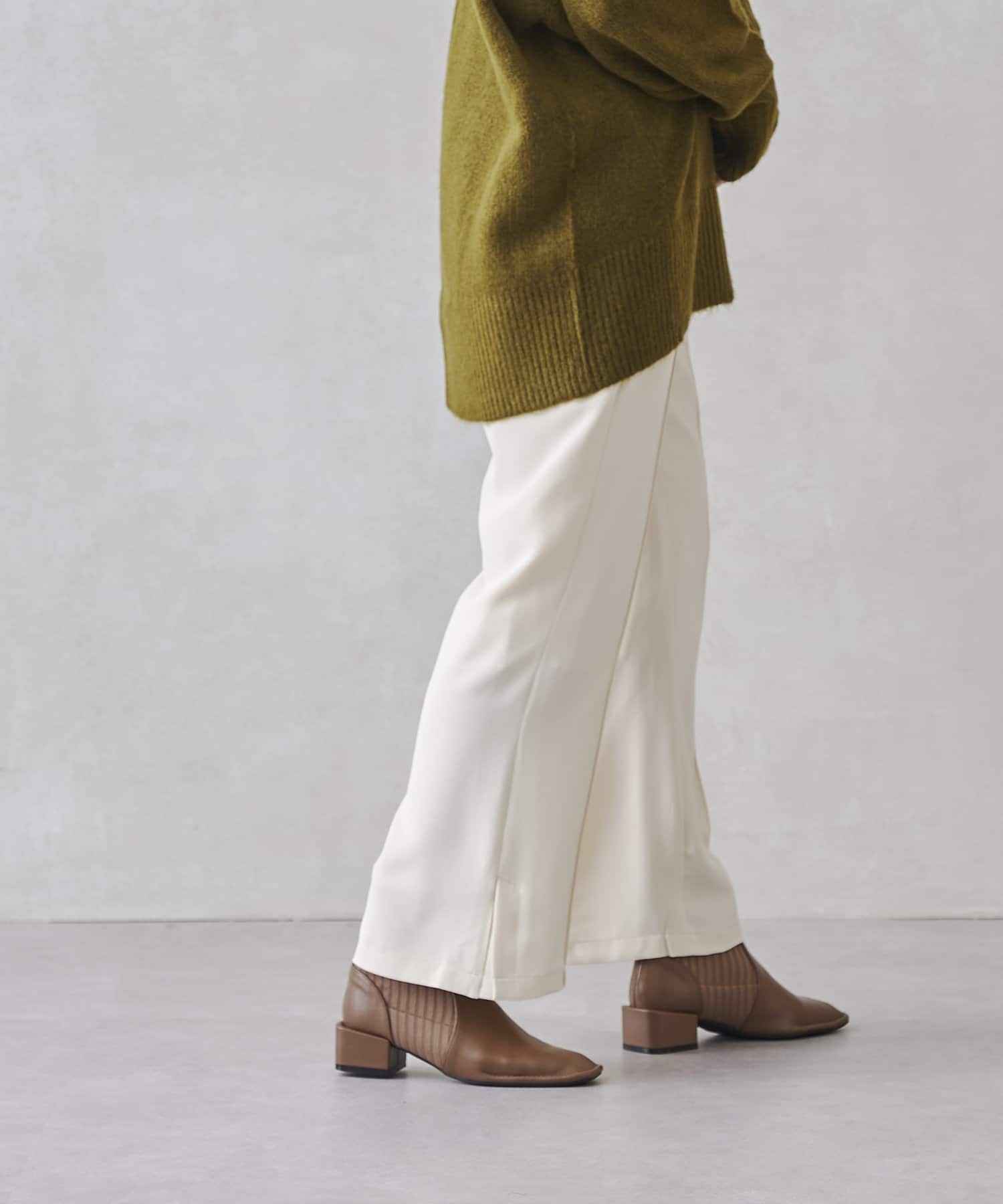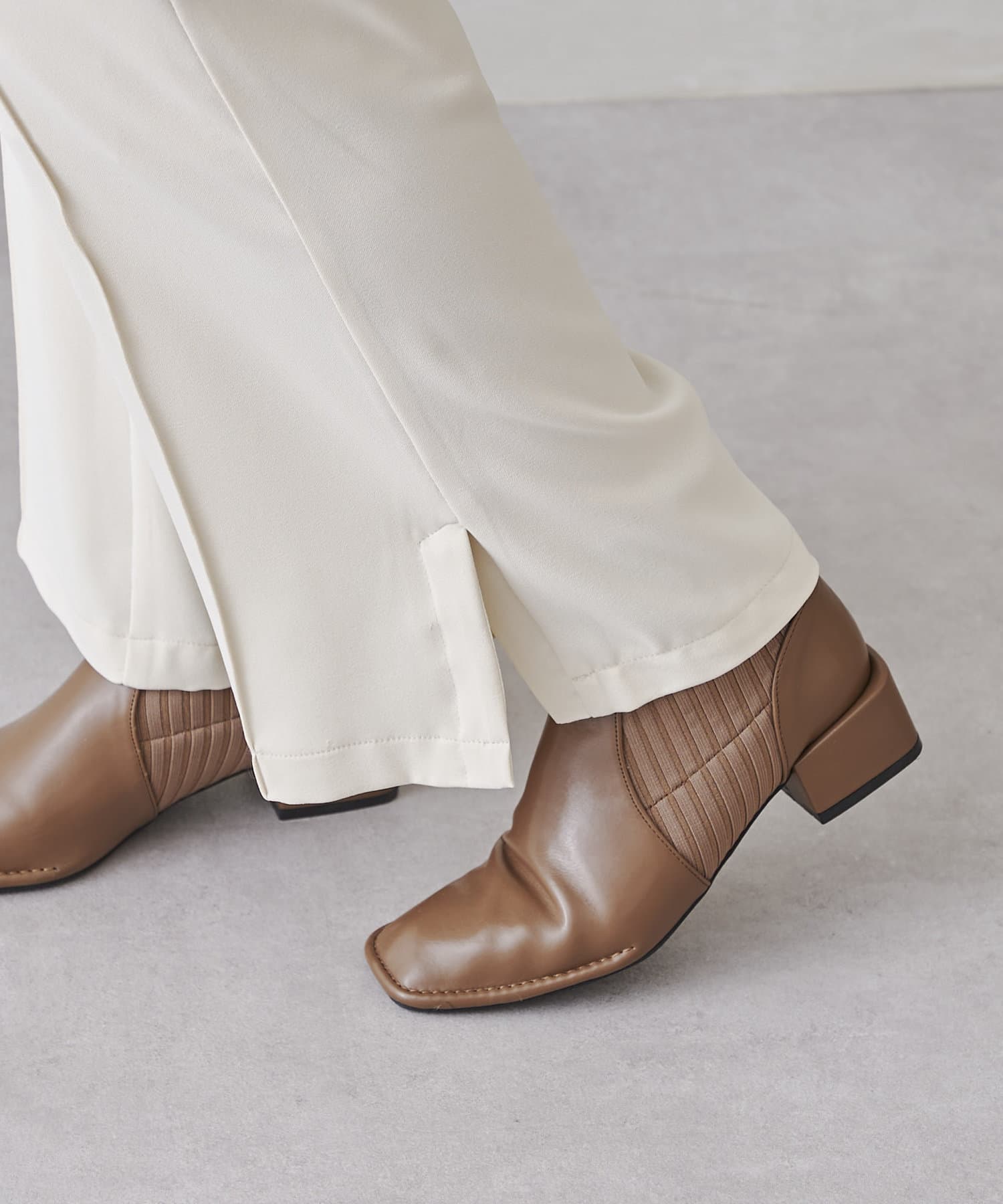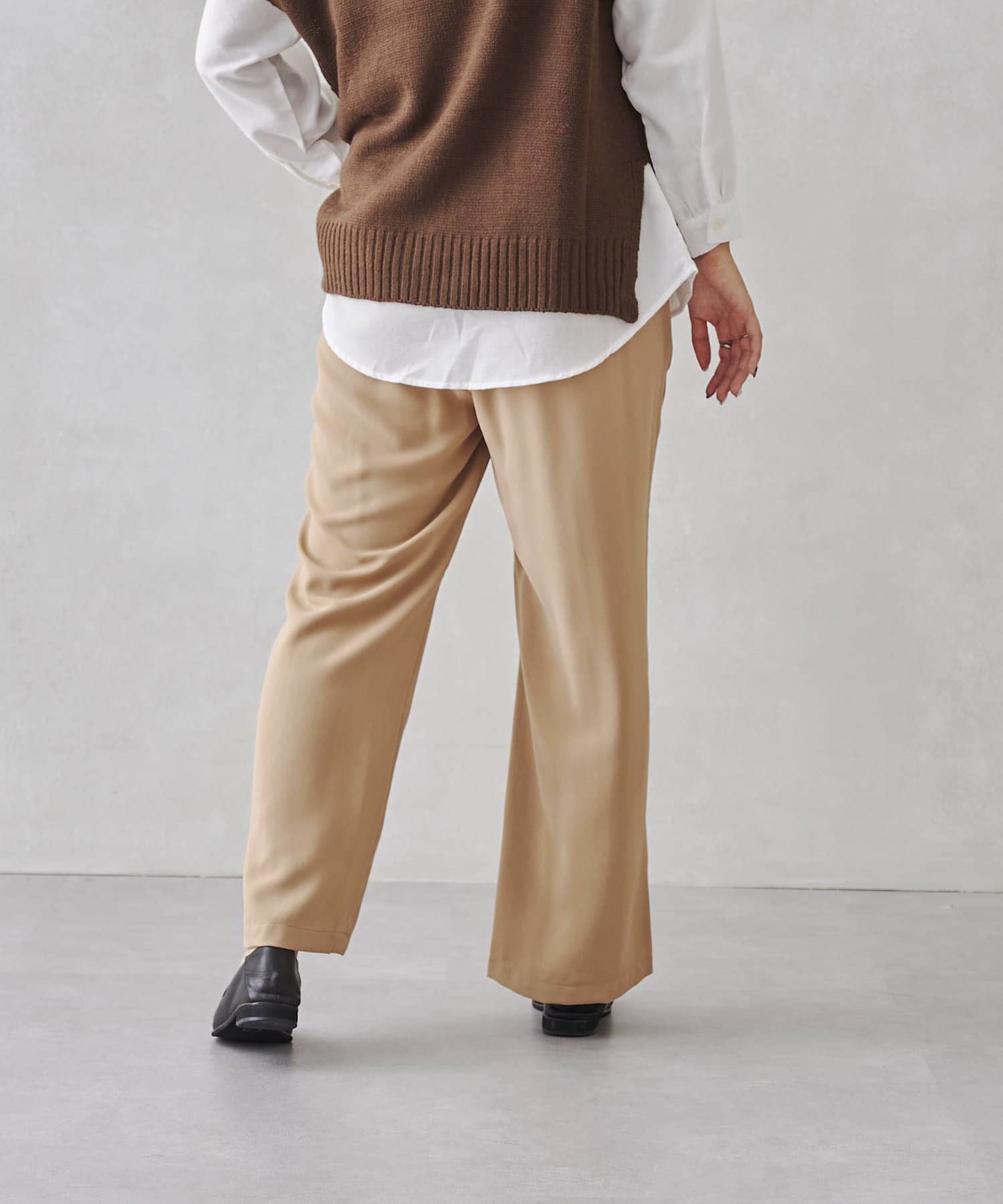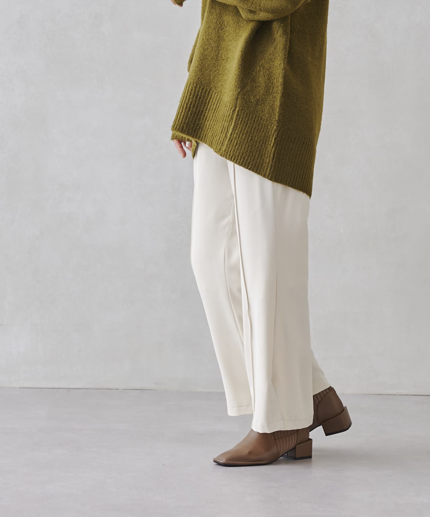 サイドスリットのきれいめ見えするセミワイドパンツ