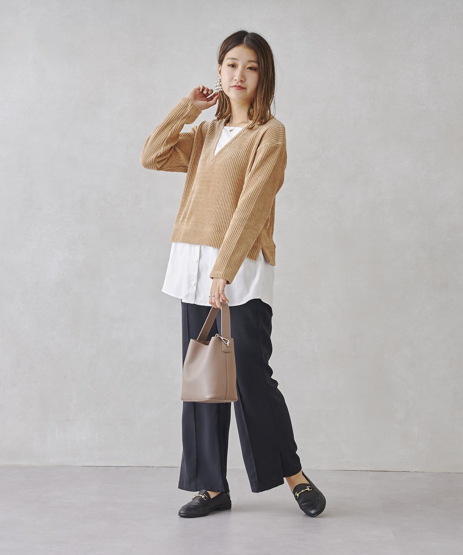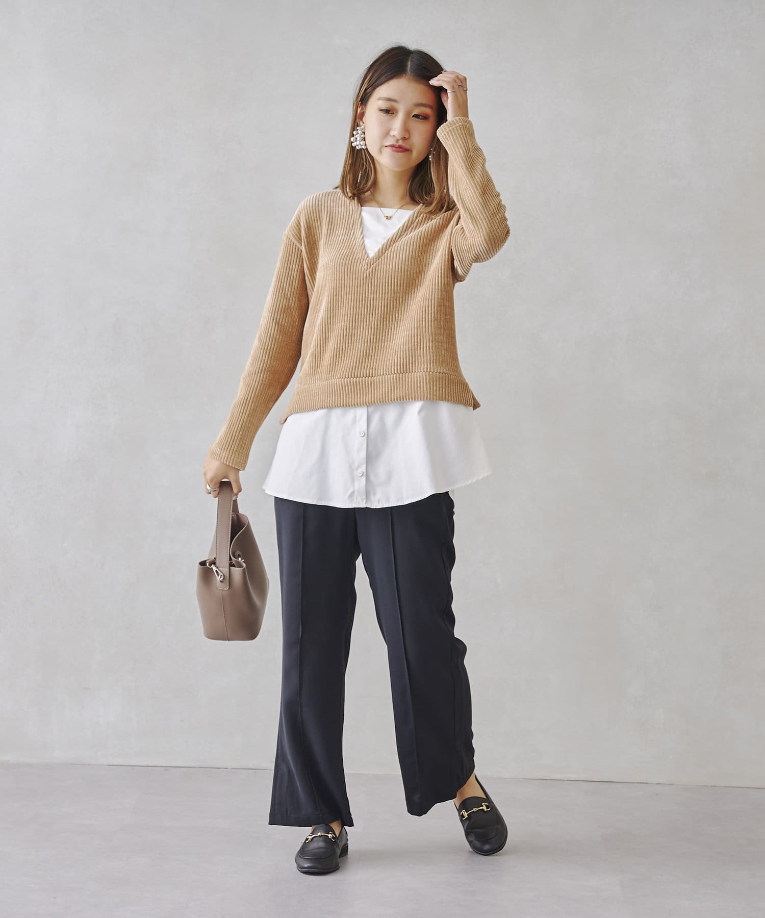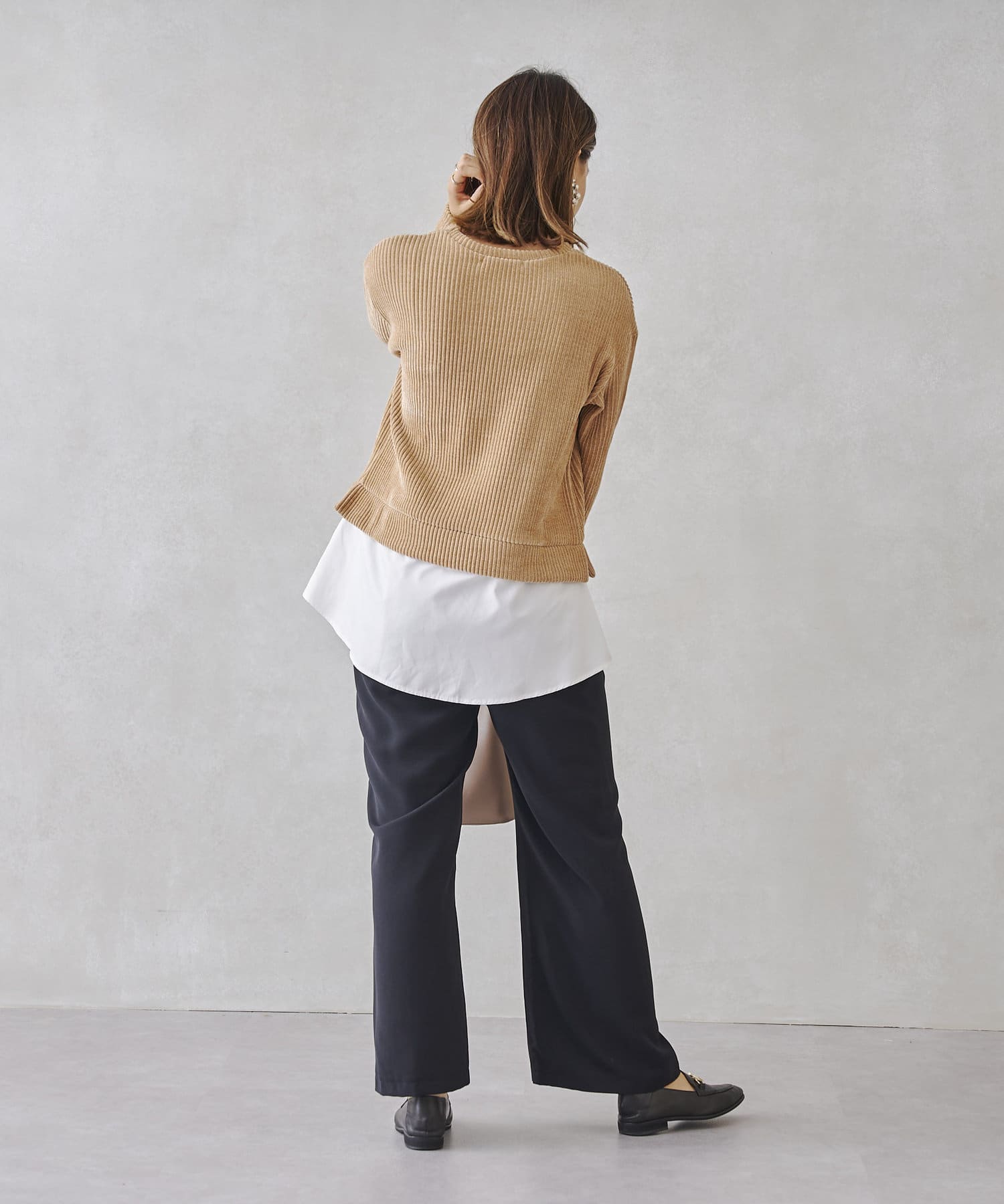 ・細見シルエットなのでレイヤードスタイルもおすすめです