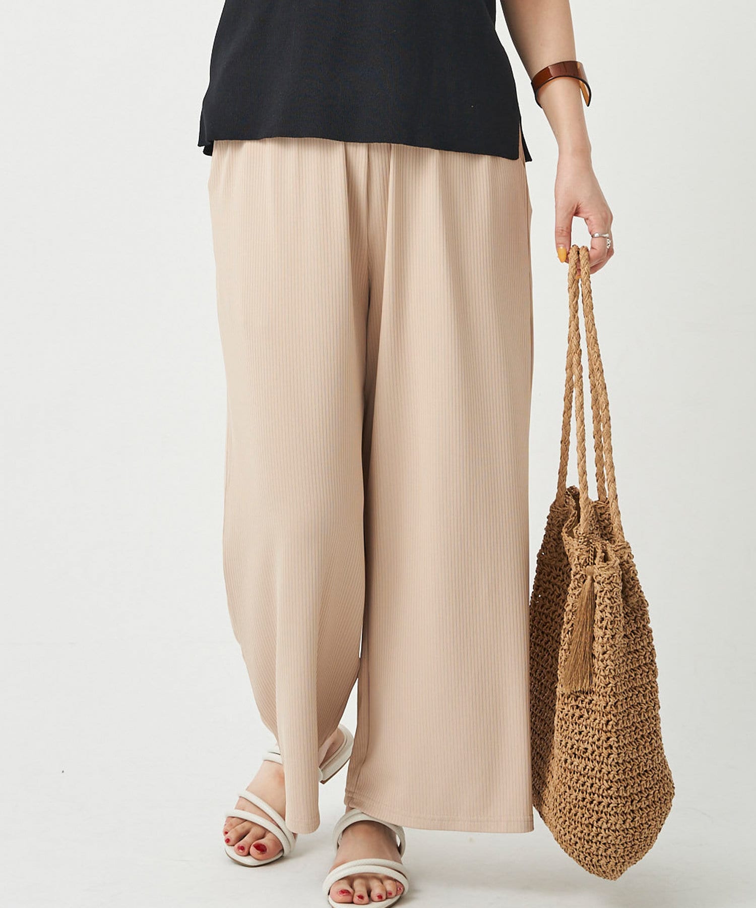 細いリブが楽に履けるのに細見え効果抜群!! お家時間やリモートワークに◎