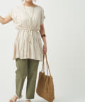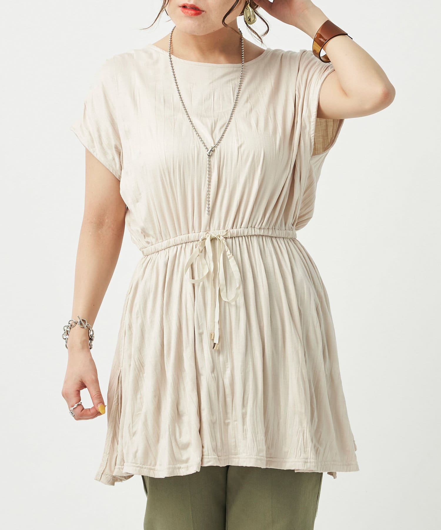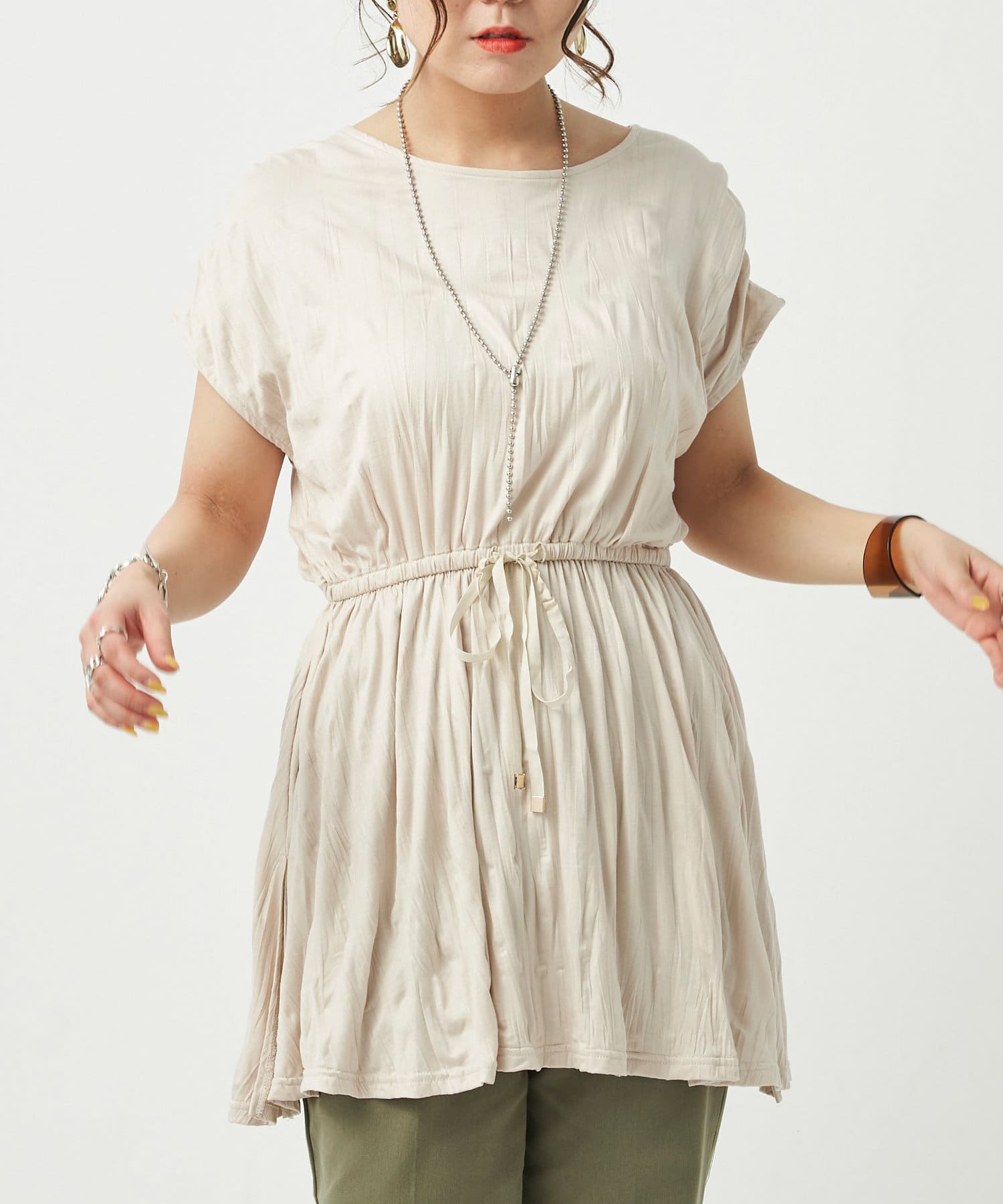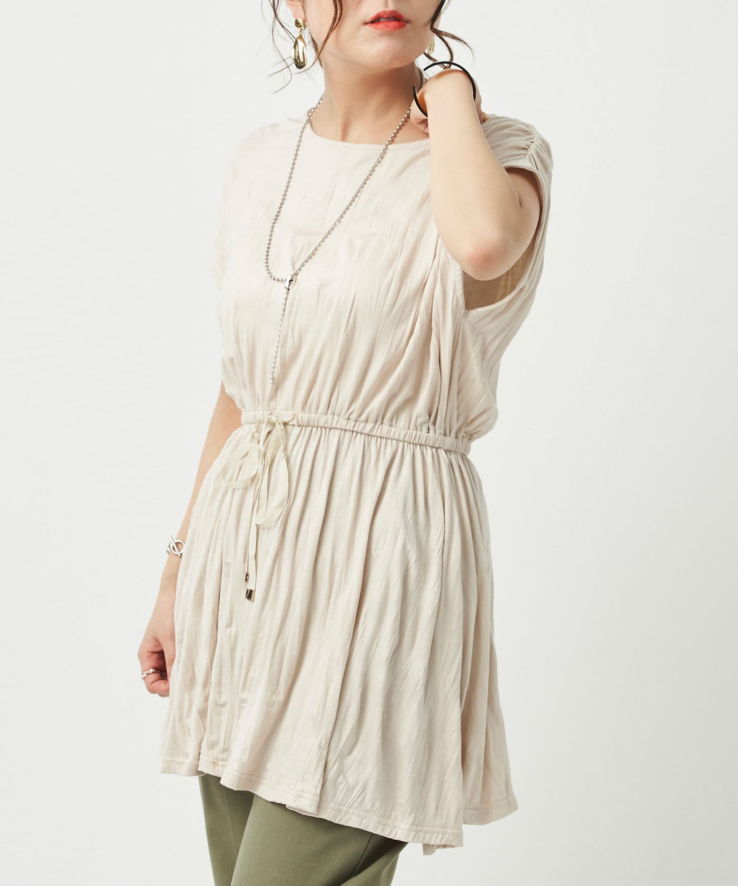 ワッシャー素材のリラックス感溢れるチュニック ドロストの紐が入っていることでメリハリ感も◎