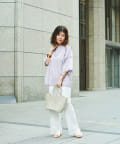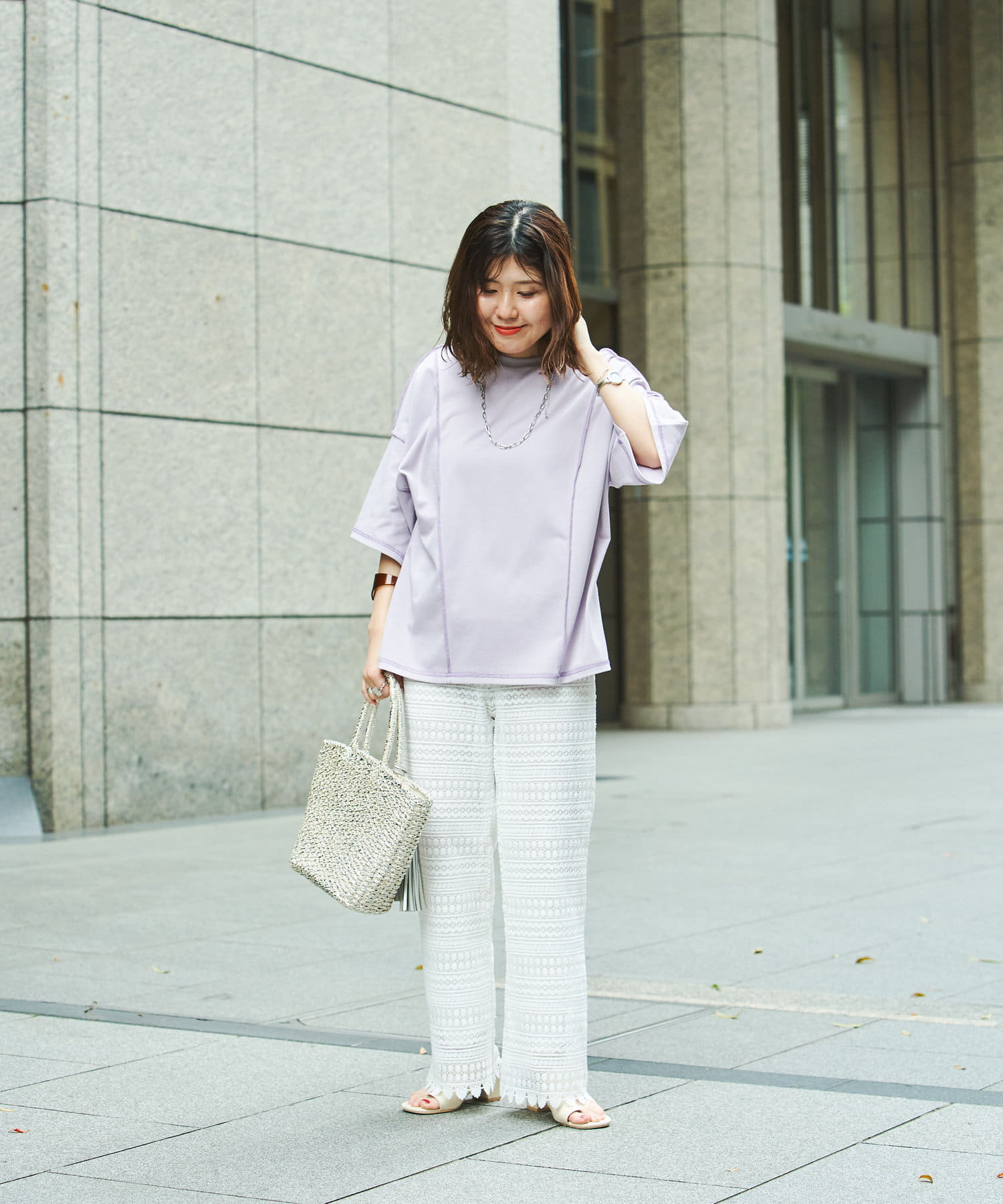 ・5分袖のTシャツでゆったりと着れるのでリラックス感あり印象になります