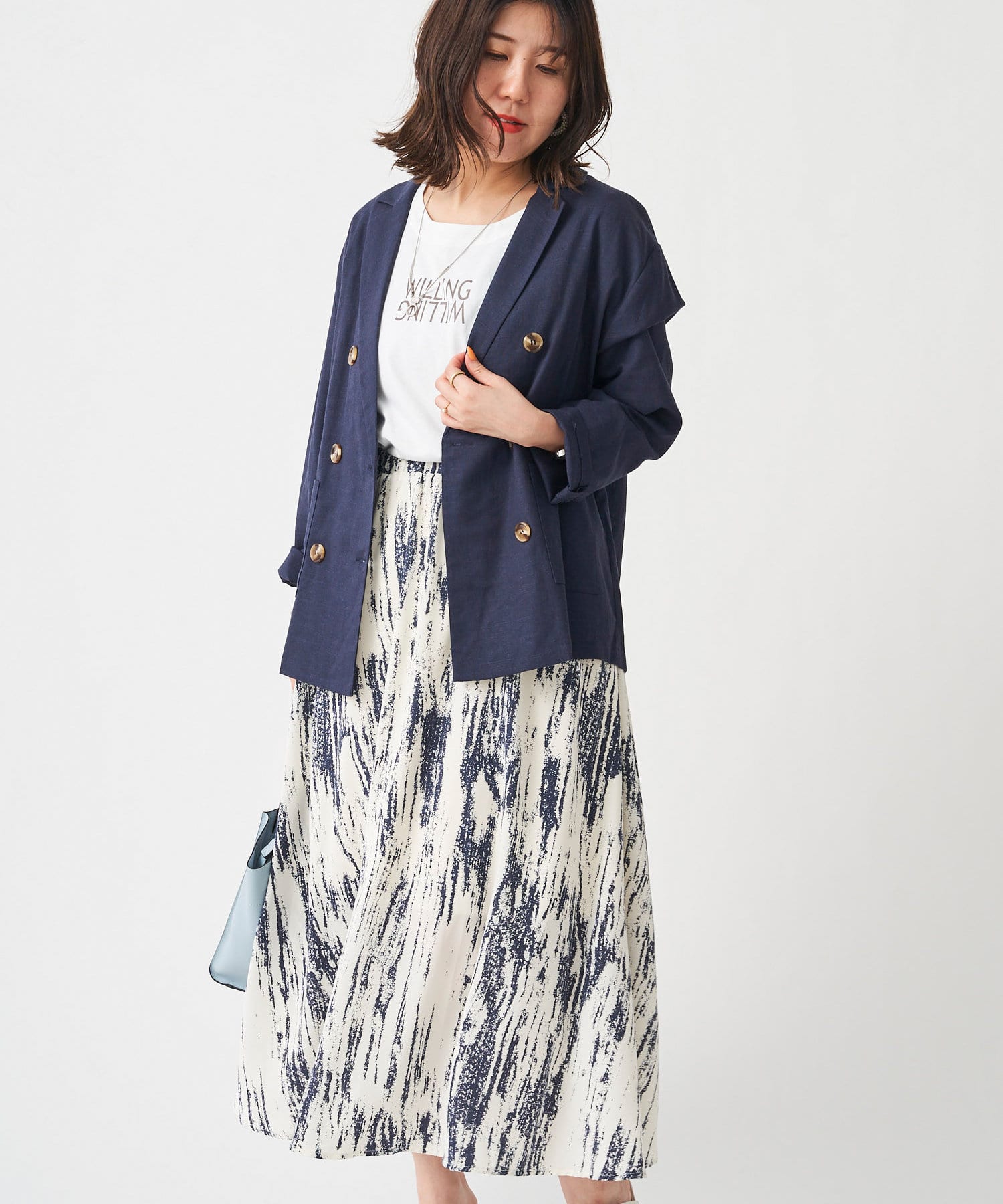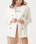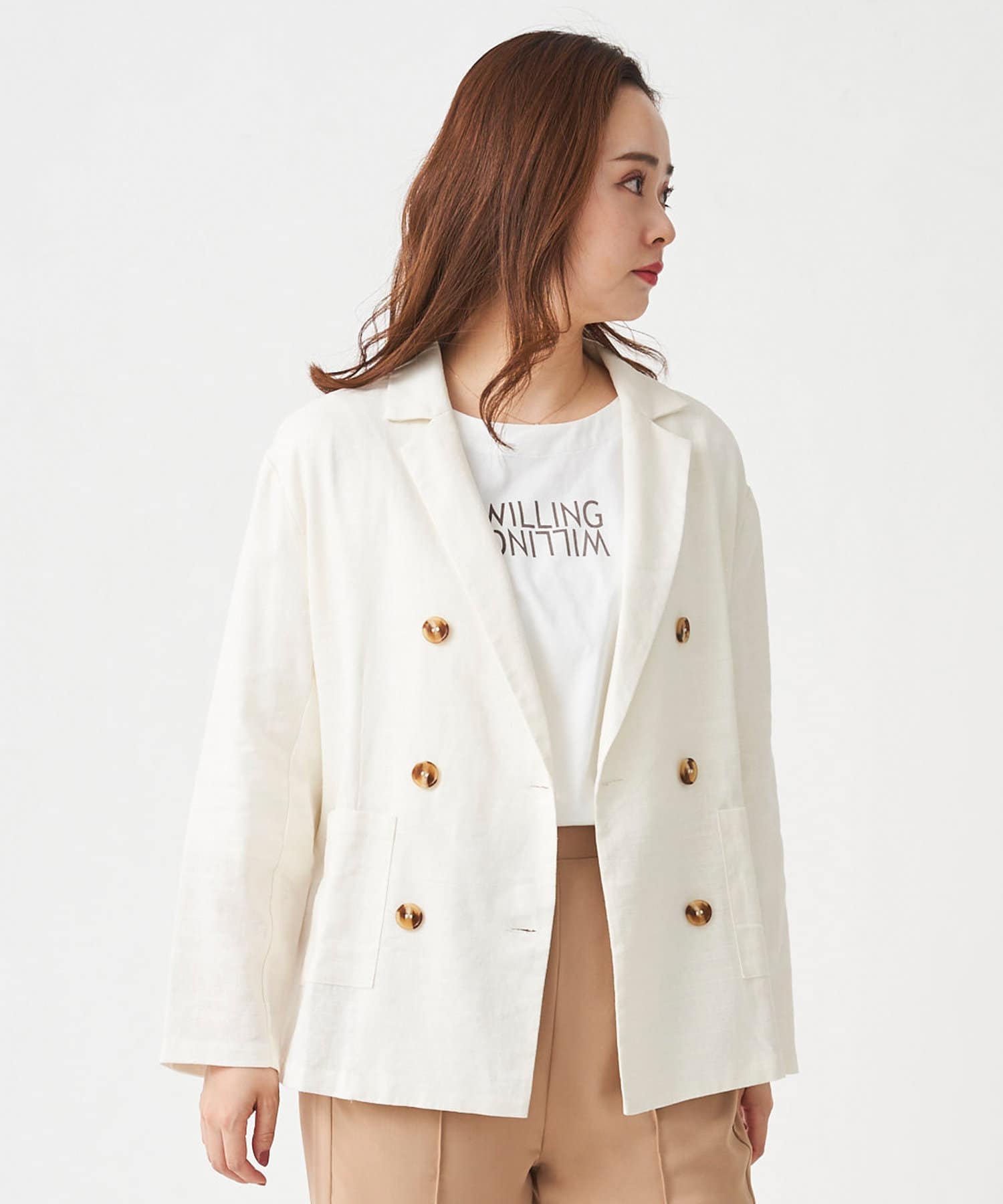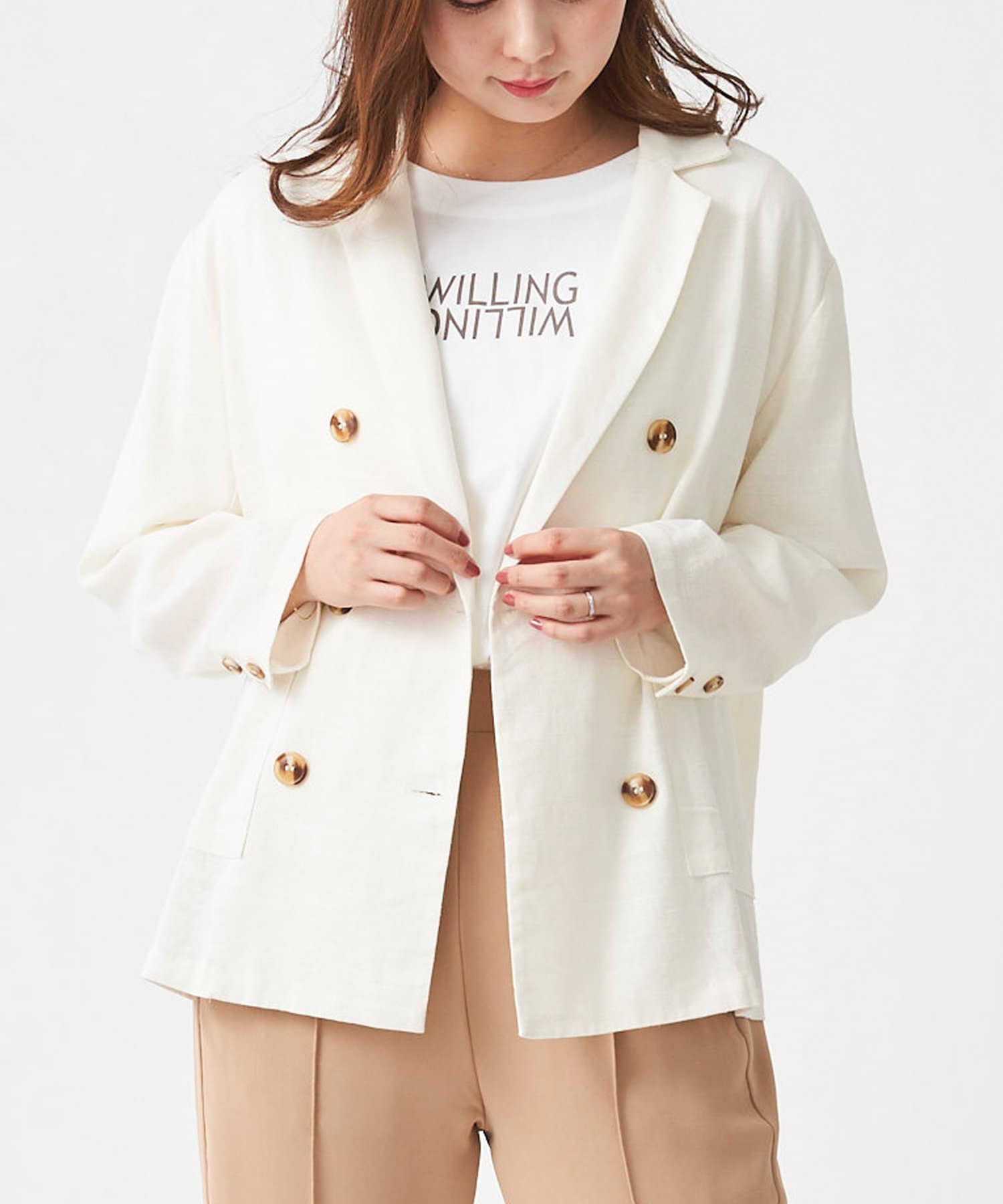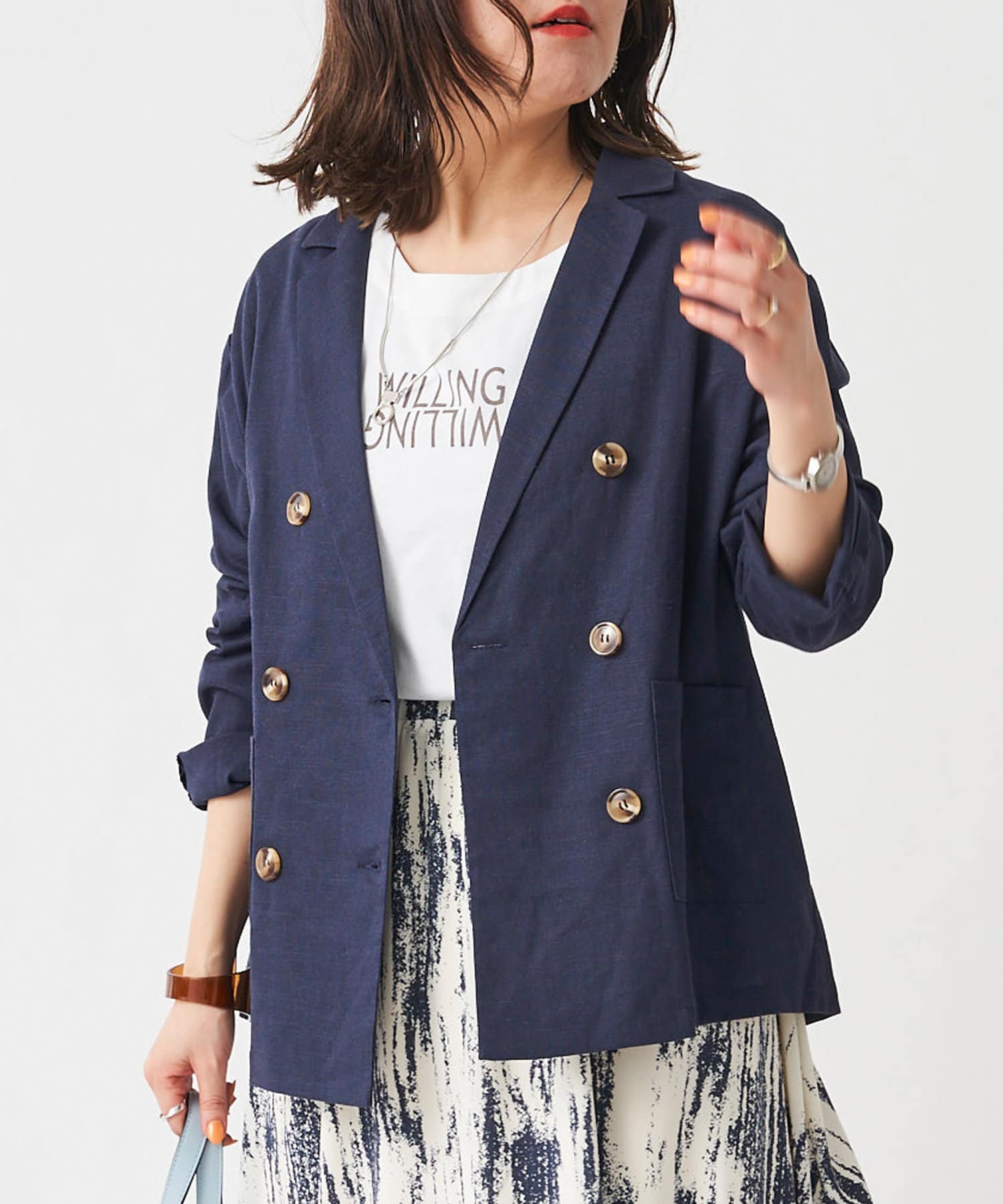 麻レーヨンの柔らかい素材。ゆったりしたサイズ感が普段使いもしやすいテーラードジャケット