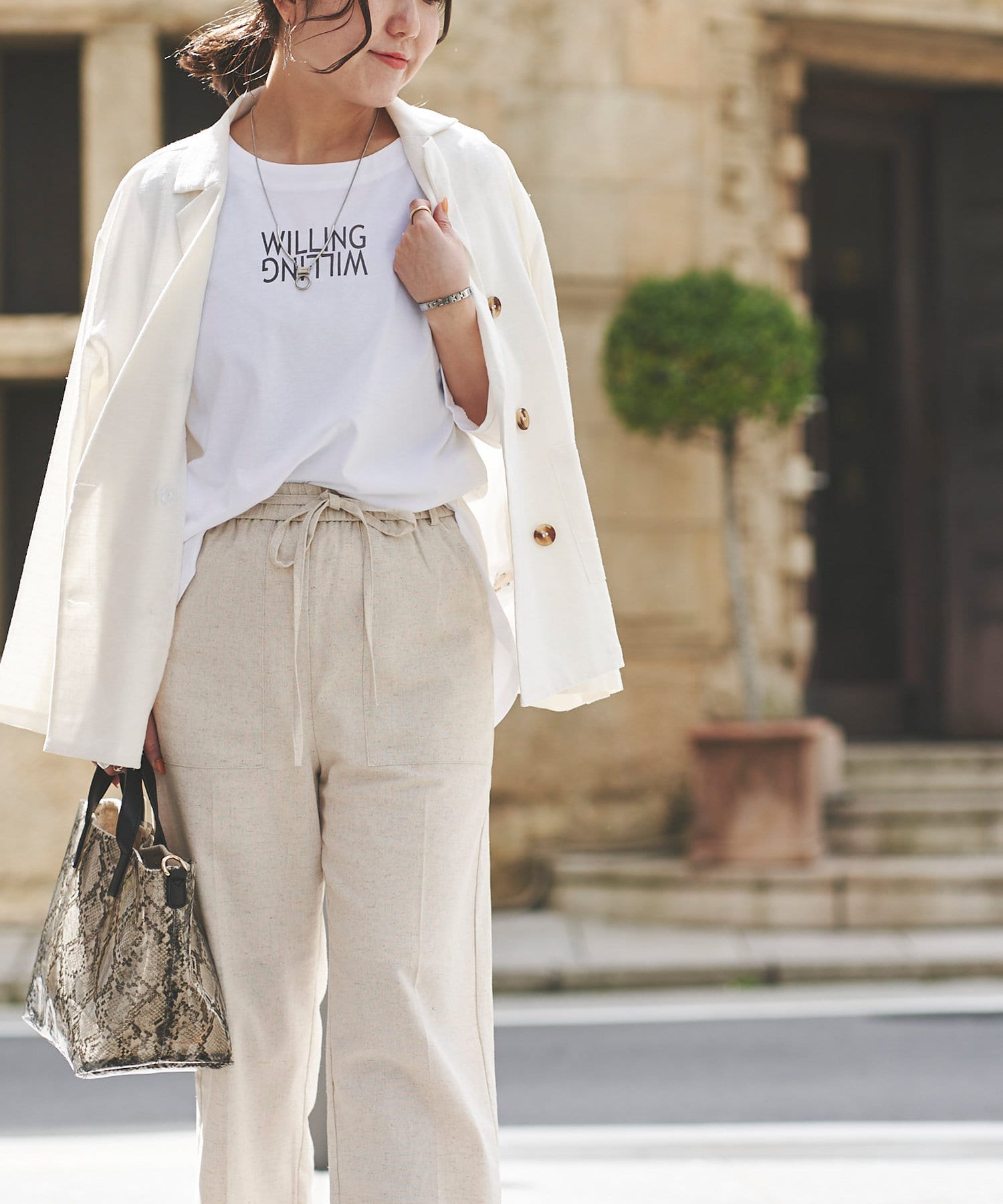 テーパードパンツやストレートワイドパンツが◎ 麻素材で合わせてセットアップ風に着ても