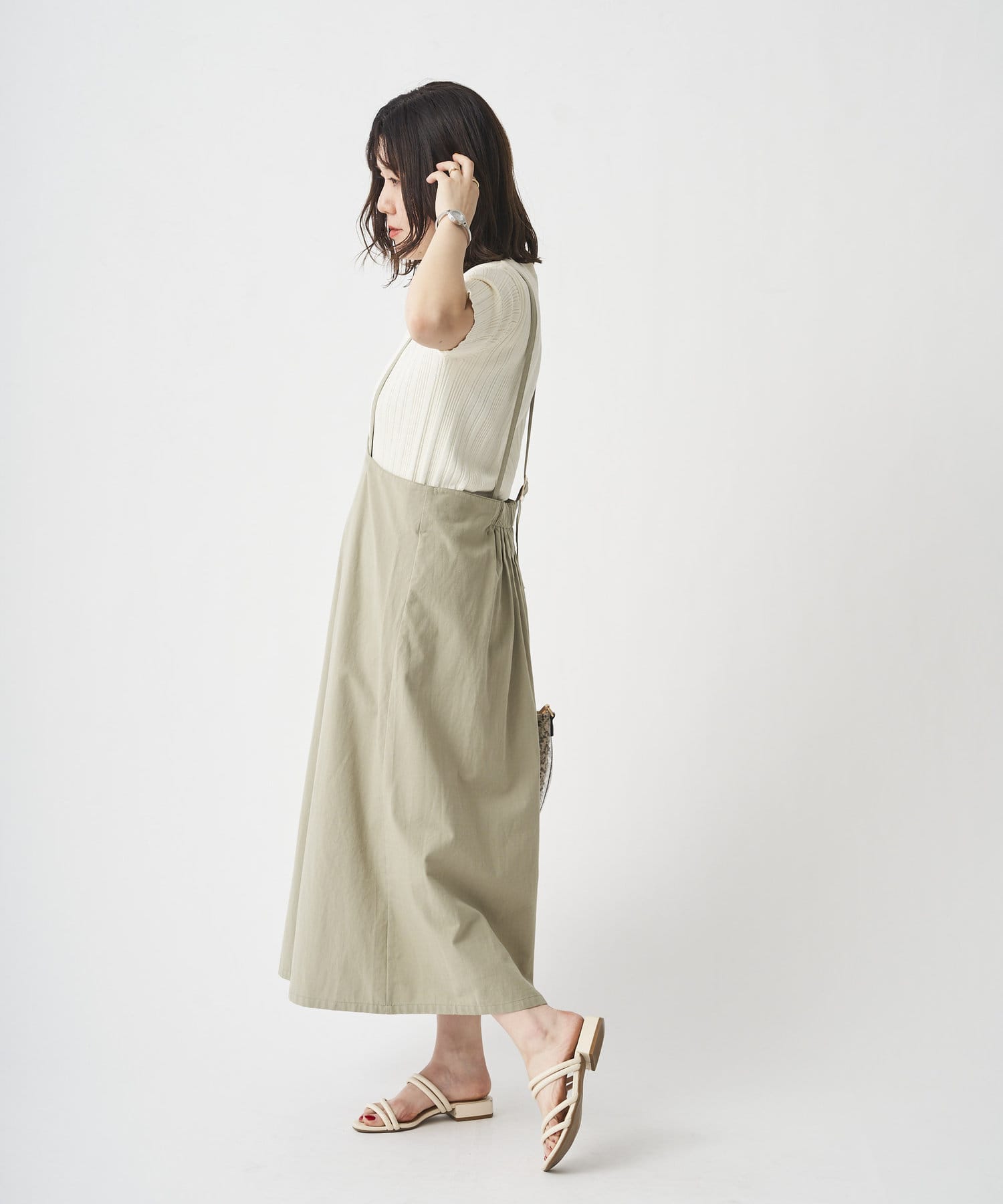 インナーはカジュアルなTシャツやサマーニットなどカジュアルなものからきれいめなものまで合わせて着て頂けます