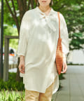 ゆったりしたサイズ感と、ボウタイを前で結んで頂くと上品な印象に。
