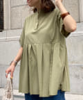 ・プリーツの切替があしらわれていて着るだけで華やかさのでるブラウスです