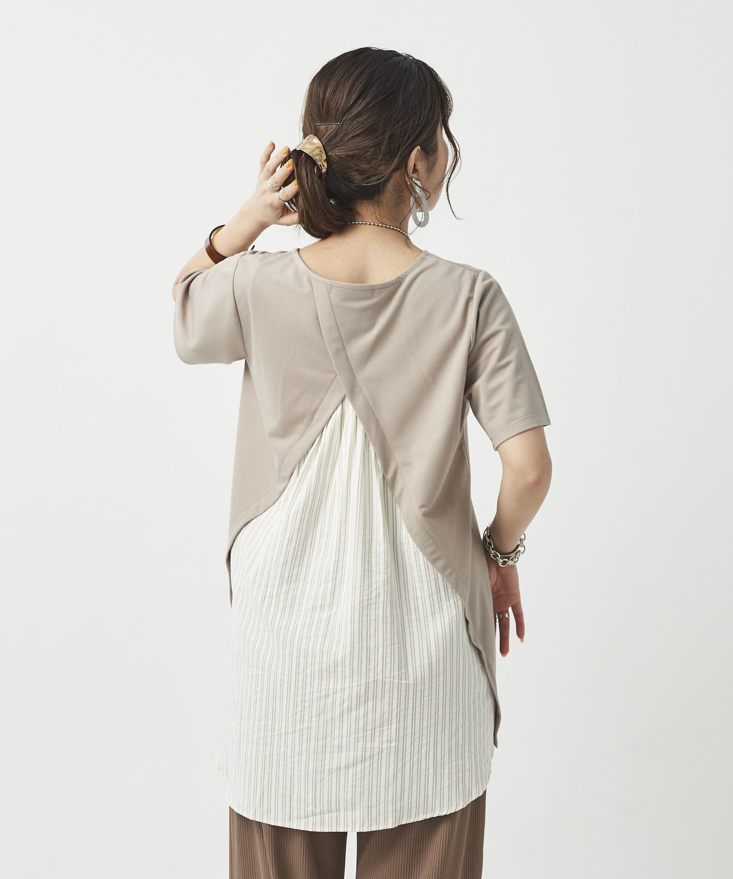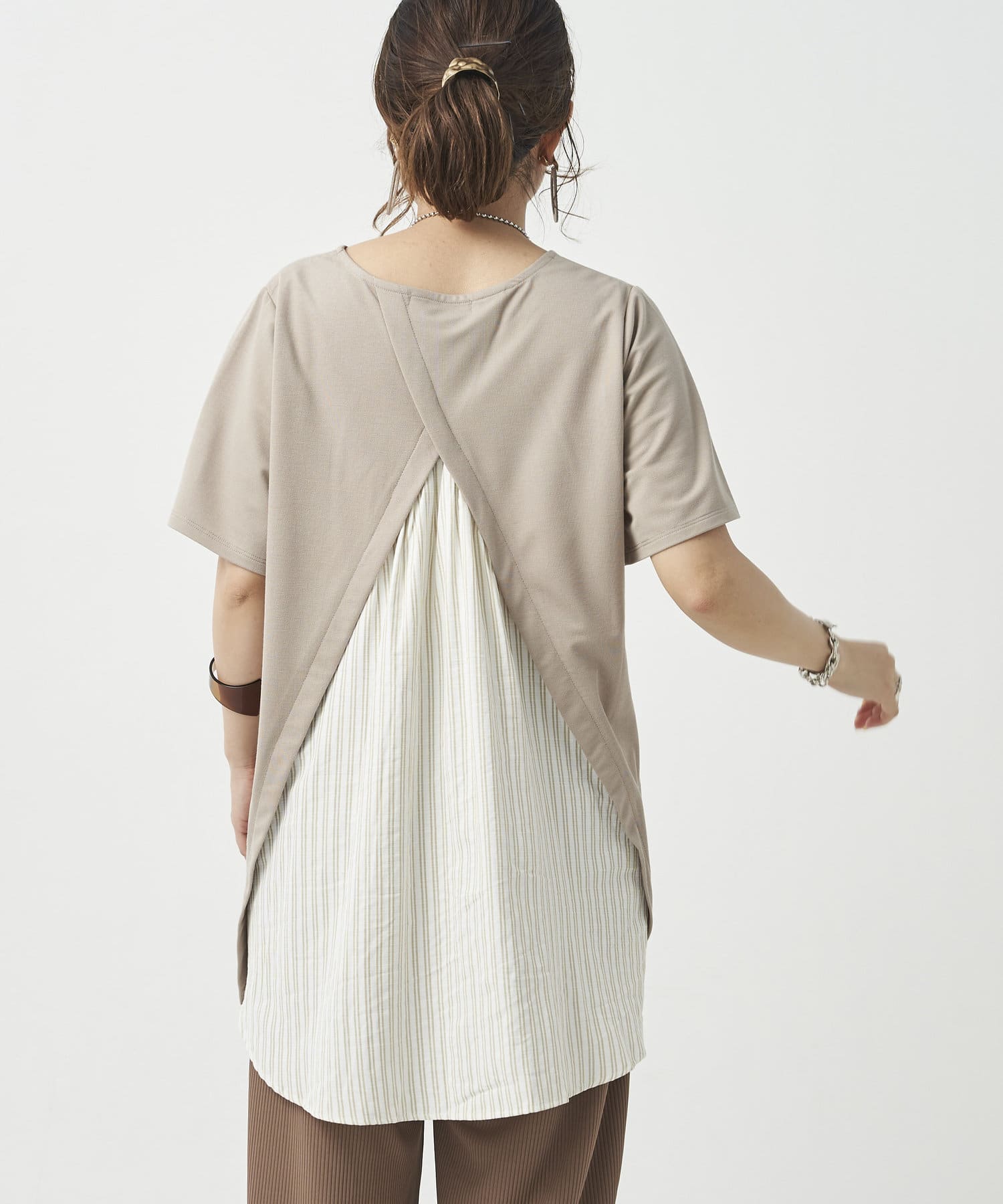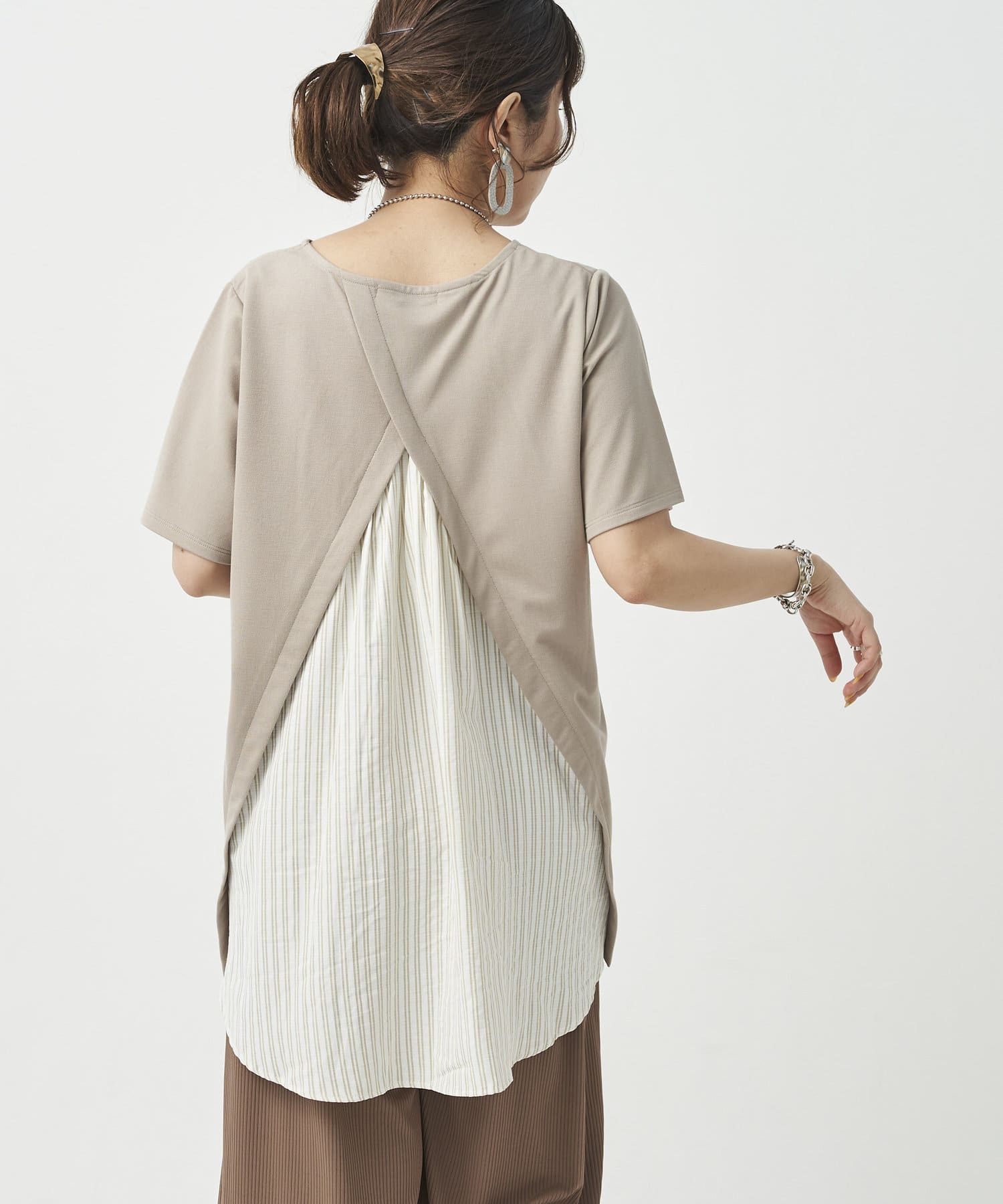 TOP > Chez toi > レディース > トップス > Tシャツ/カットソー > バックストライプフレア切替プルオーバー