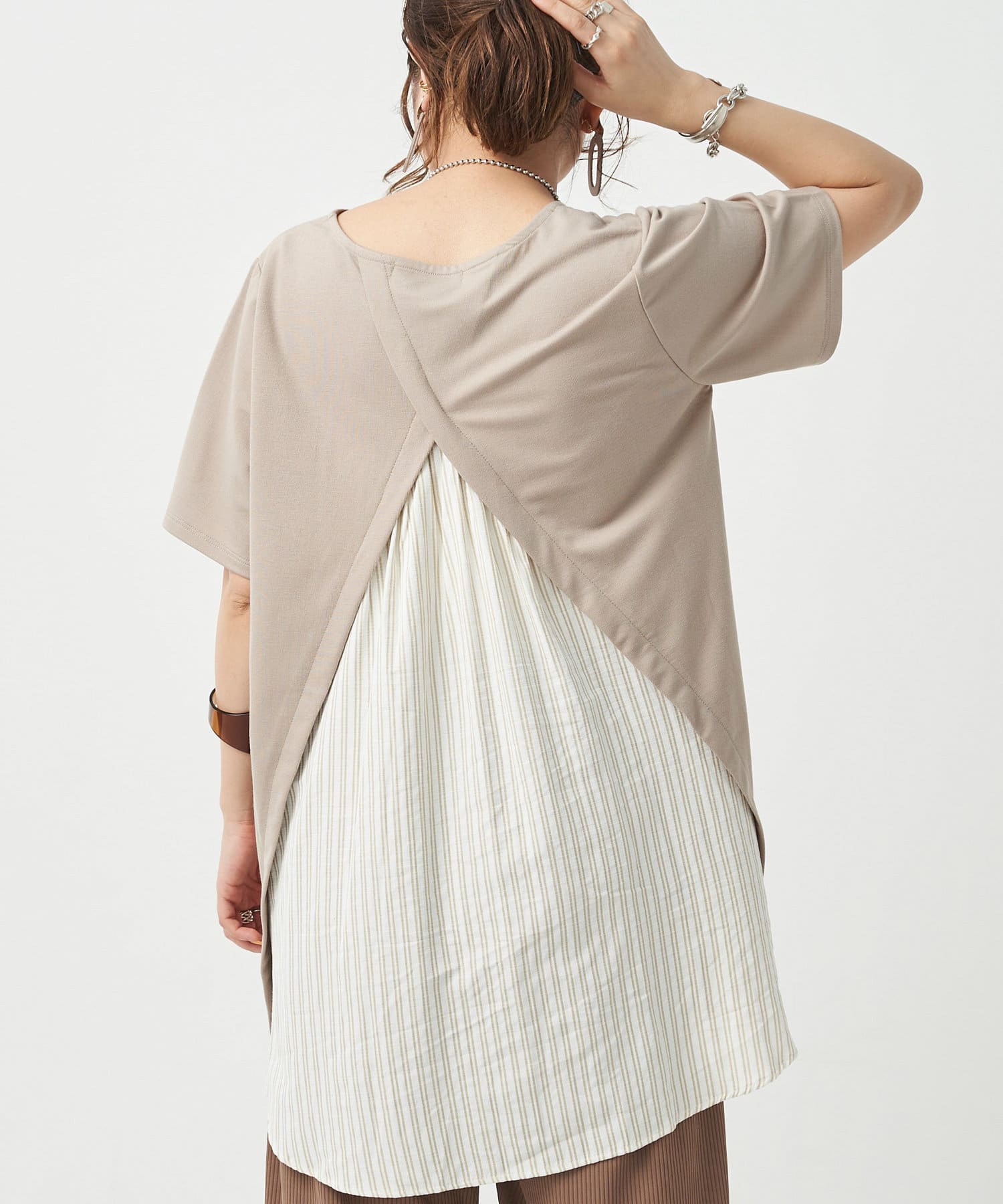 • Chez toi(シェトワ) バックストライプフレア切替プルオーバー
