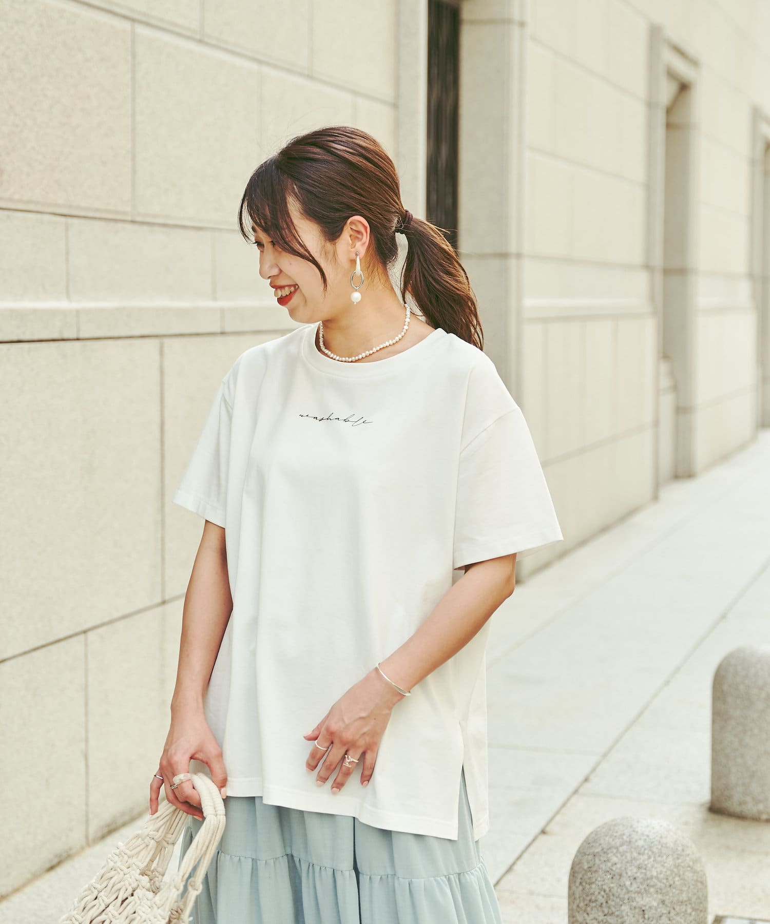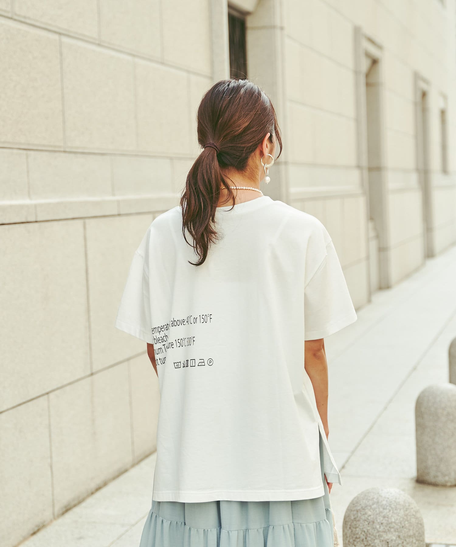 care label をプリントにしたオトナカジュアルに遊び心をプラスした1着