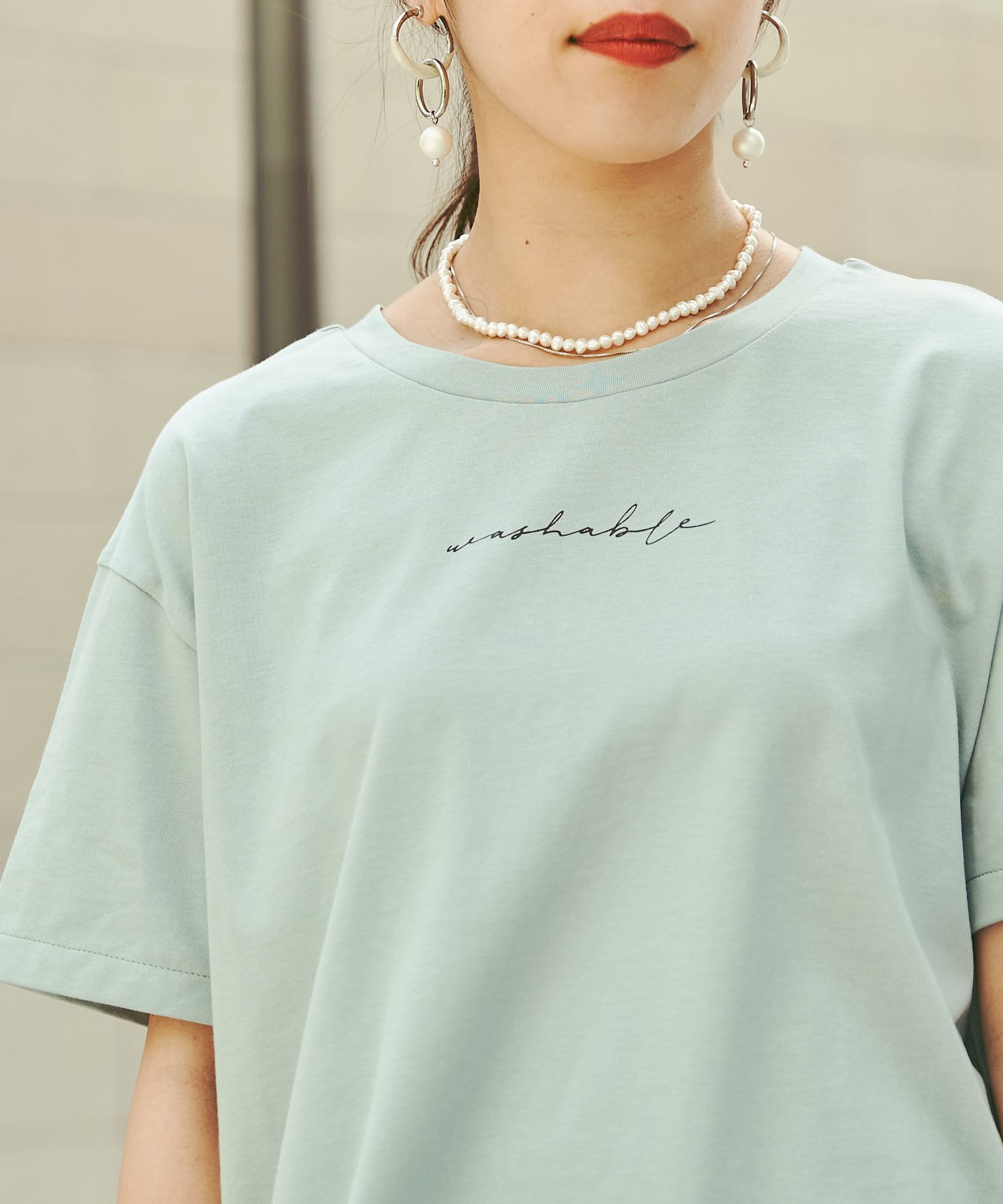 ・前はワンポイントロゴ、後ろはcare label で一枚でも雰囲気がでます。