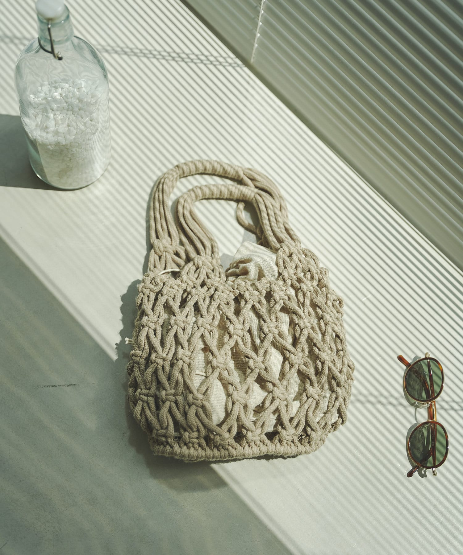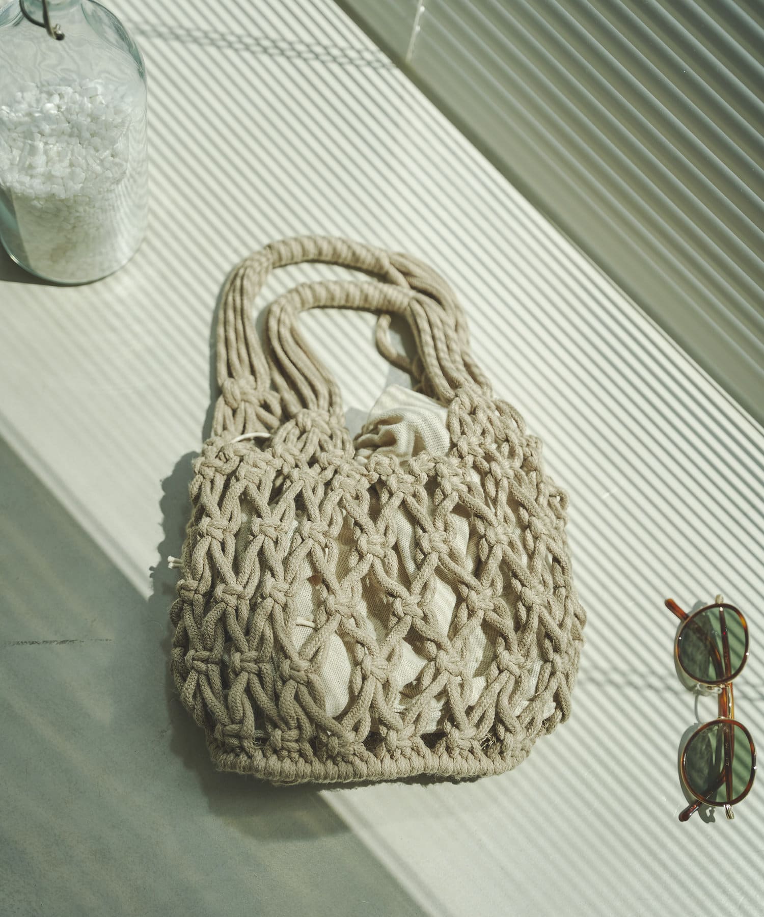 ロープメッシュ巾着付バッグ