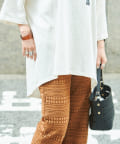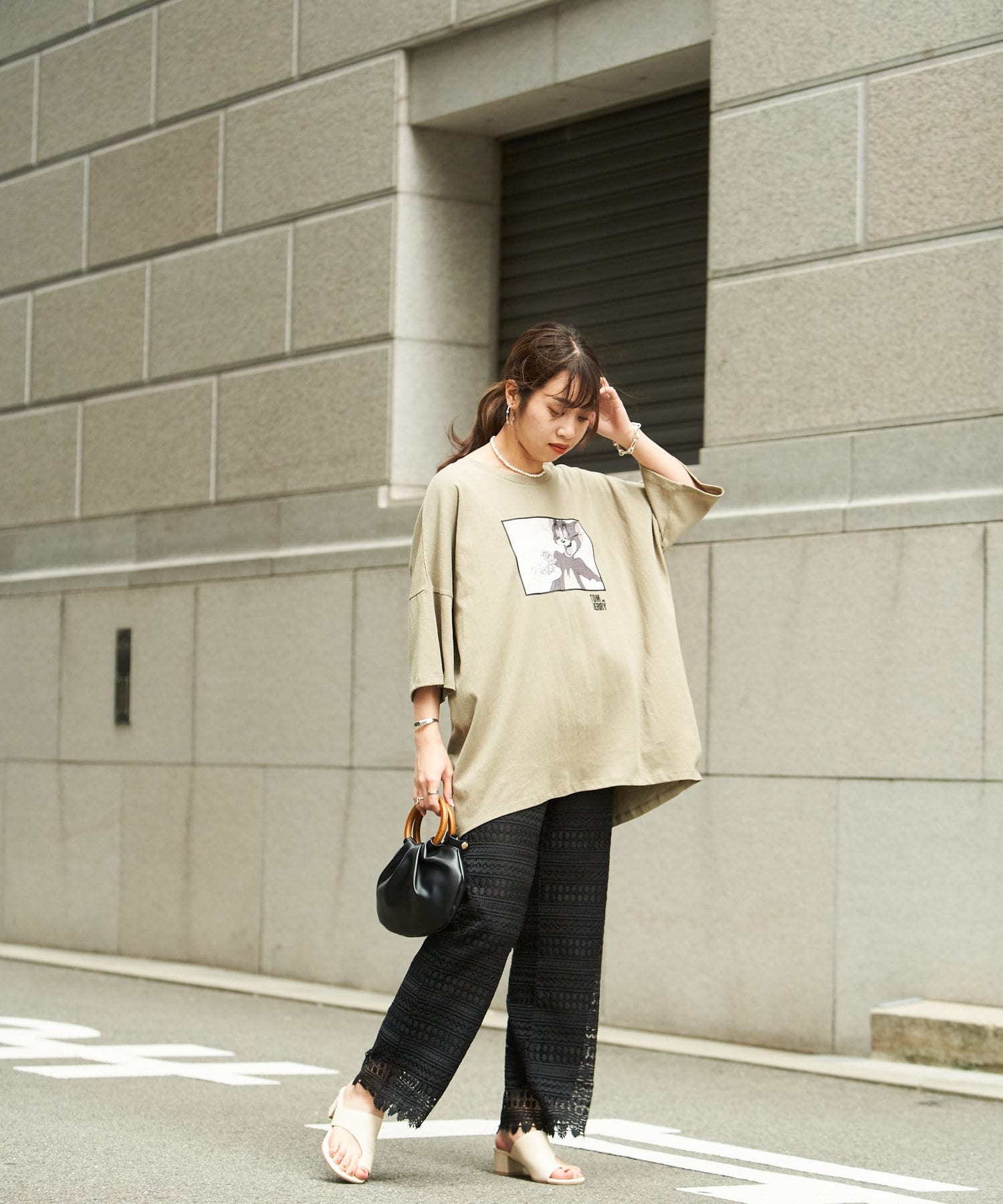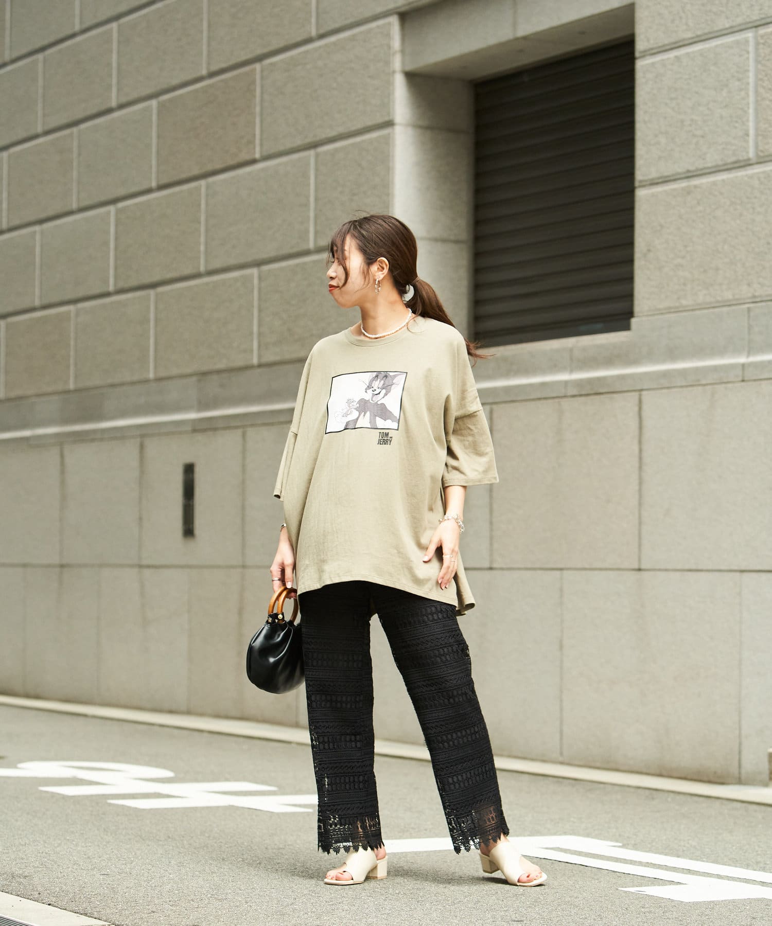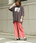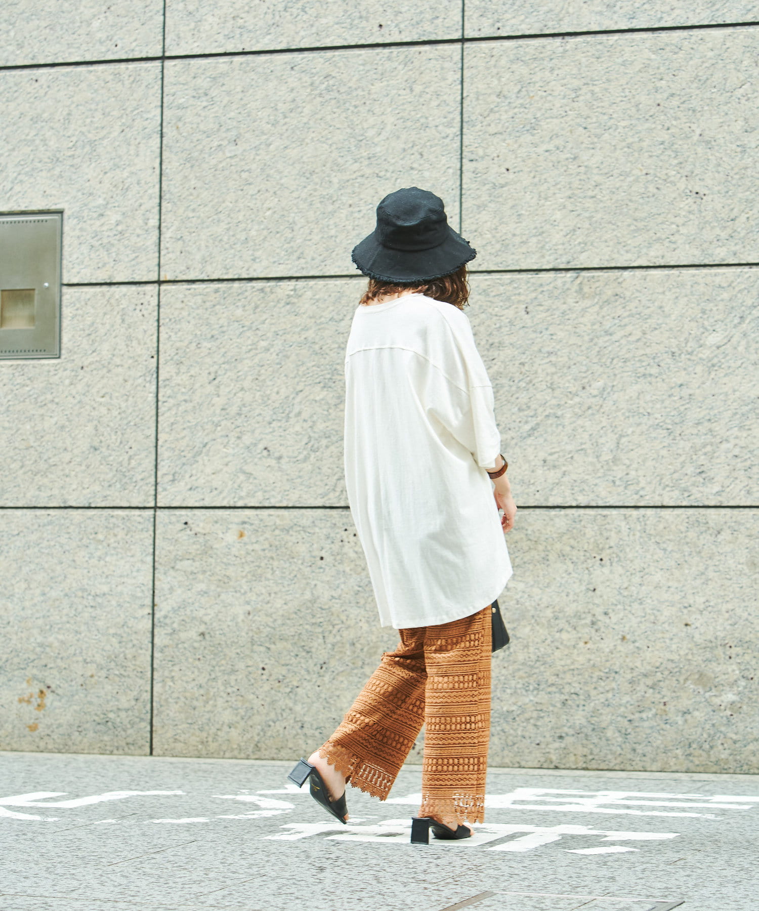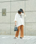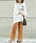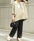 ゆったりシルエットなので、パンツもワイド過ぎないものが細見えしておすすめです。