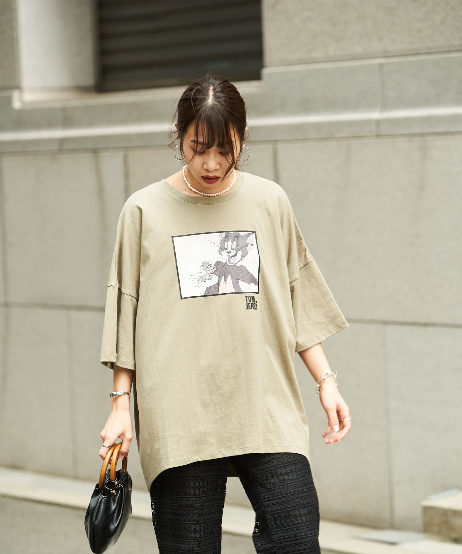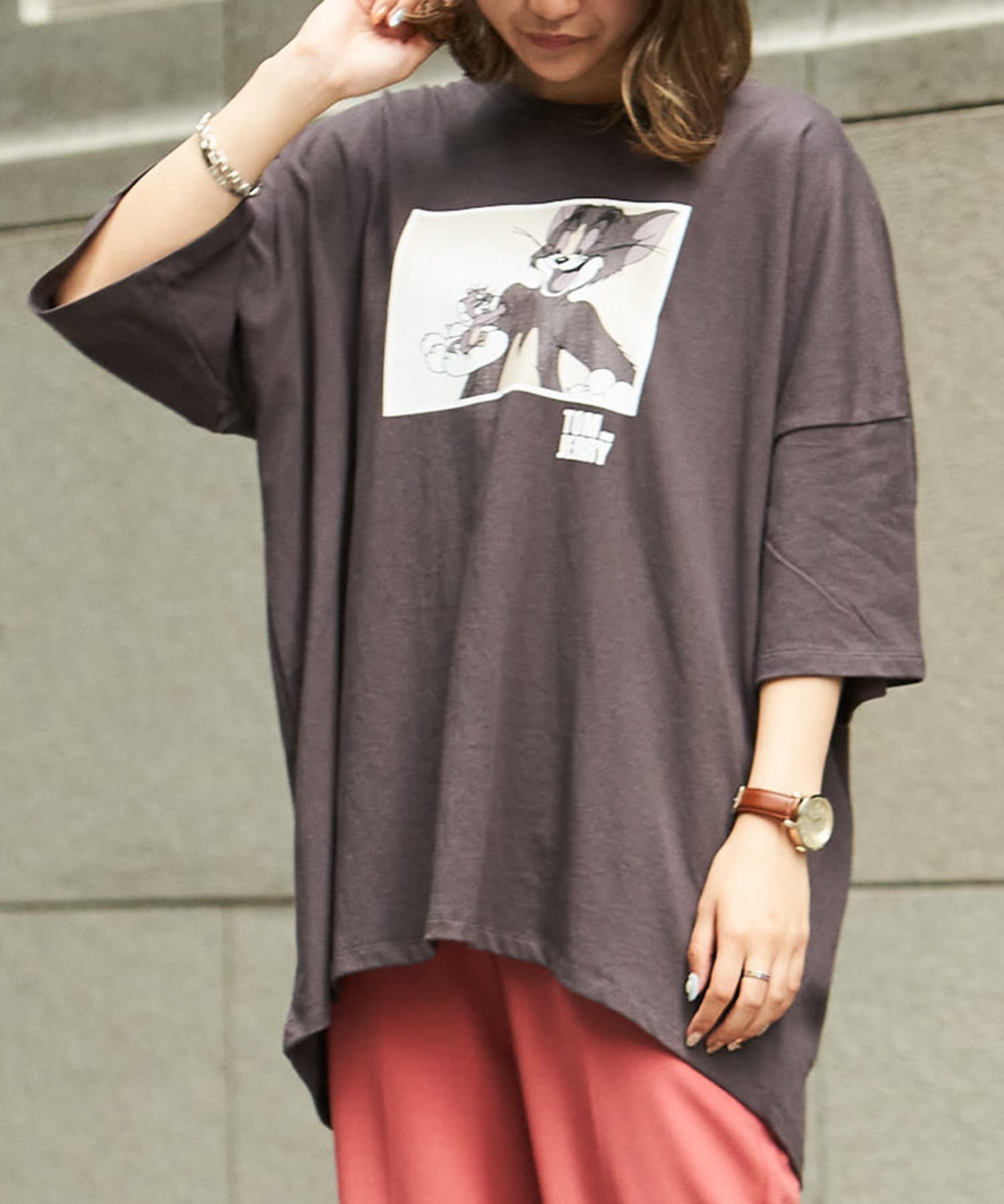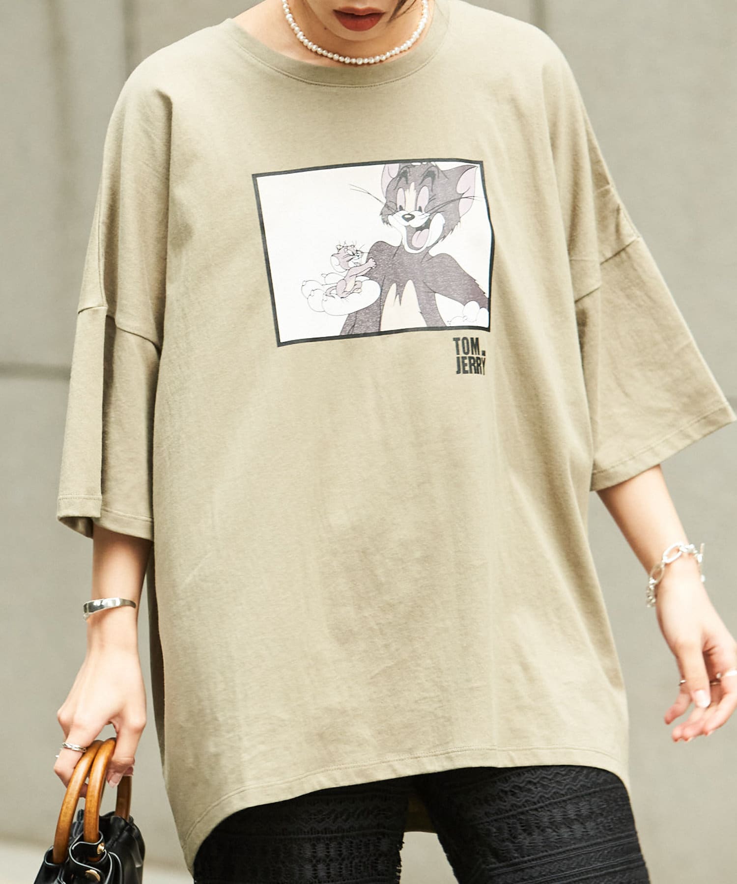 ・トム&ジェリーのキャラクターTシャツがカジュアルな印象で着用できます