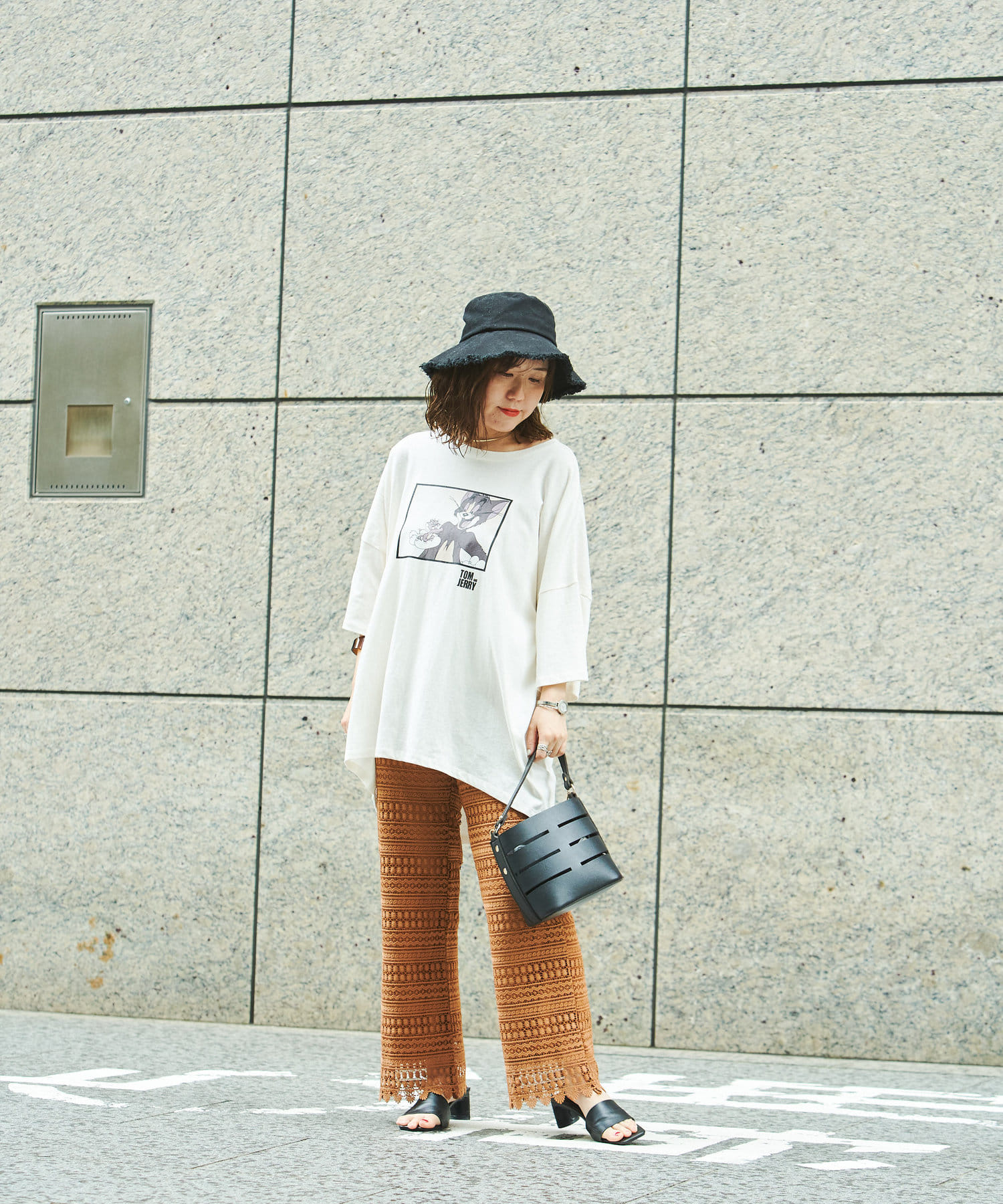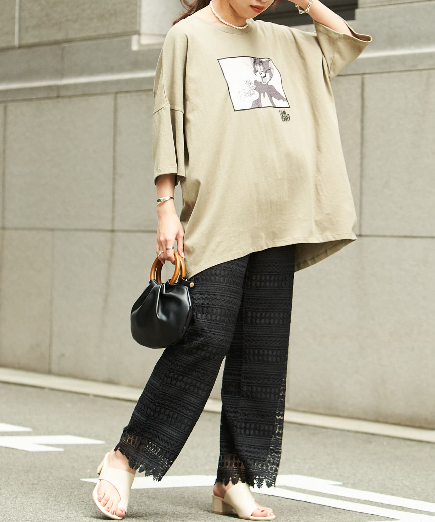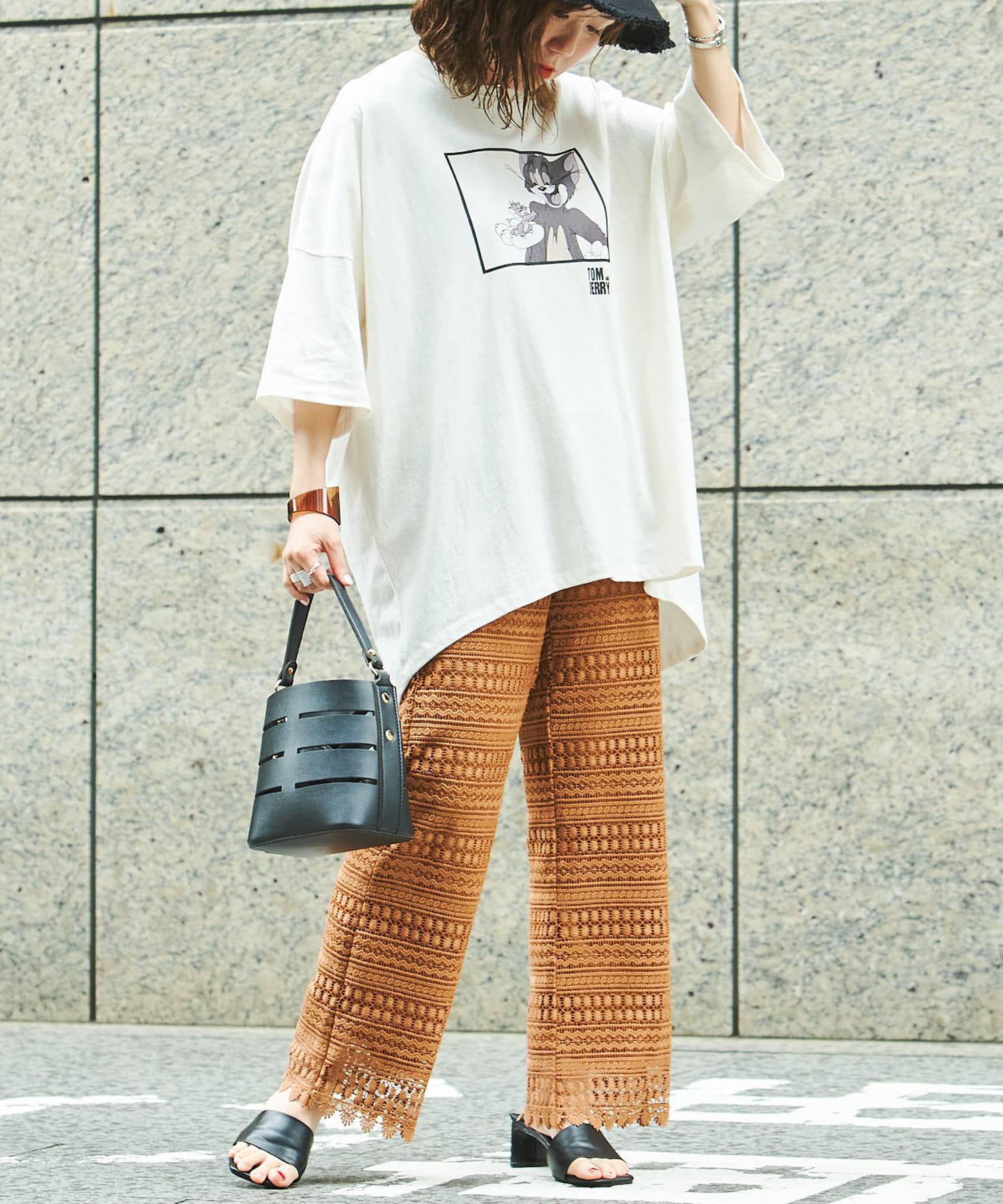 ・トム&ジェリーのキャラクターTシャツがカジュアルな印象で着用できます