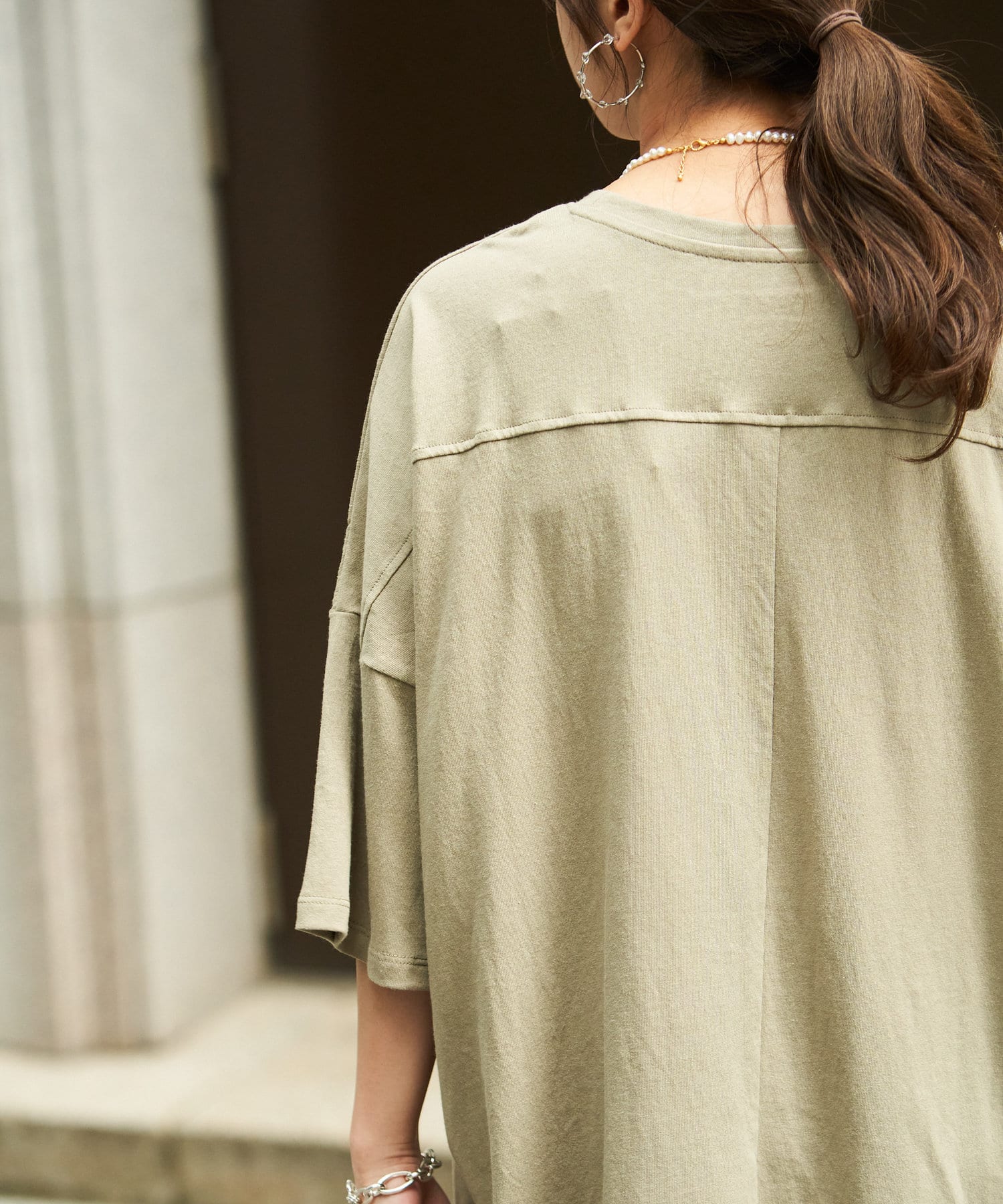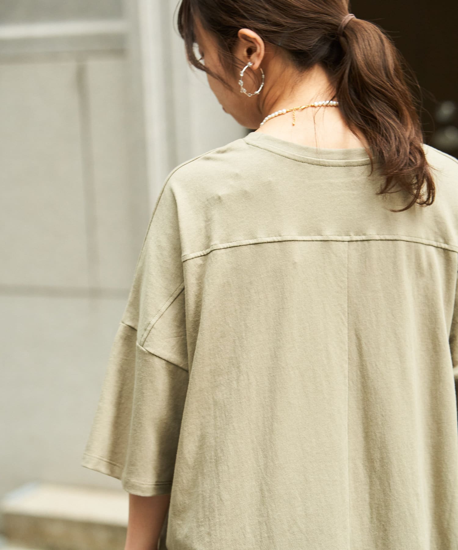 体のラインを拾わないビッグシルエット。ドロップショルダーが肩回りを華奢に見せてくれます
