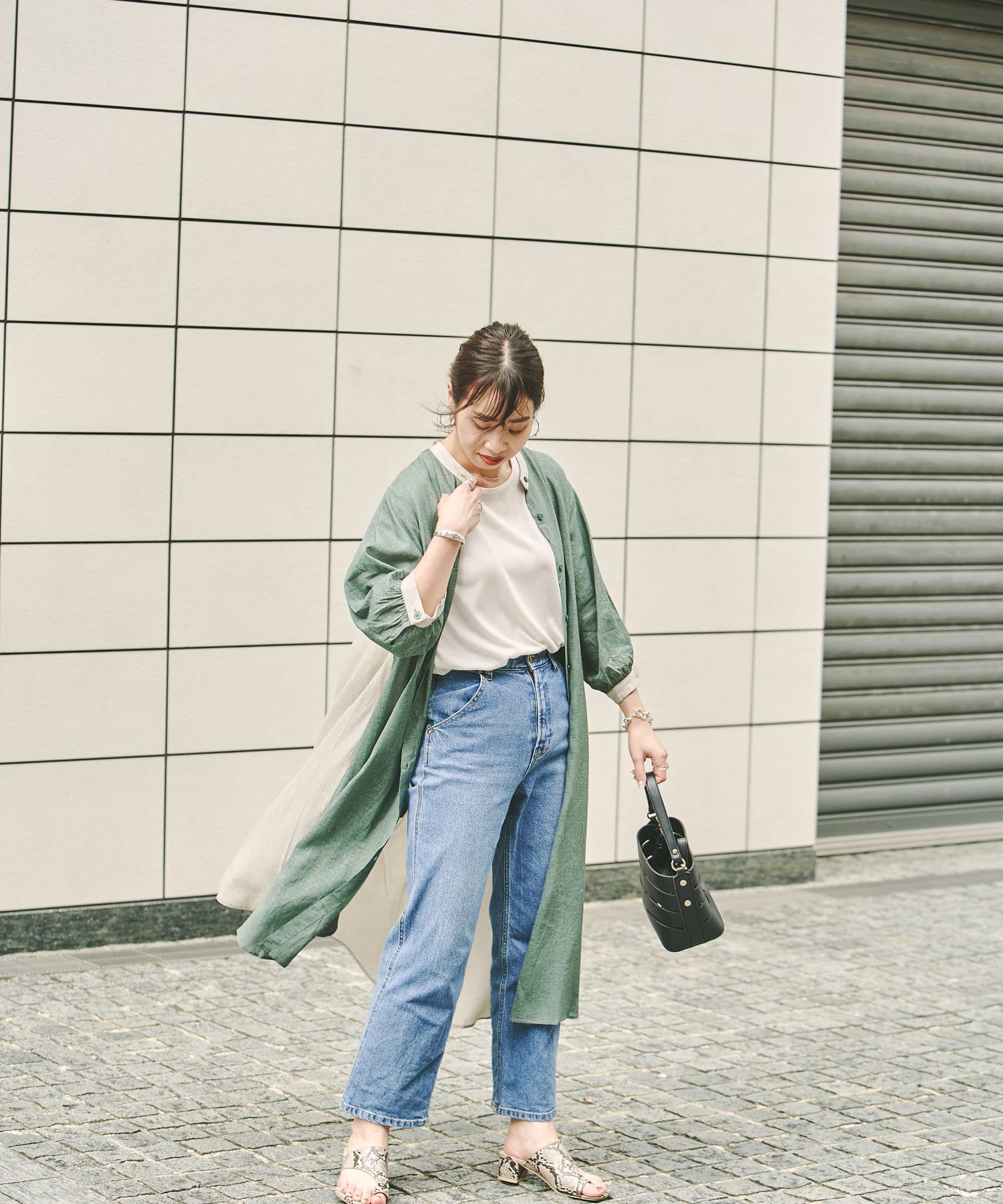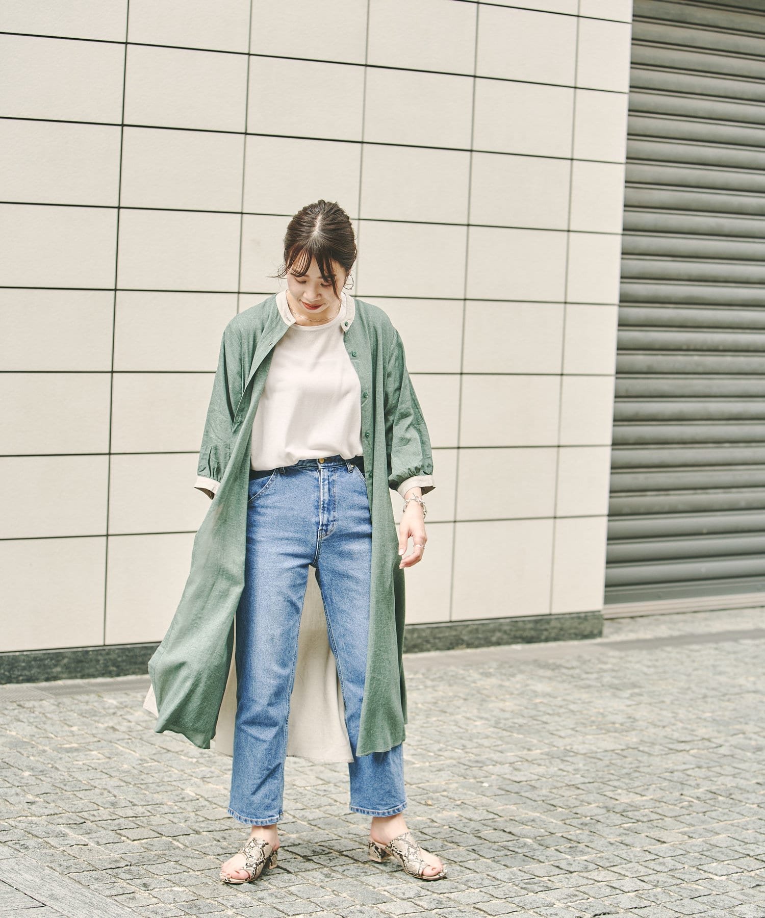 Tシャツの上に羽織って頂いてもよし。閉めてデニムや細身のボトムと合わせるのも
