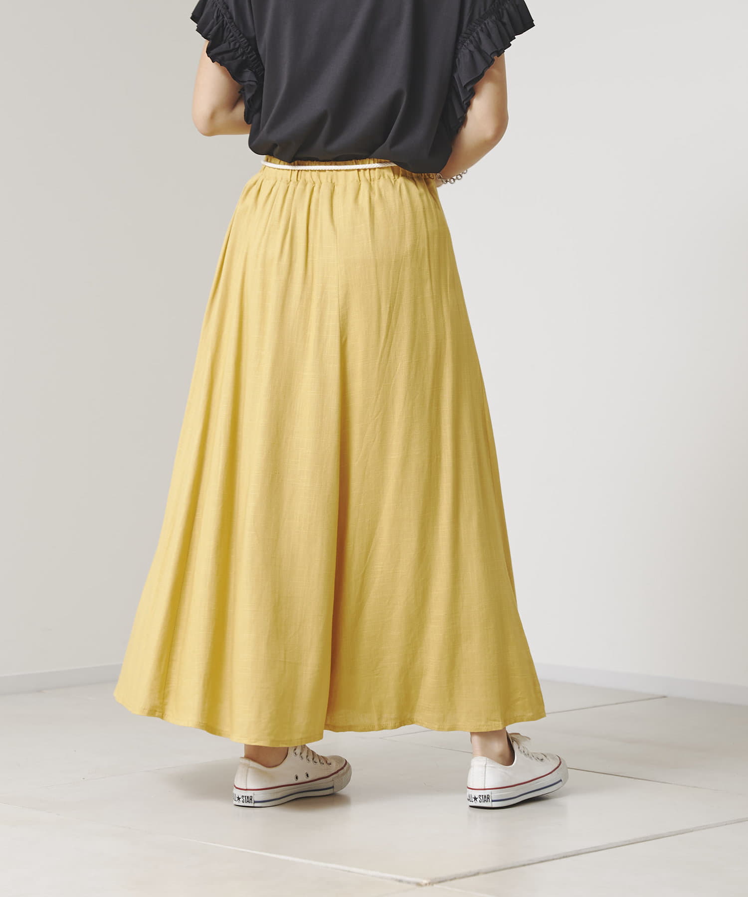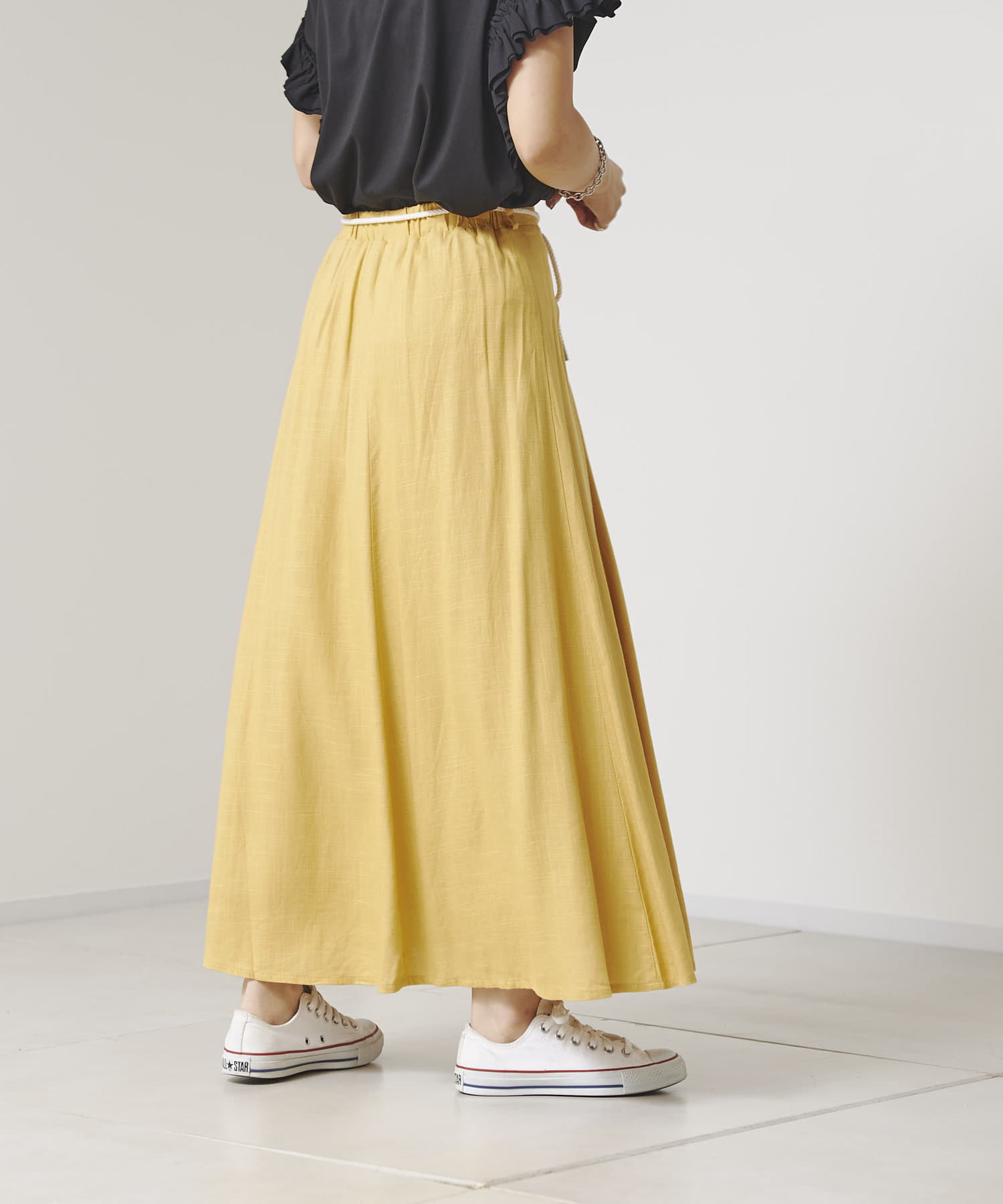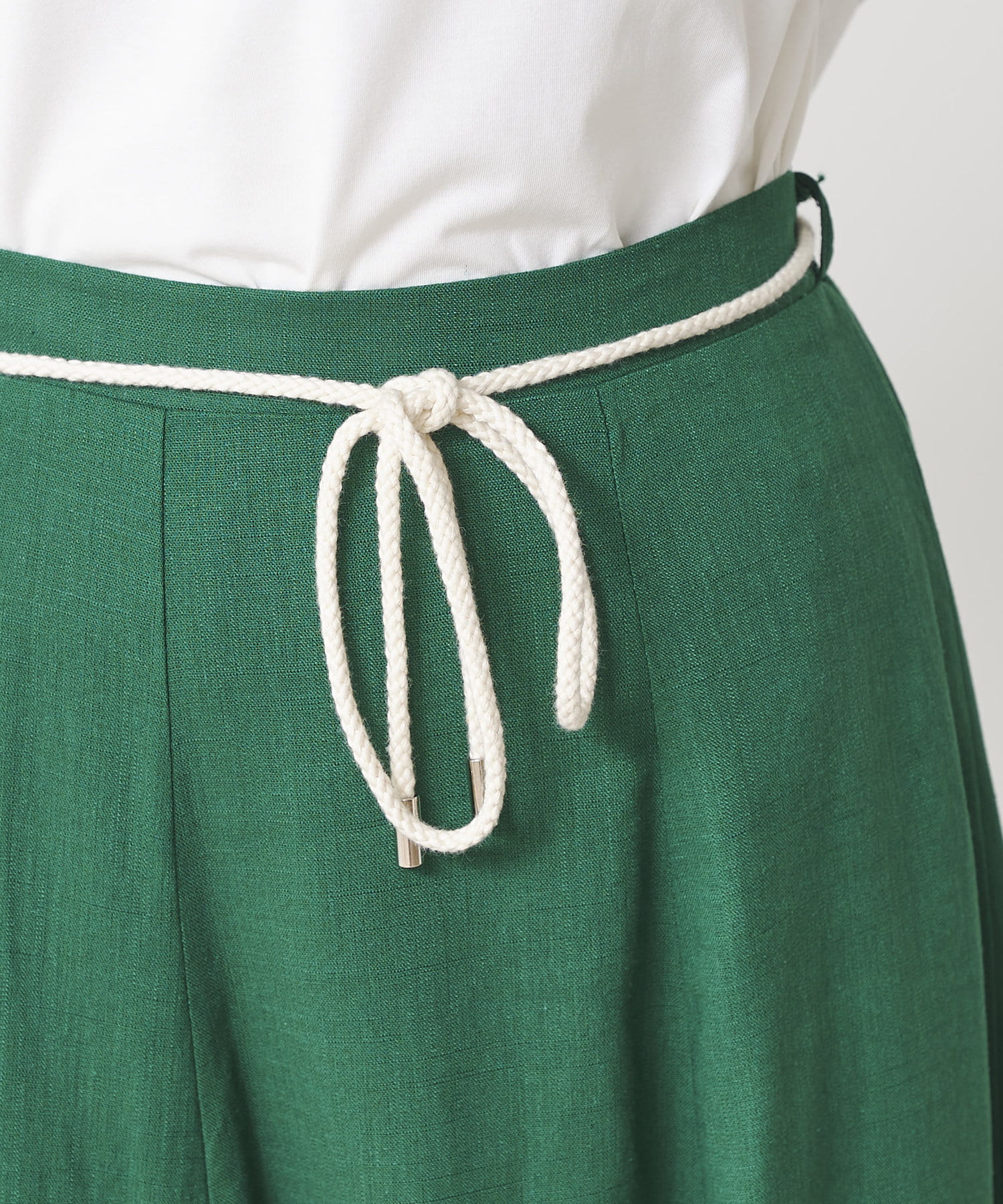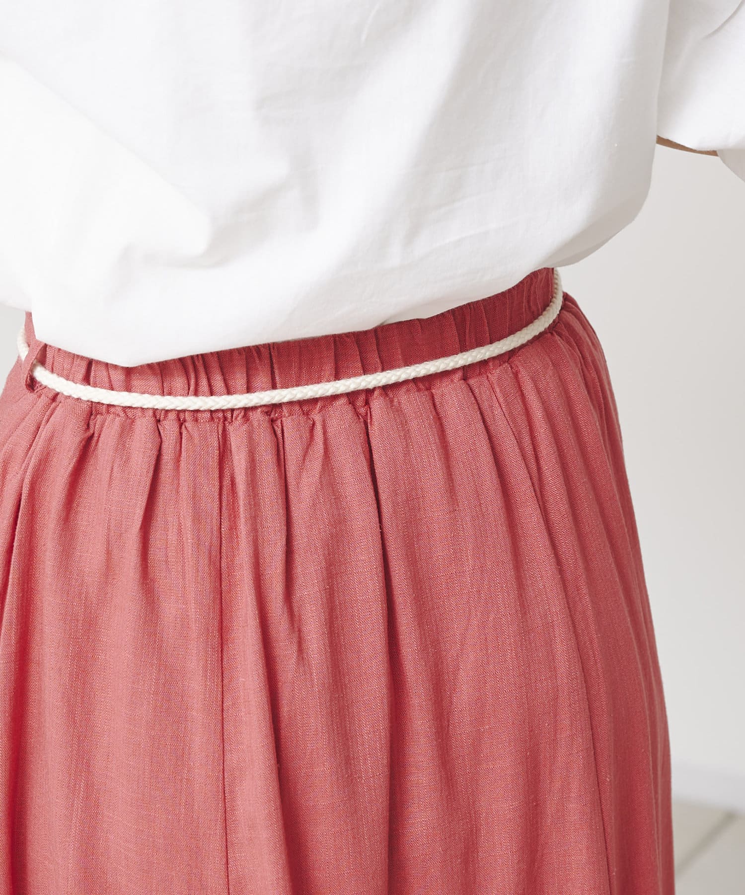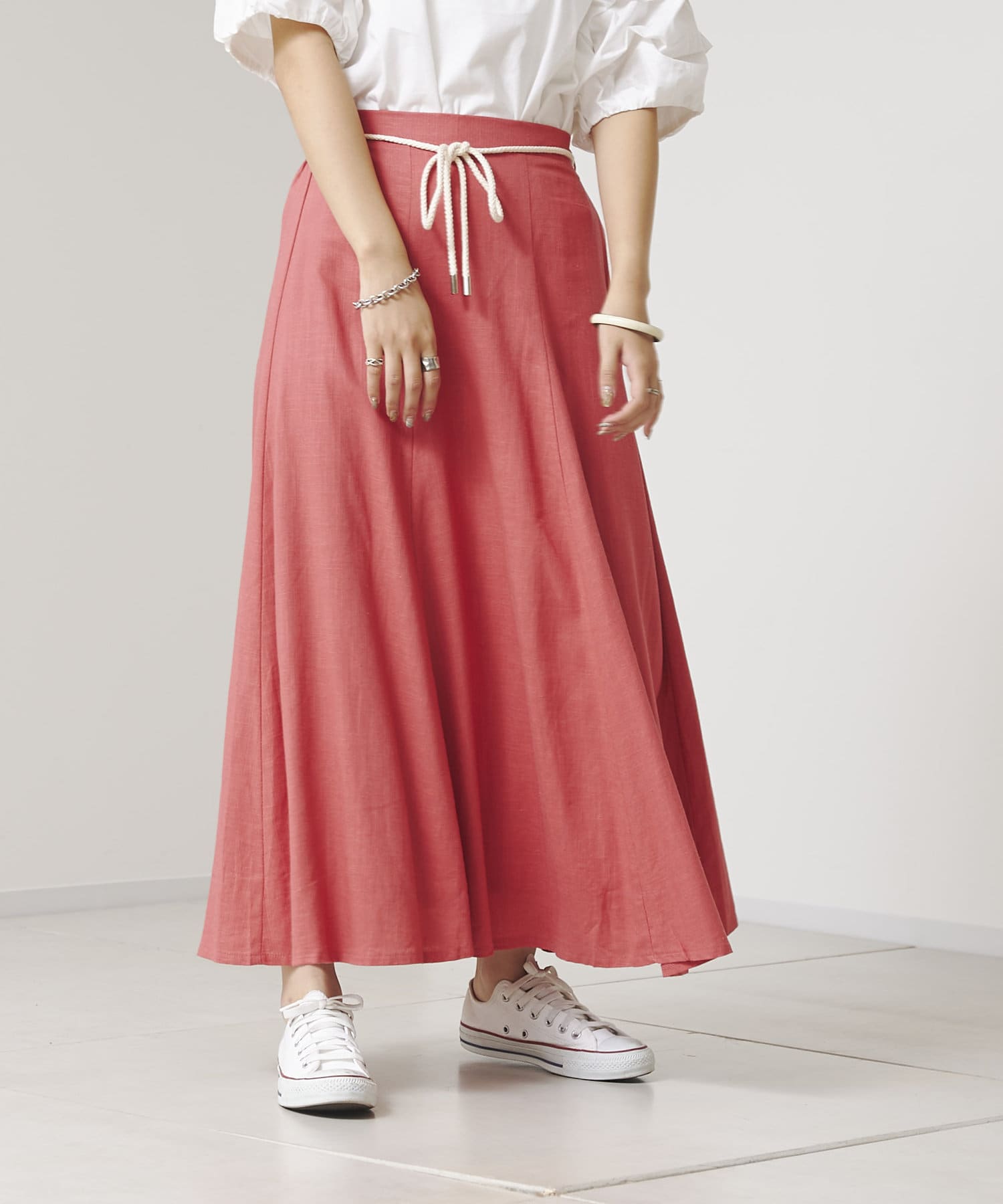 ロープ紐のアクセントと気分の上がる明るいカラーが特徴的なスカート