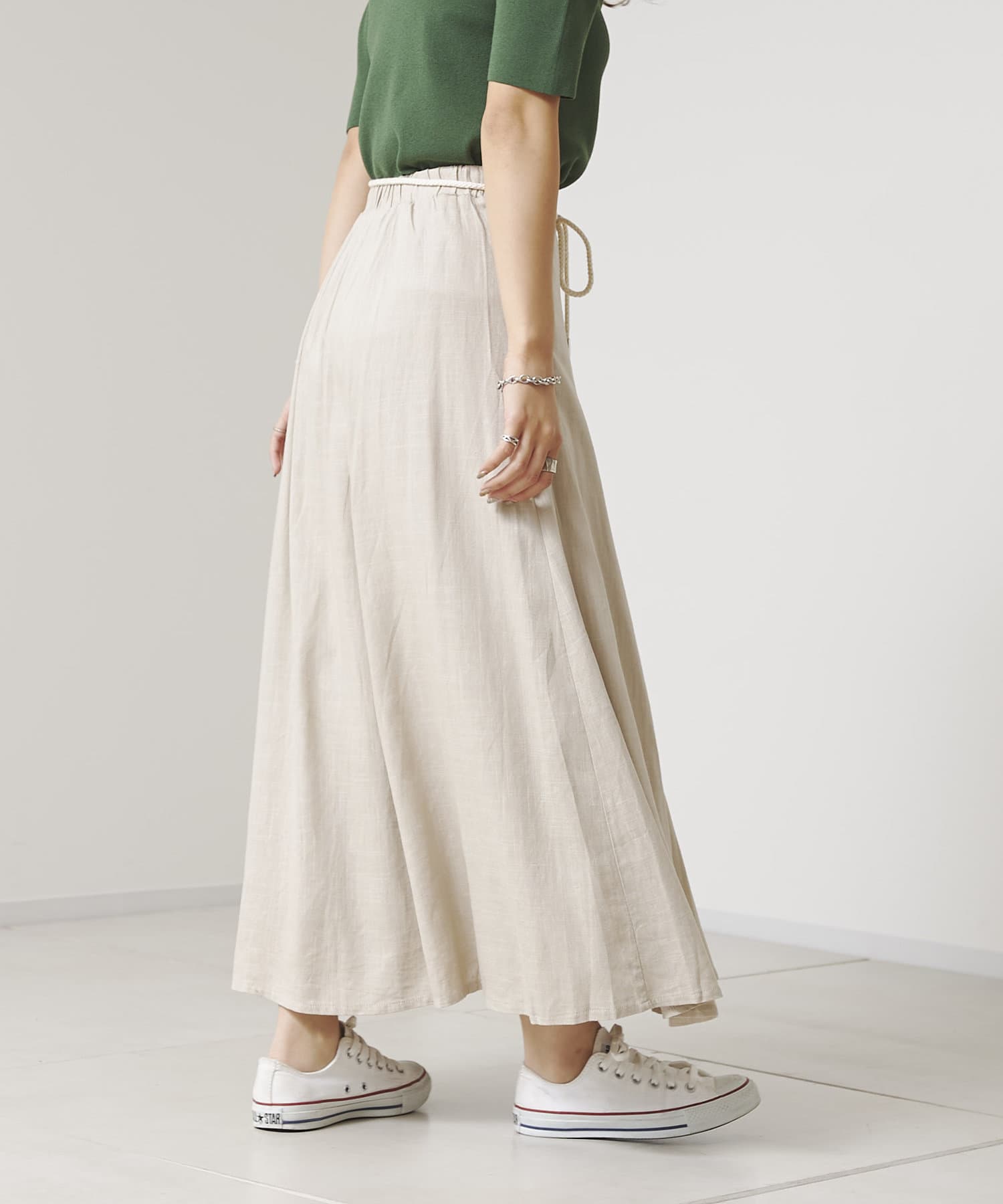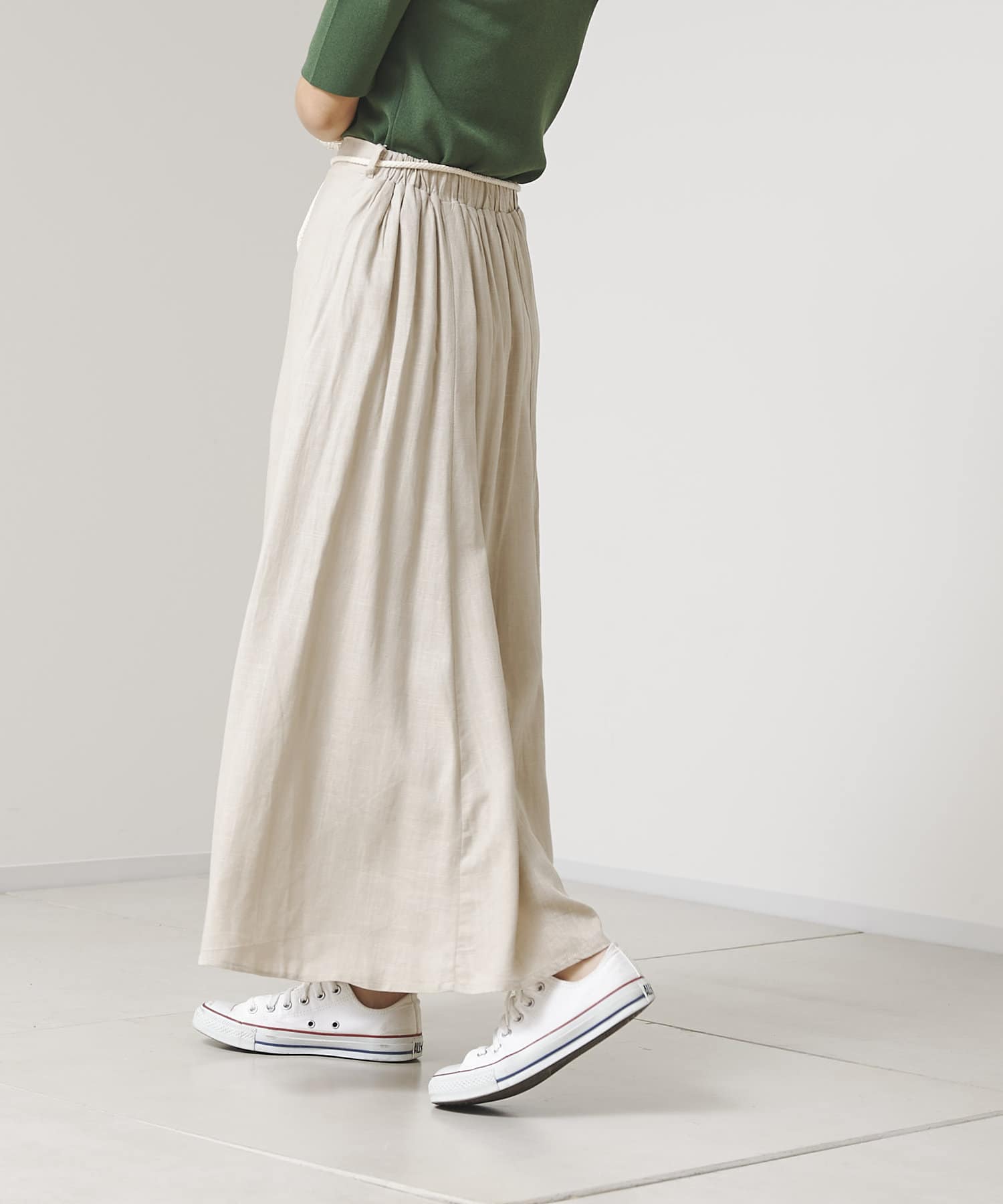 綺麗に拡がるドレープ性。麻混合で涼しく快適に着用できます。