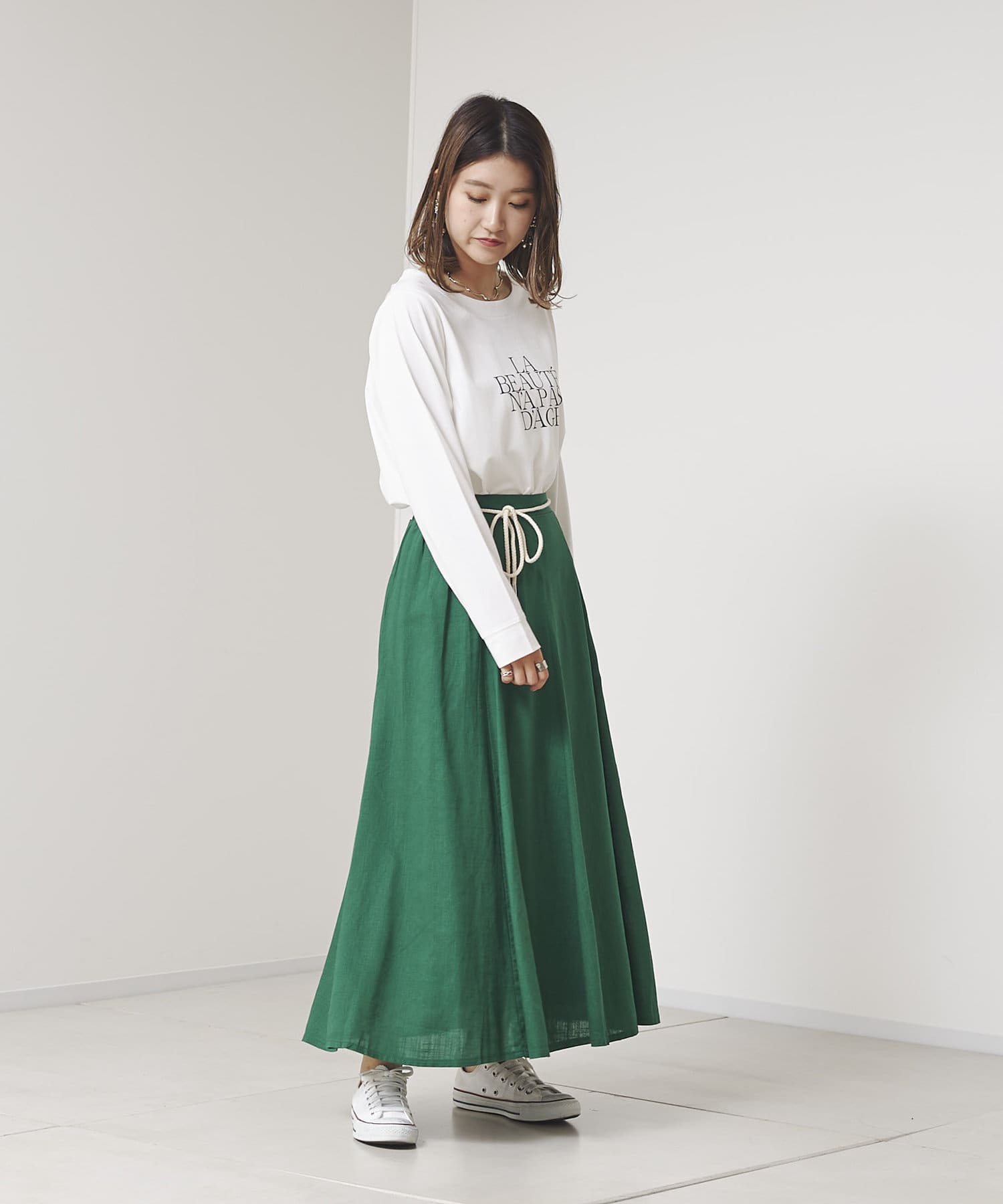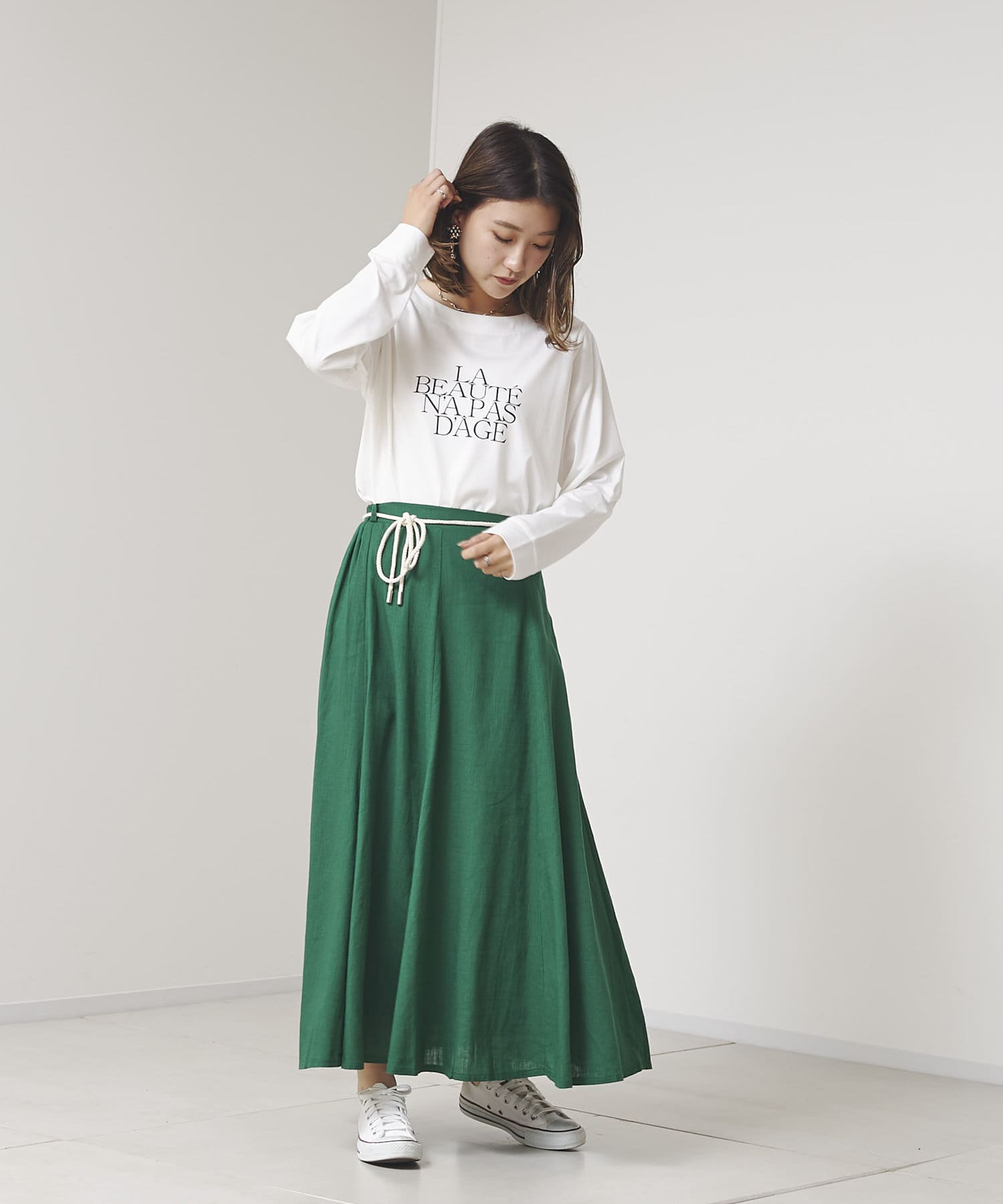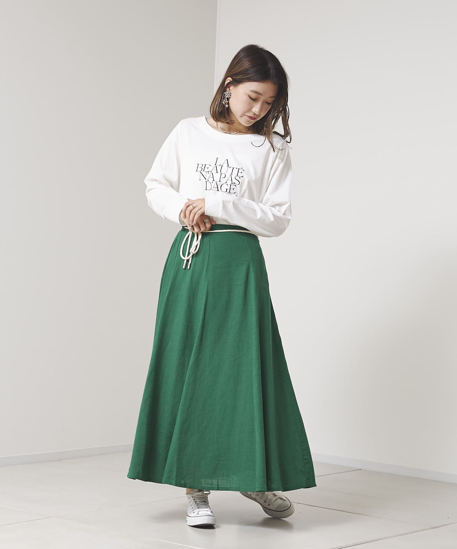上品な広がりのフレアシルエットが女性らしいロングスカート