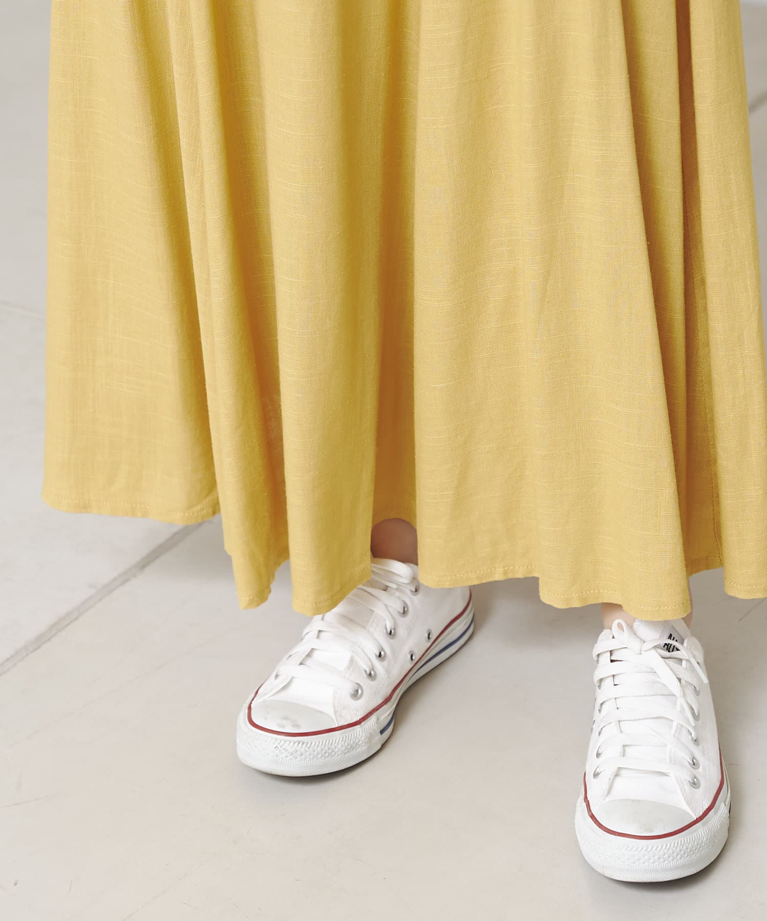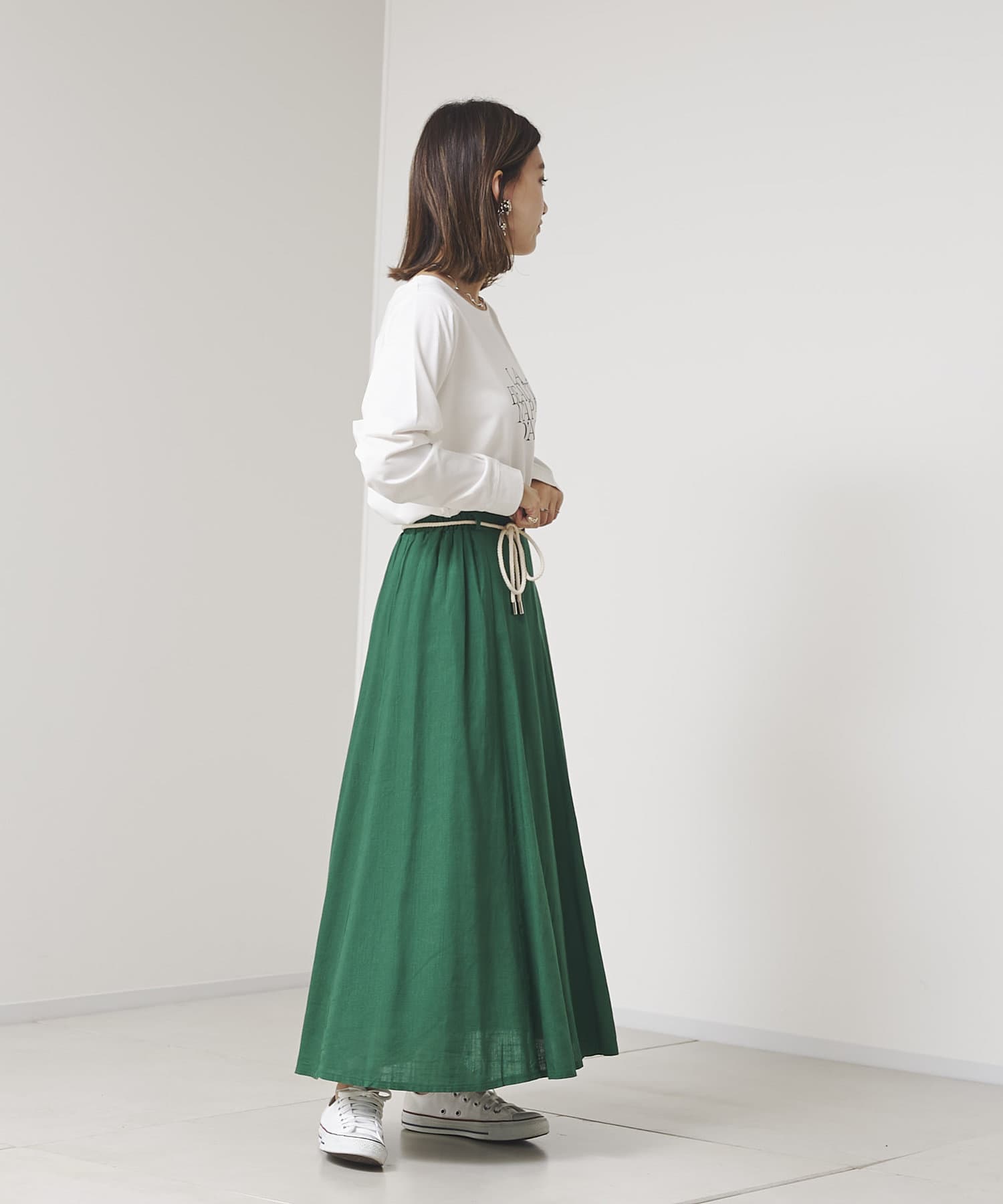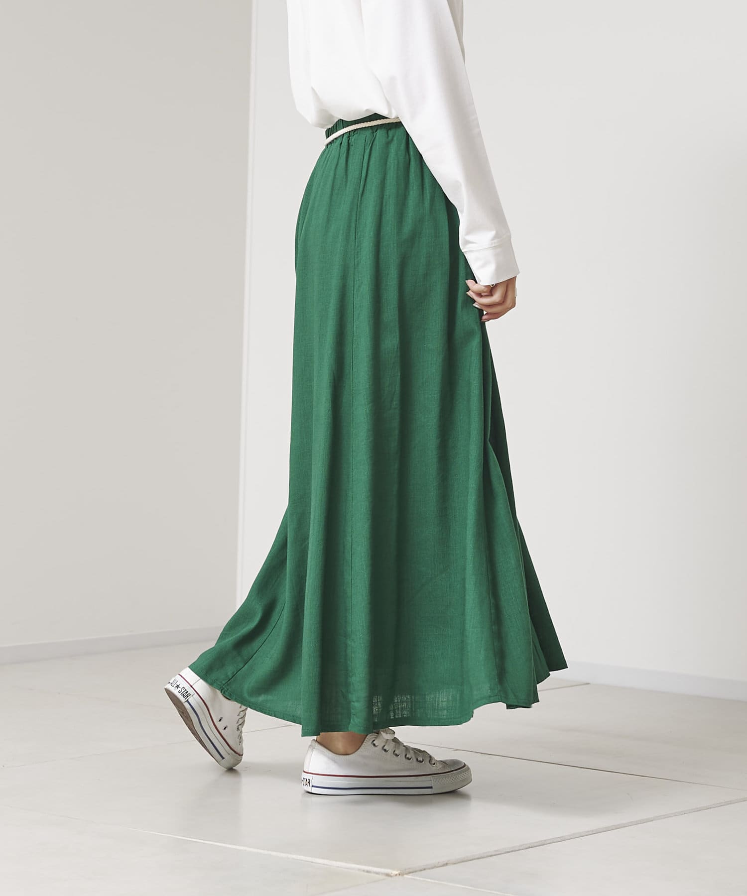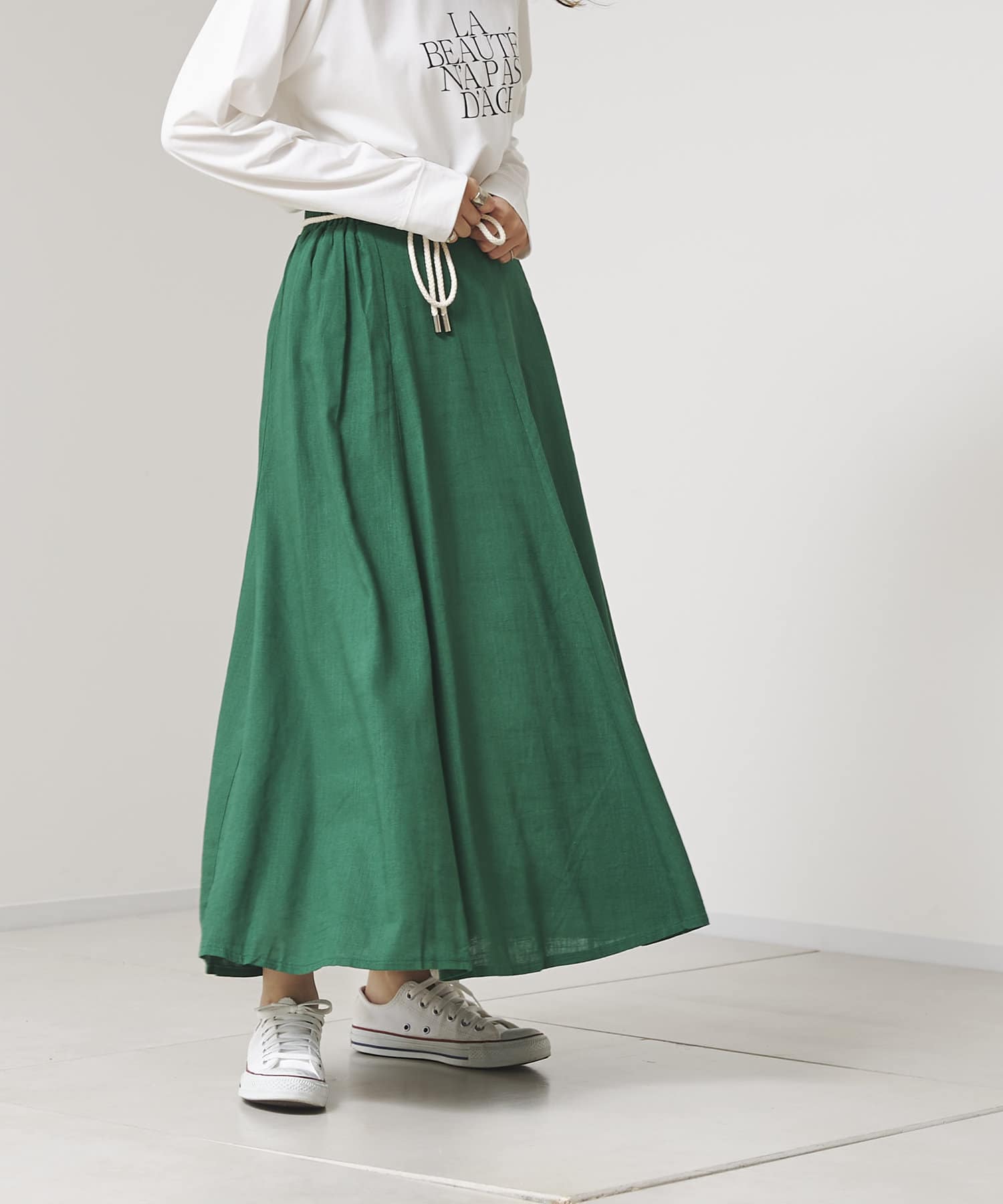 上品な広がりのフレアシルエットが女性らしいロングスカート